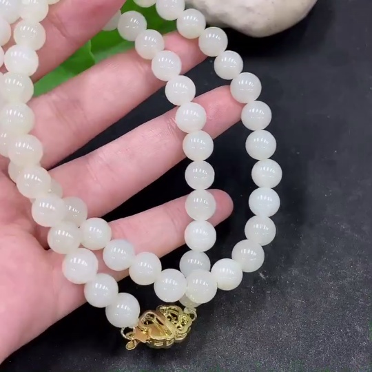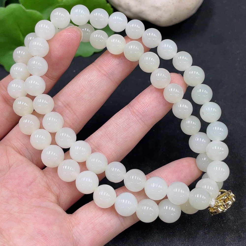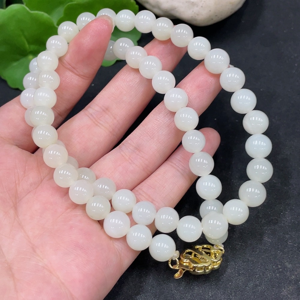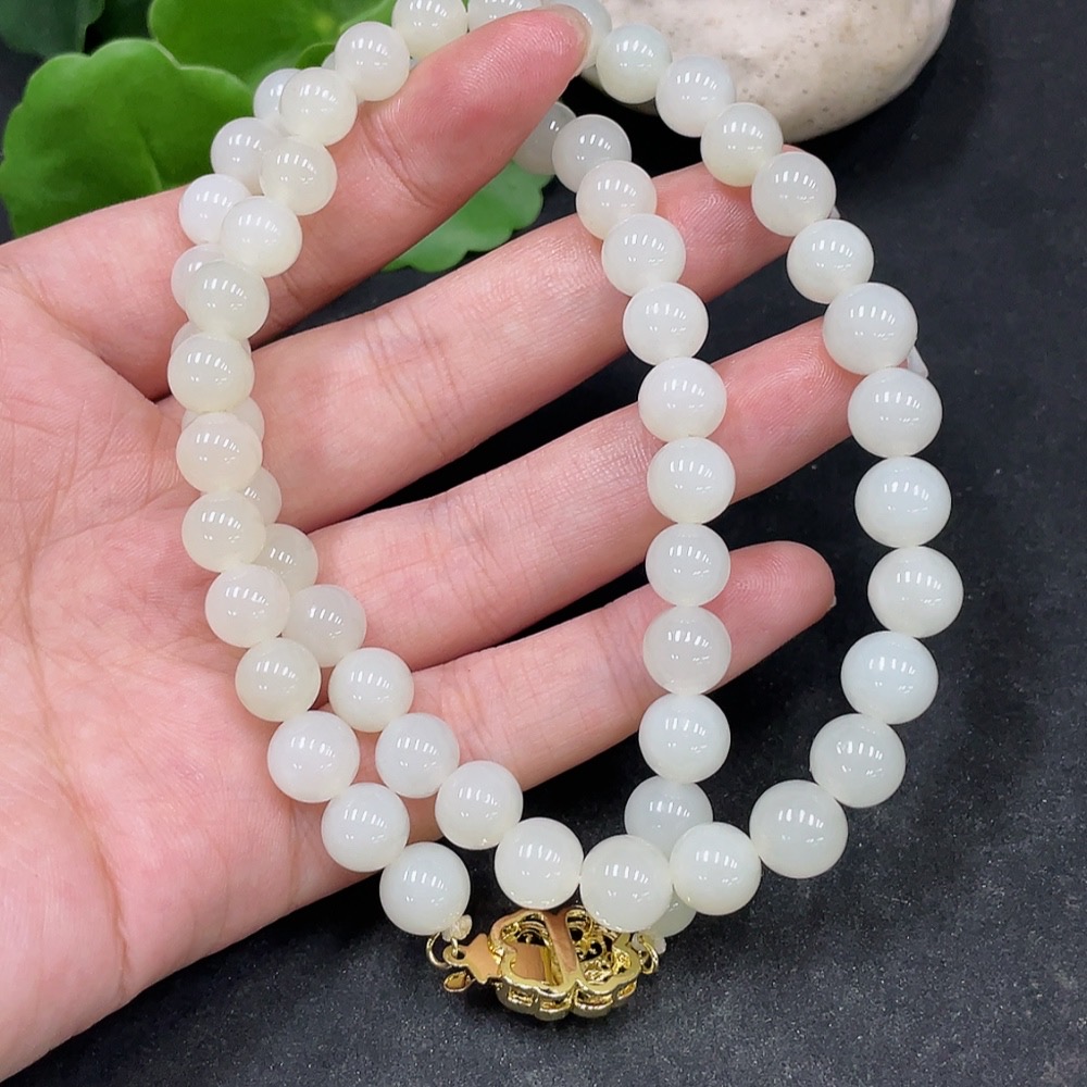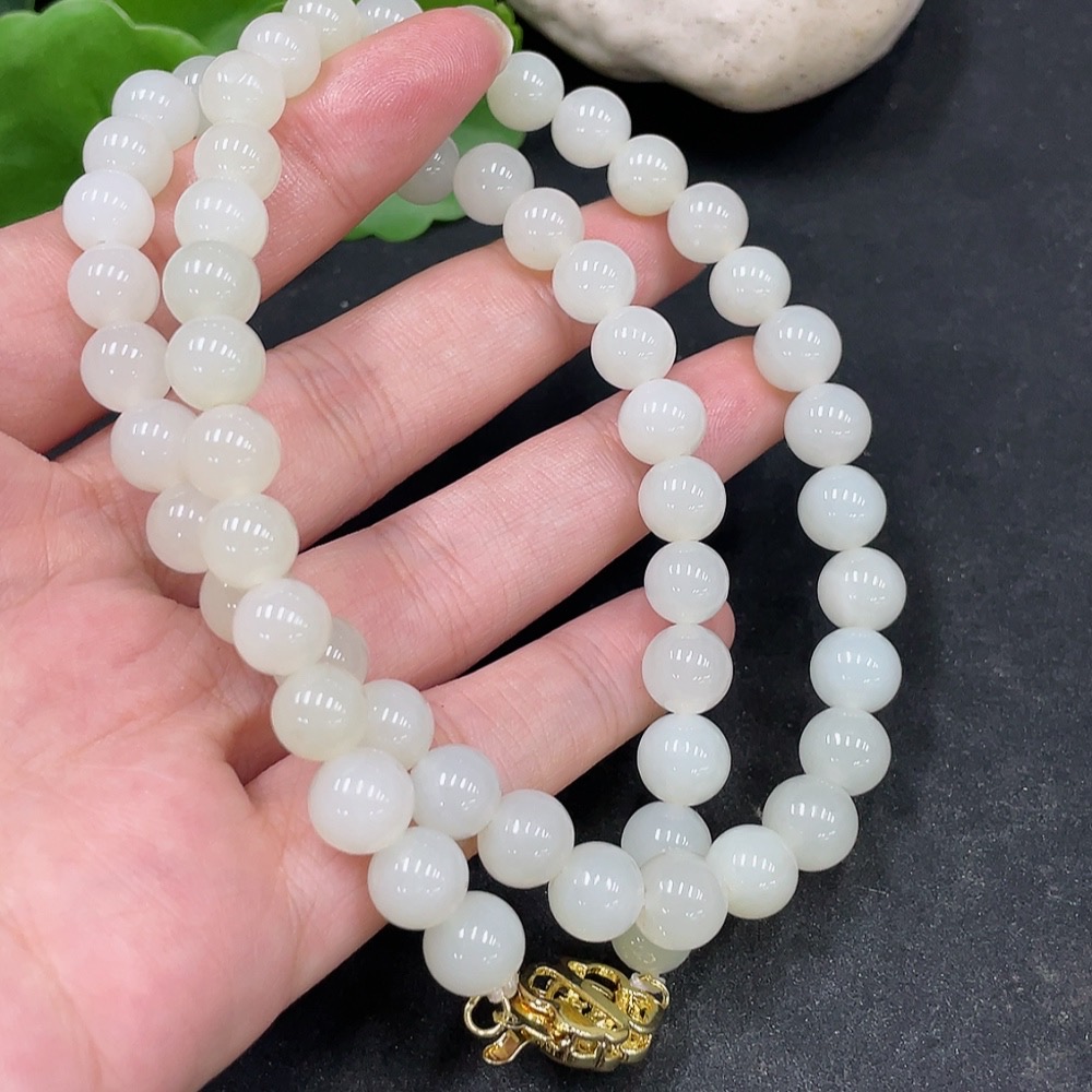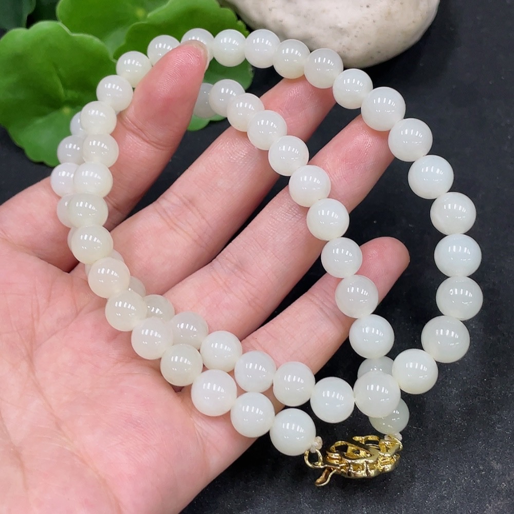 Hetian Jade Bead Necklace Non-Gold Approx. 8.4mm Total Weight About 50.5g