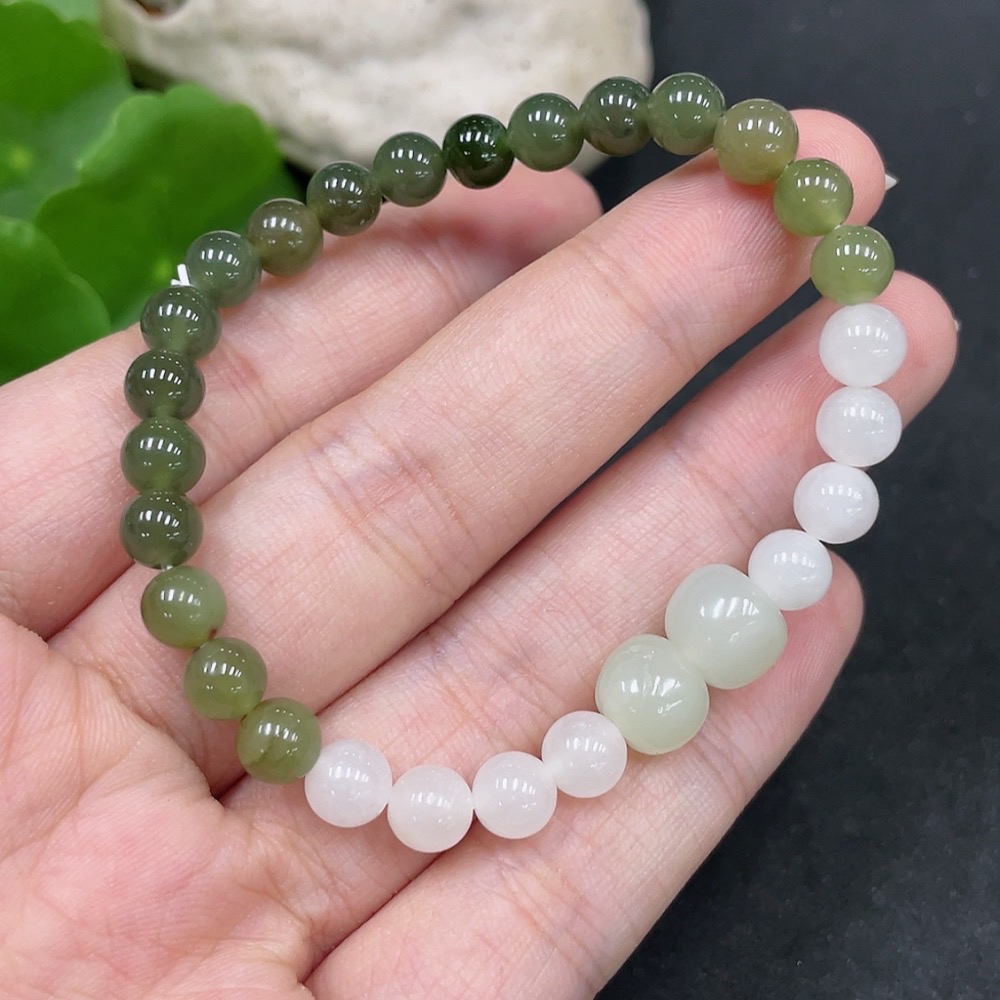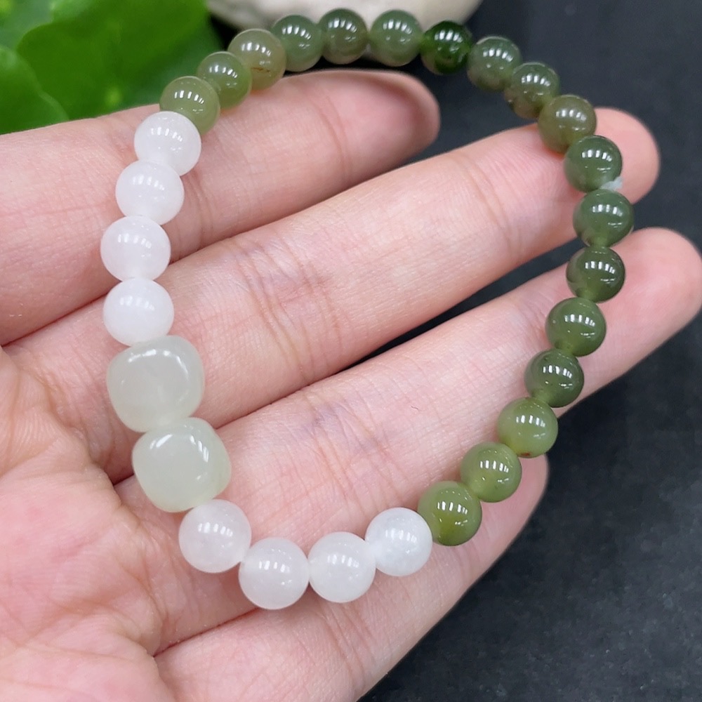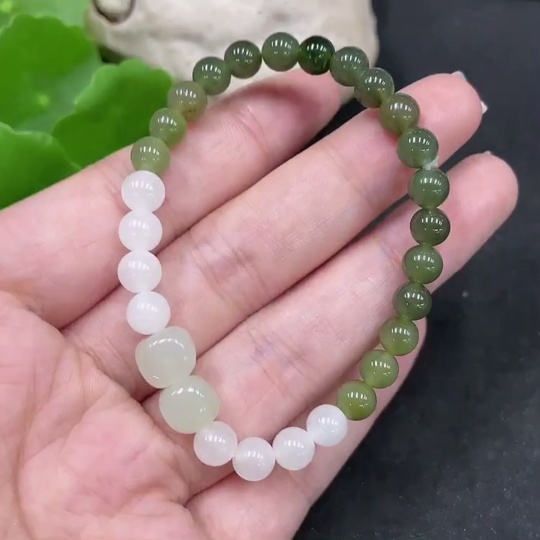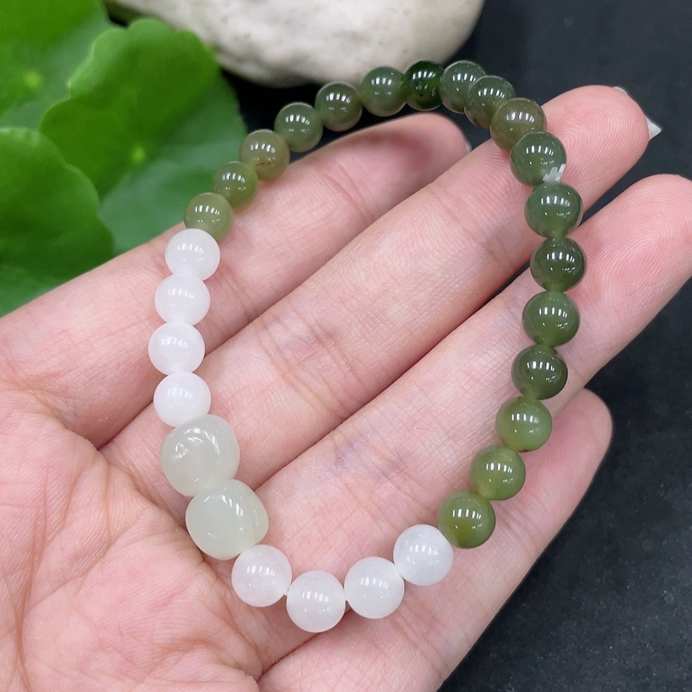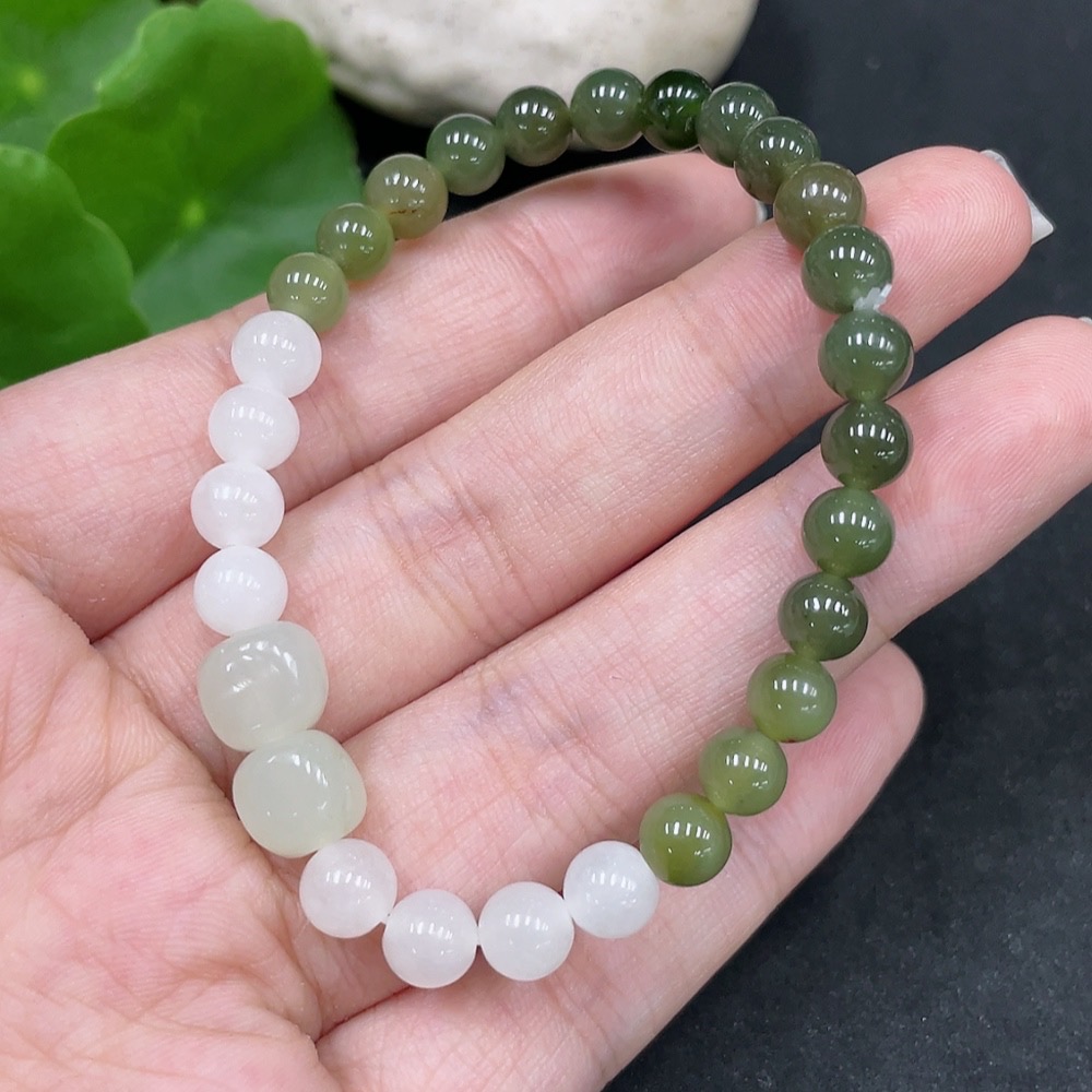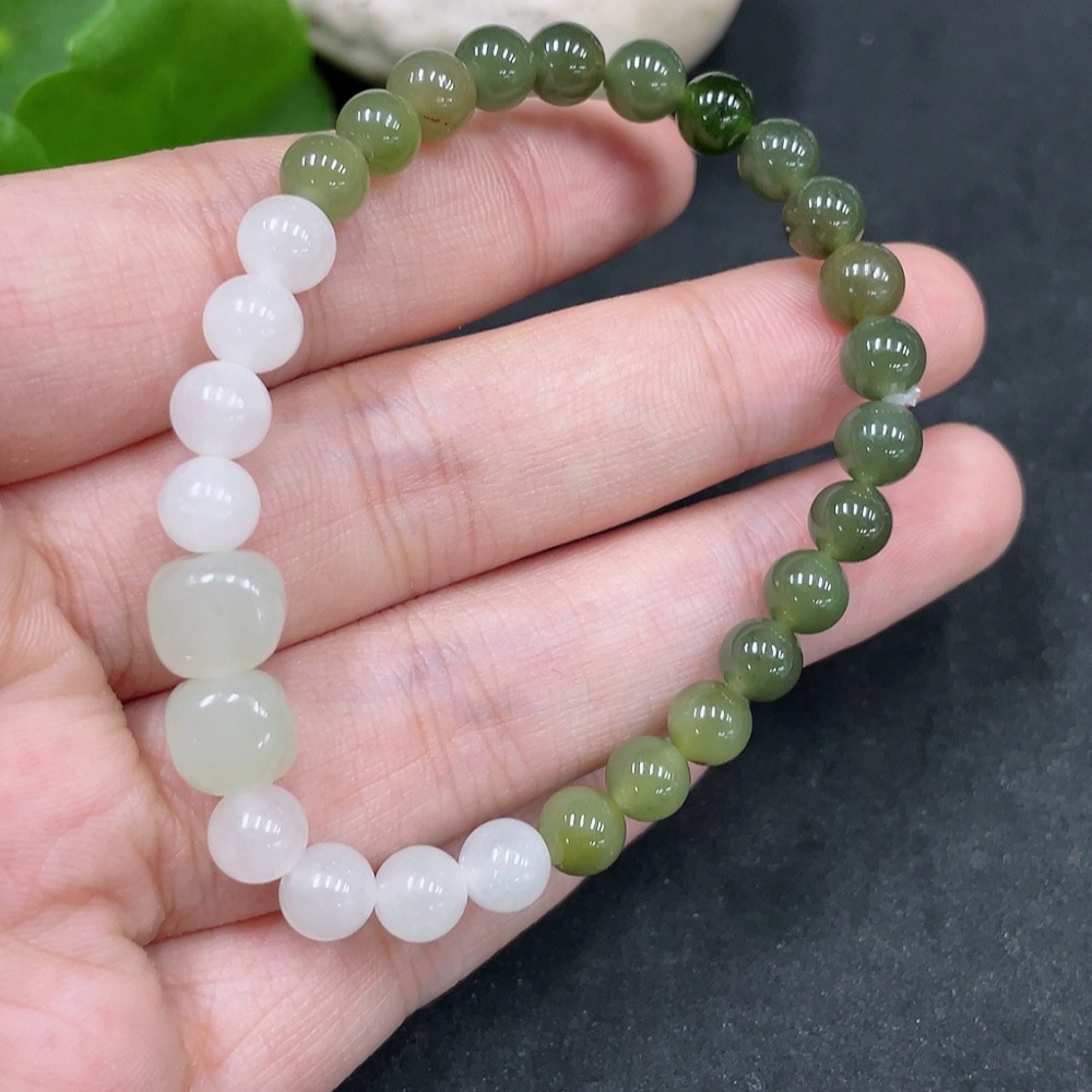 Hetian Jade Bracelet, approx. 6mm beads, total weight about 10.3g, contains other mineral components