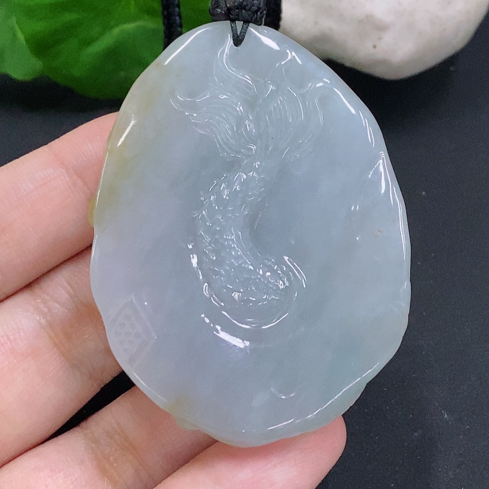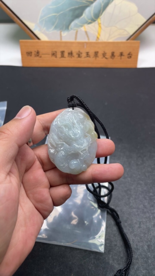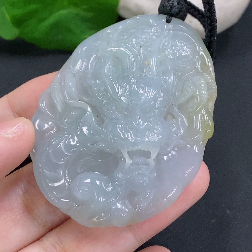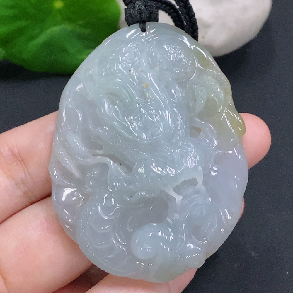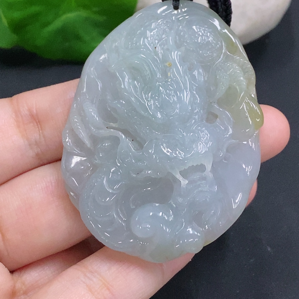 Jadeite Dragon Pendant Total Weight Including Rope Approximately 46g