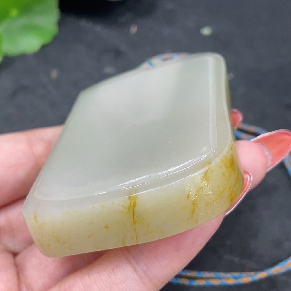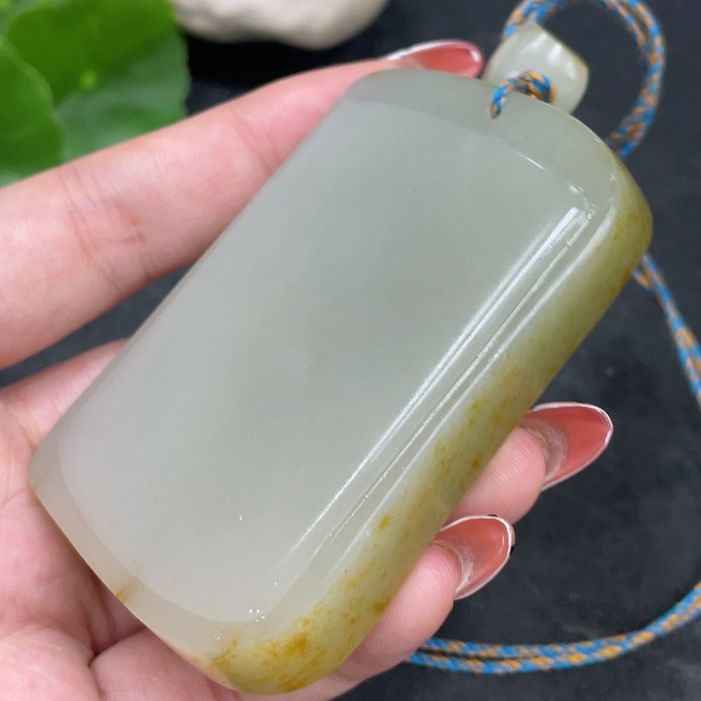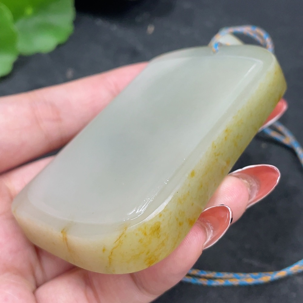 Hetian Jade Seed Material Pendant, Plain Pendant, Undetermined Skin Color Formation, Total Weight (Including String) Approx. 122.5g