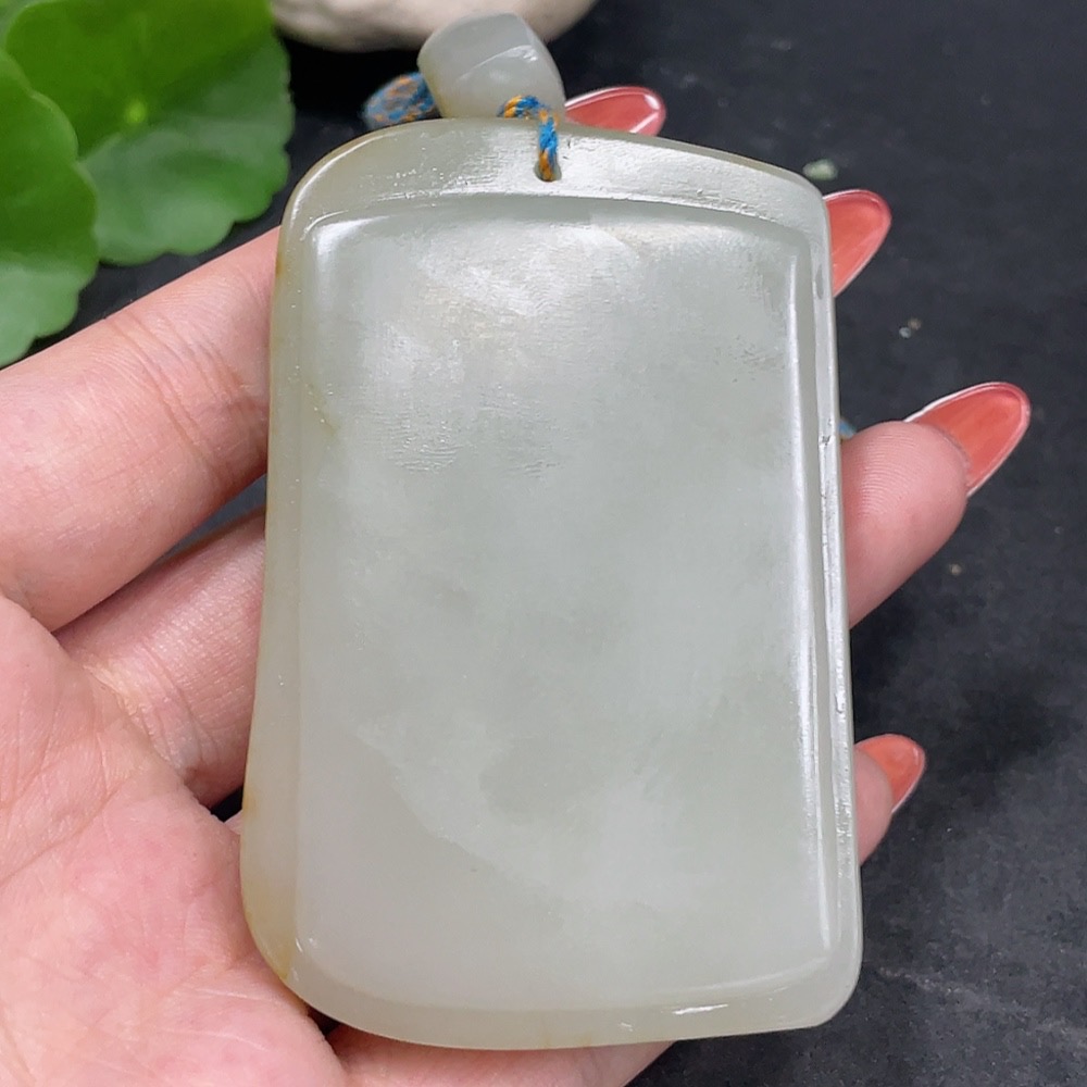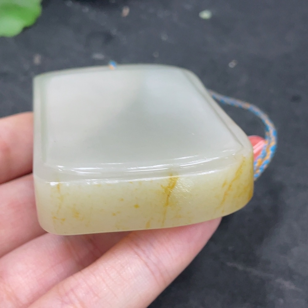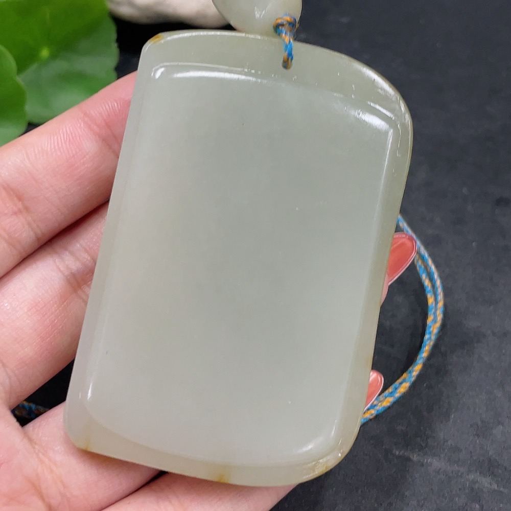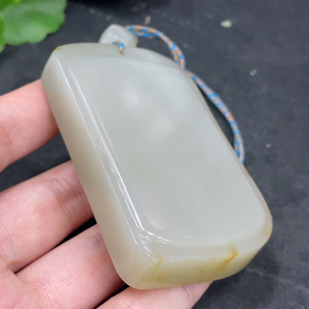 Hetian Jade Seed Material Pendant, Plain Pendant, Undetermined Skin Color Formation, Total Weight (Including String) Approx. 122.5g