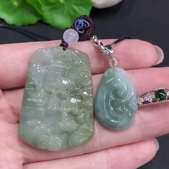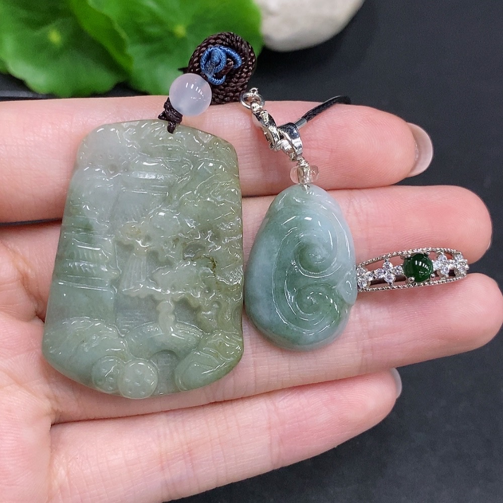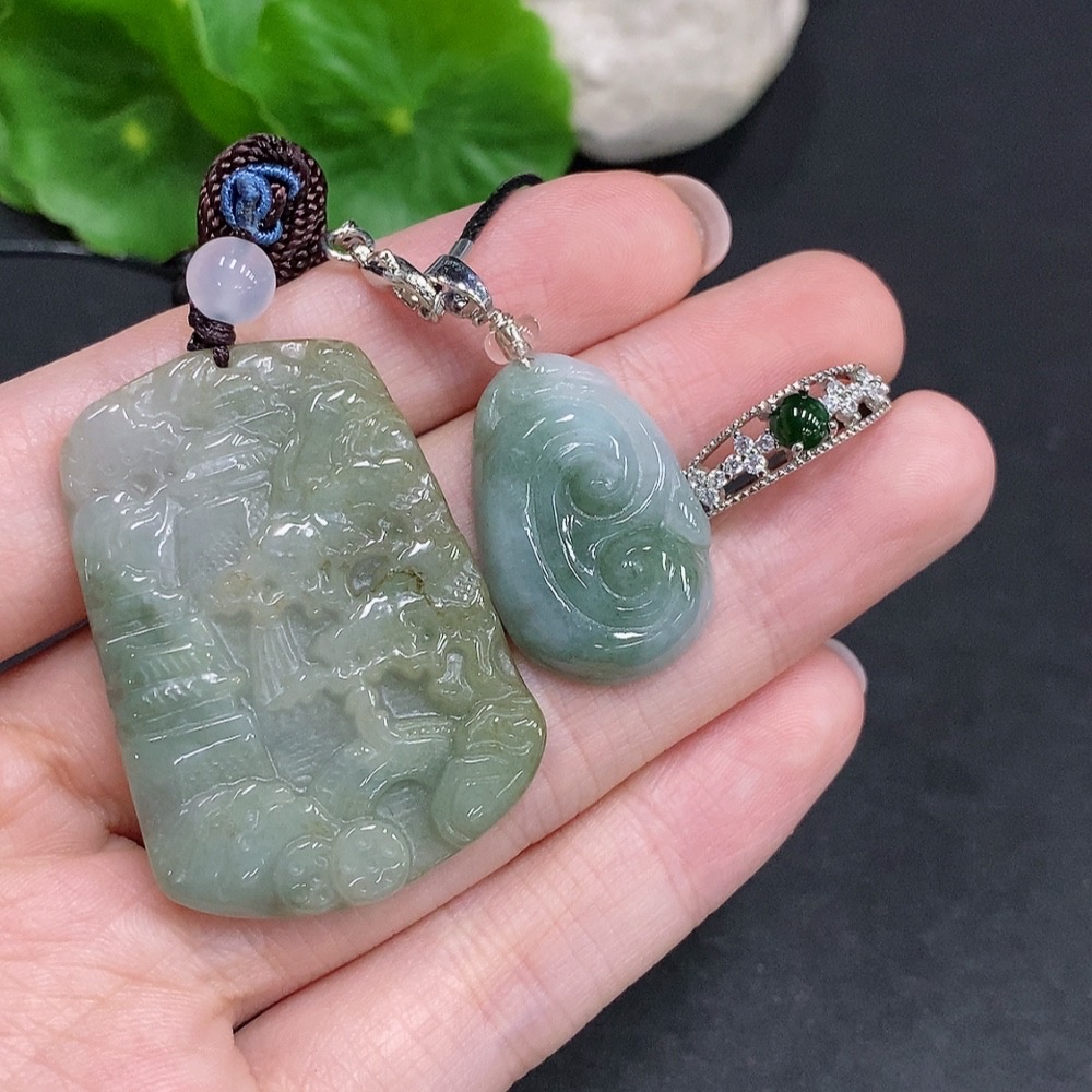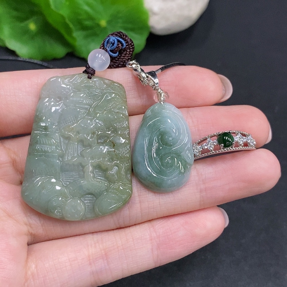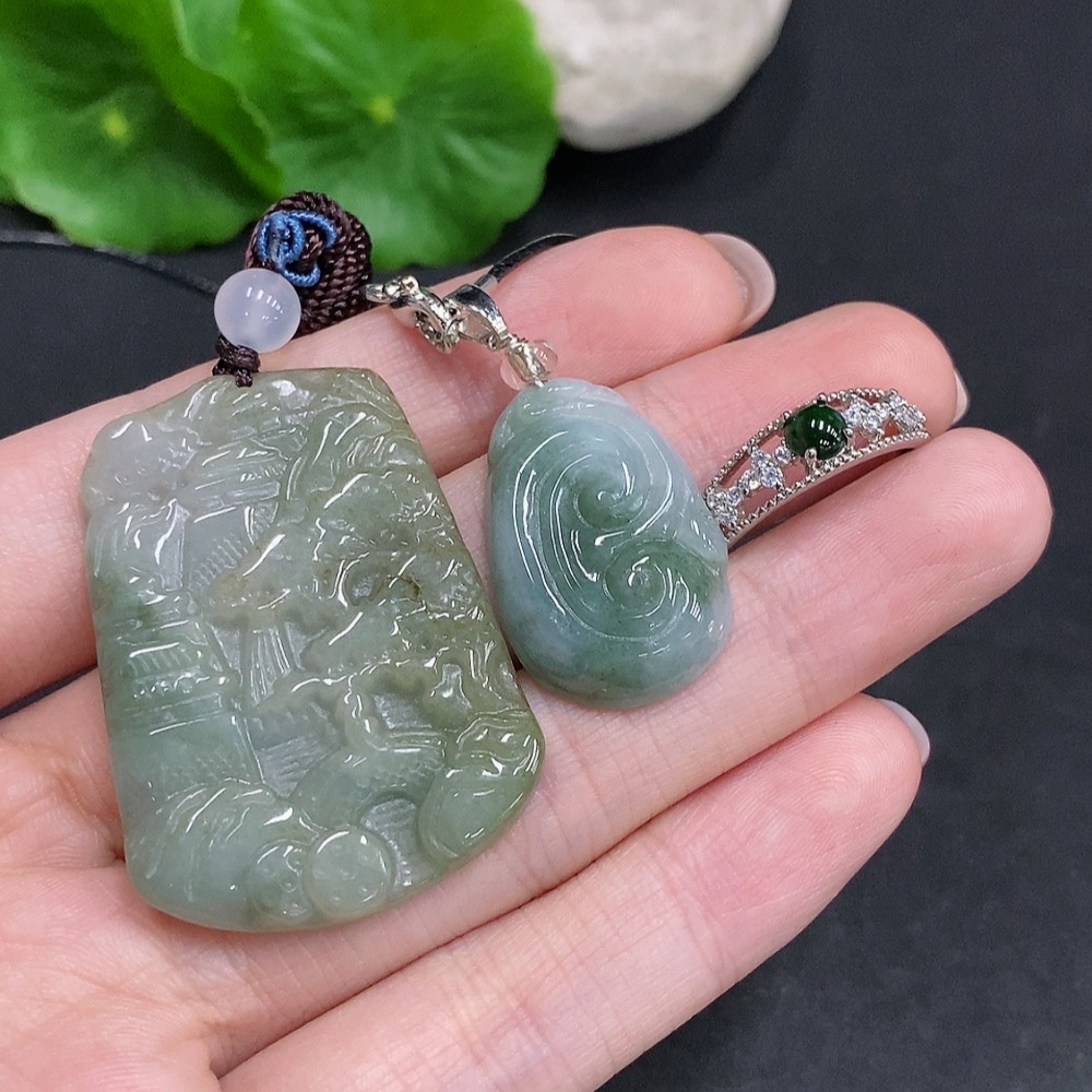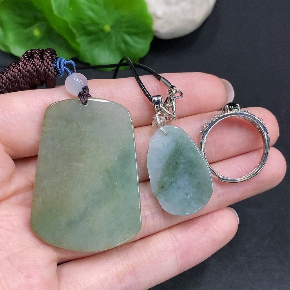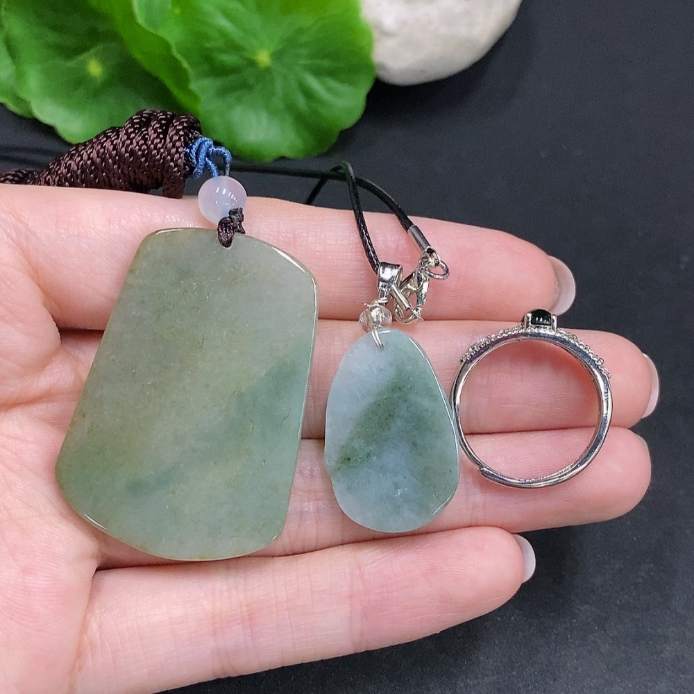 Jadeite Pendant + Cabochon Ring Sell as a Lot Non-Gold Setting Adjustable Size