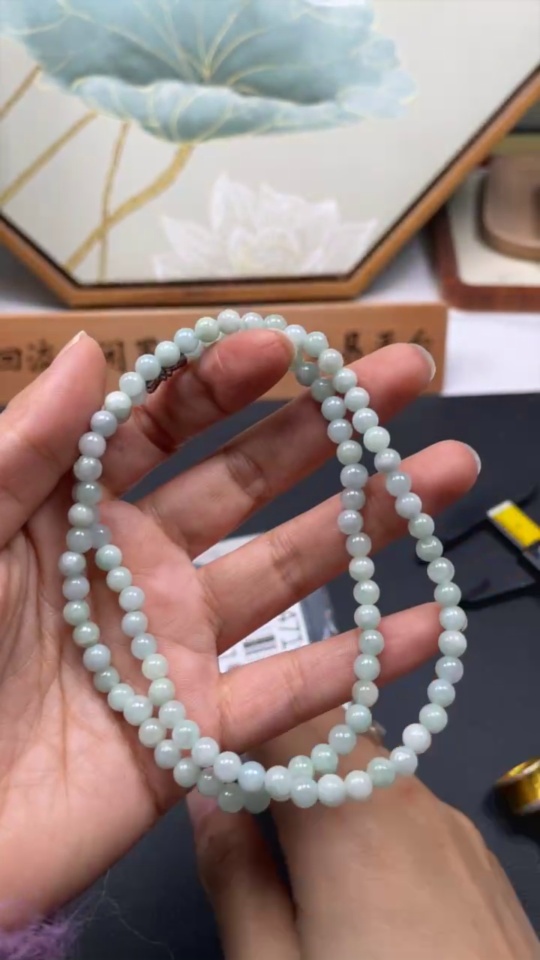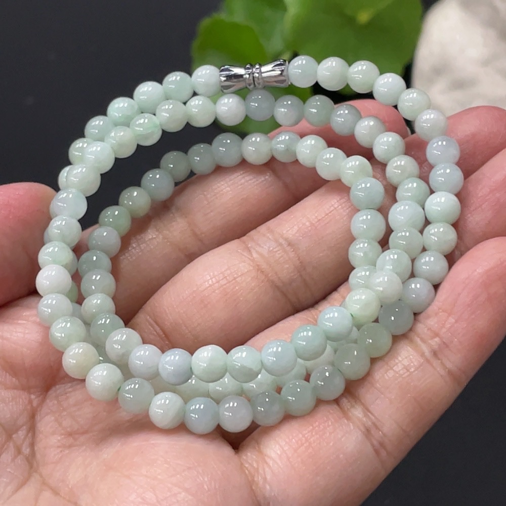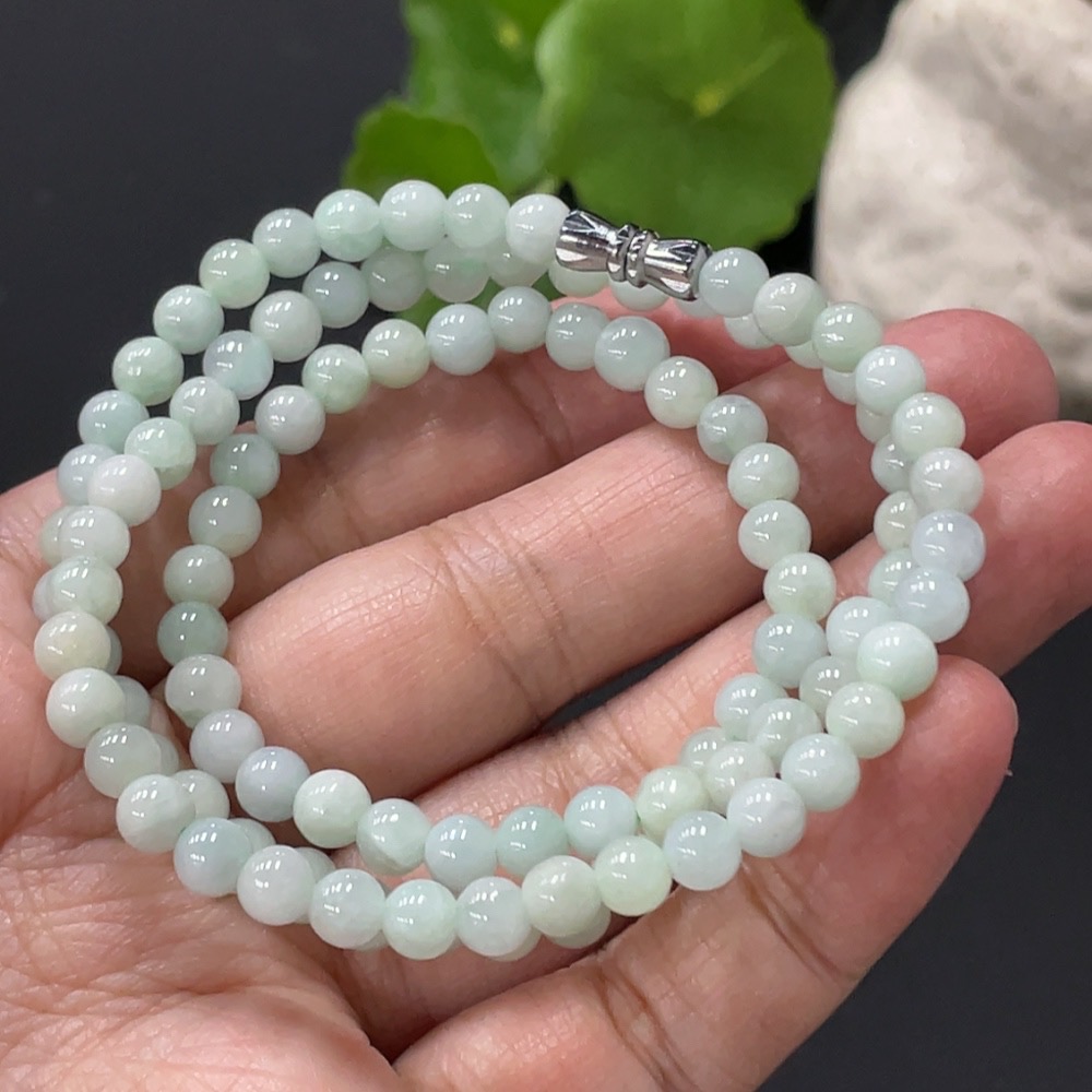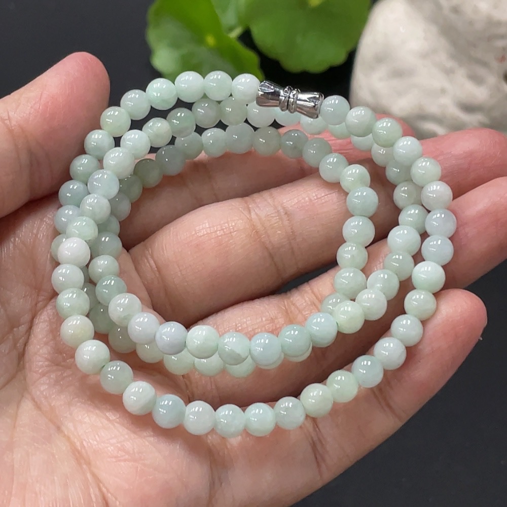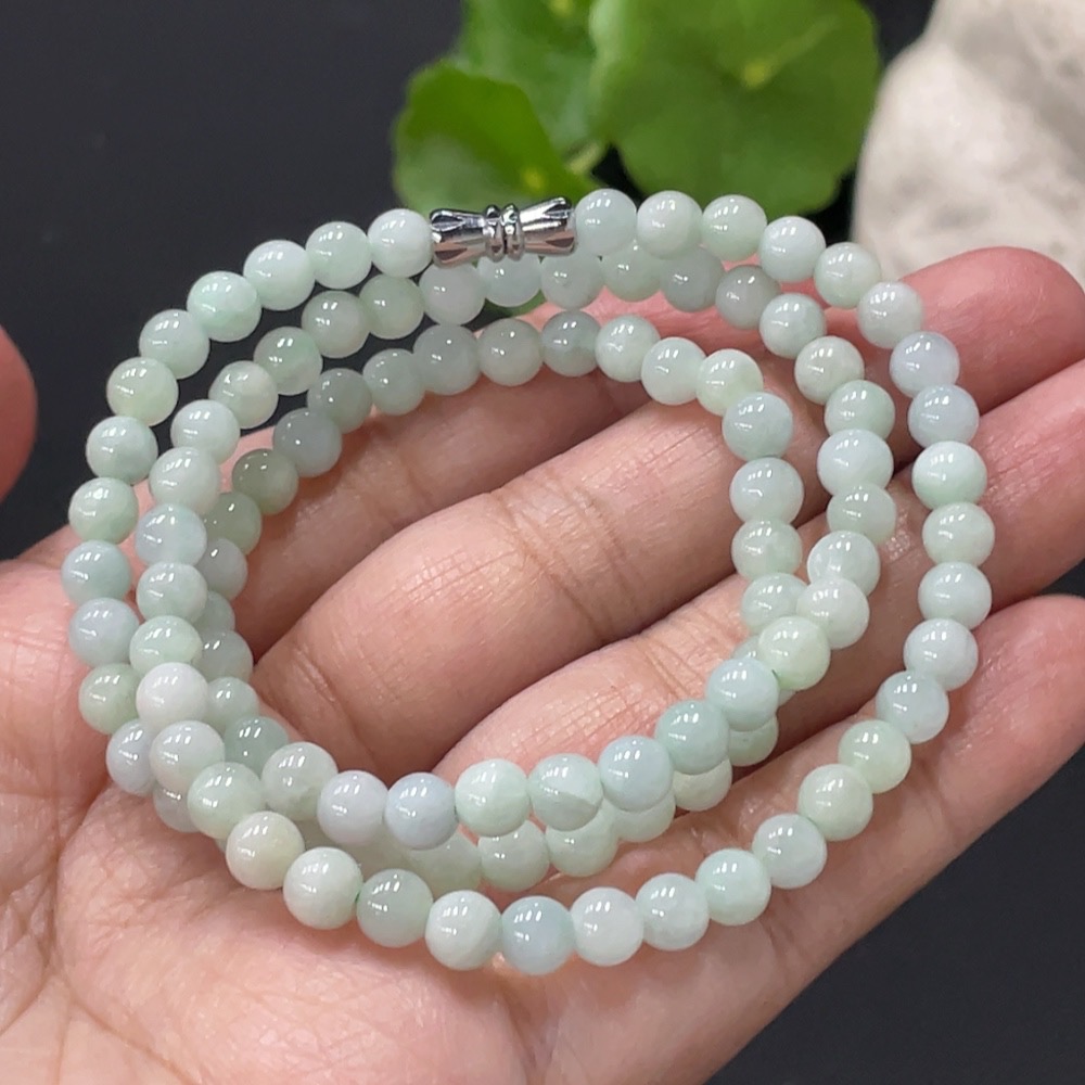 Jadeite Bead Necklace Approx. 5mm Non-Gold Total Weight Approx. 23g