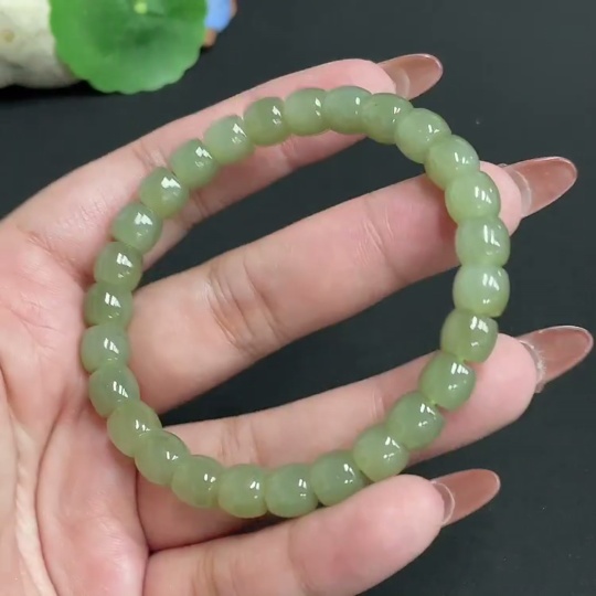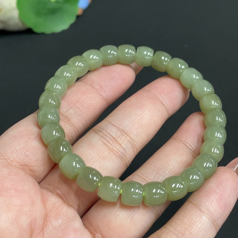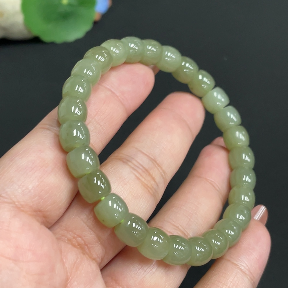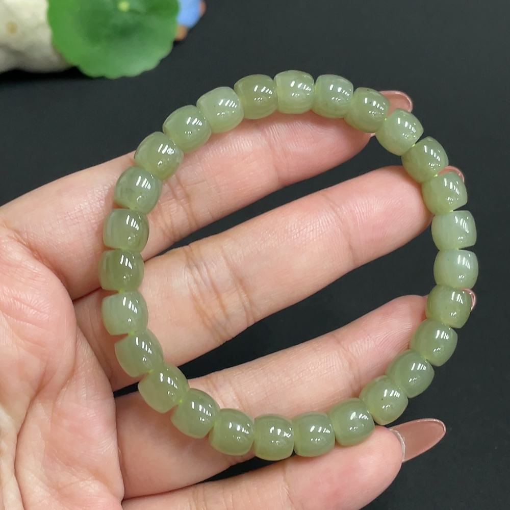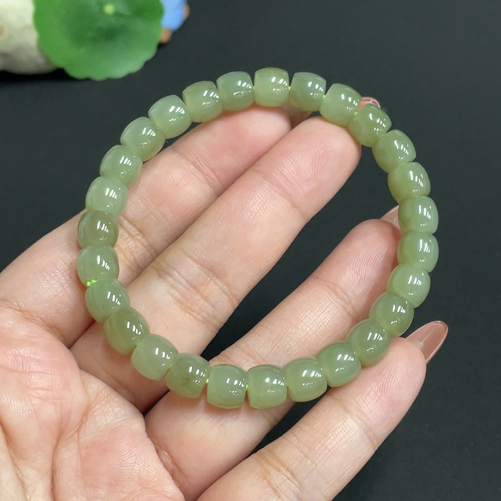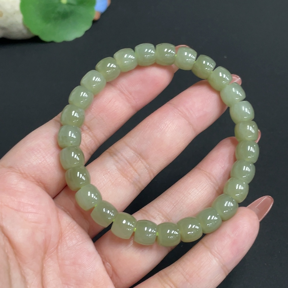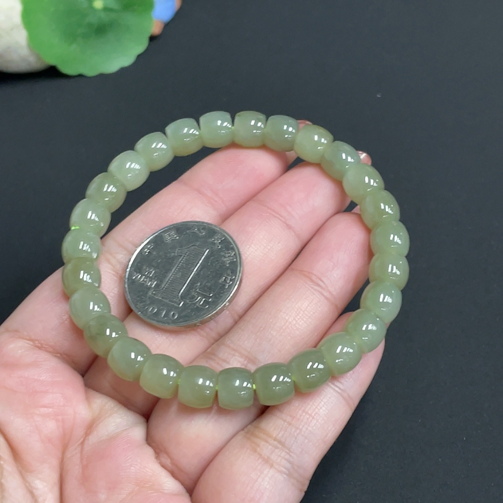 Hetian Jade Bracelet, Approx. 7.6 mm Beads, Total Weight Approx. 22.6g