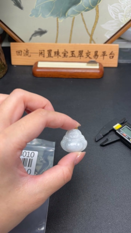 Jadeite Buddha Pendant 18K Gold Total Weight Approx. 5.32g