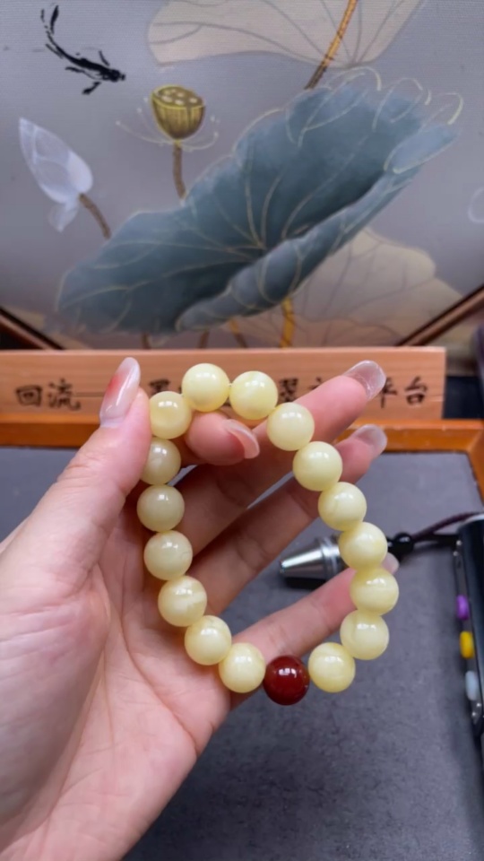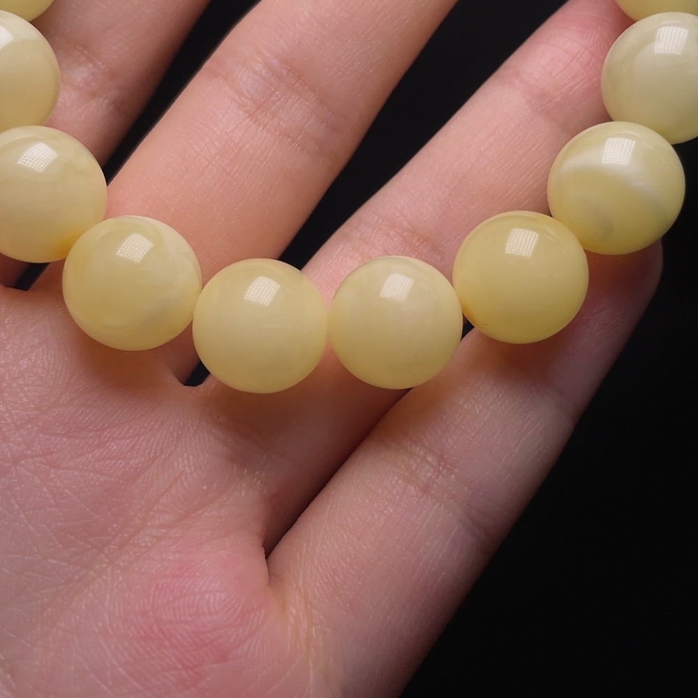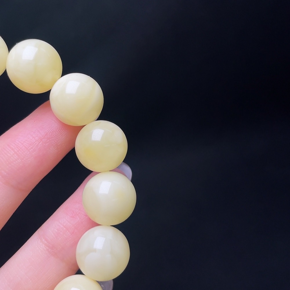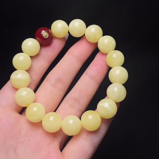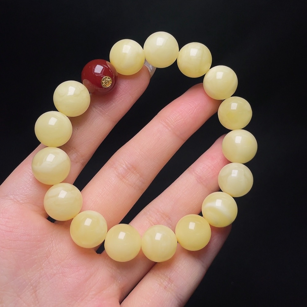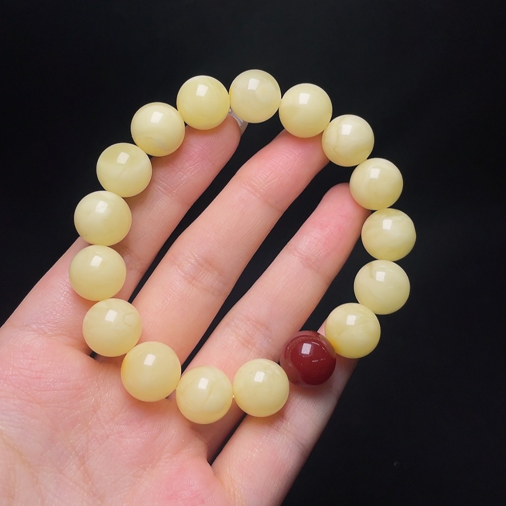 Amber Beeswax Bracelet with Non-Natural/Non-Gold Accent Stones, Total Weight Approx. 18.5g, Size ~12.3mm