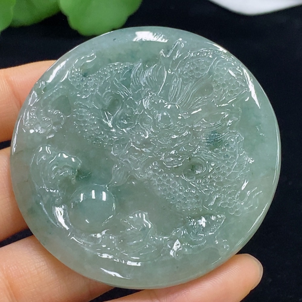 Jadeite Dragon Pendant, Total Weight Approximately 38.7g