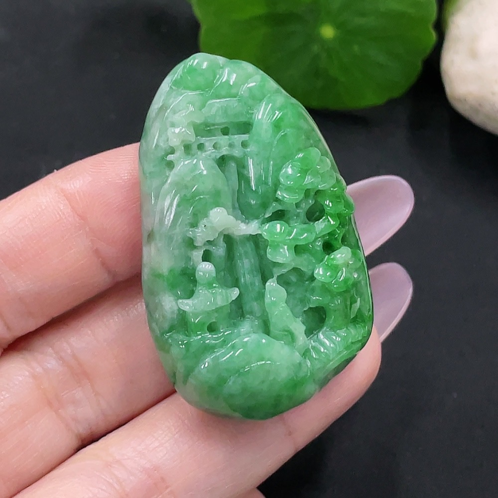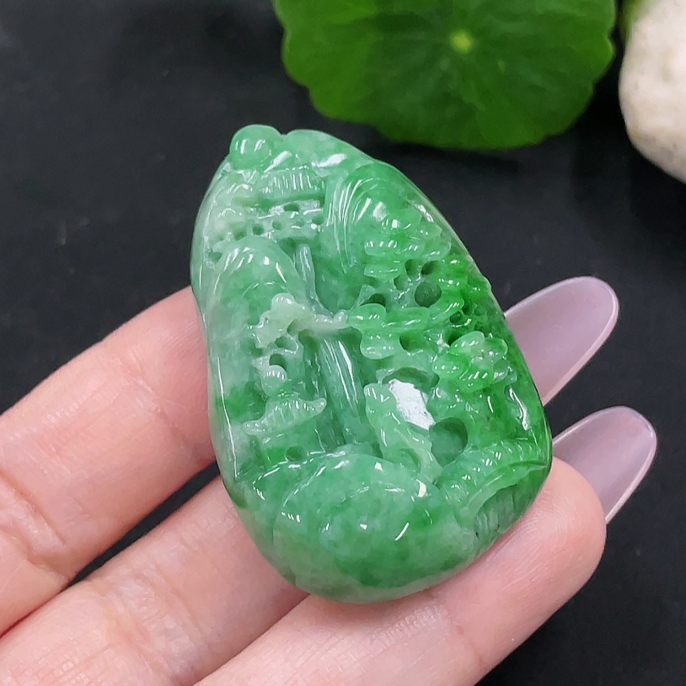 Jadeite Landscape Pendant, Total Weight Approx. 31.15g
