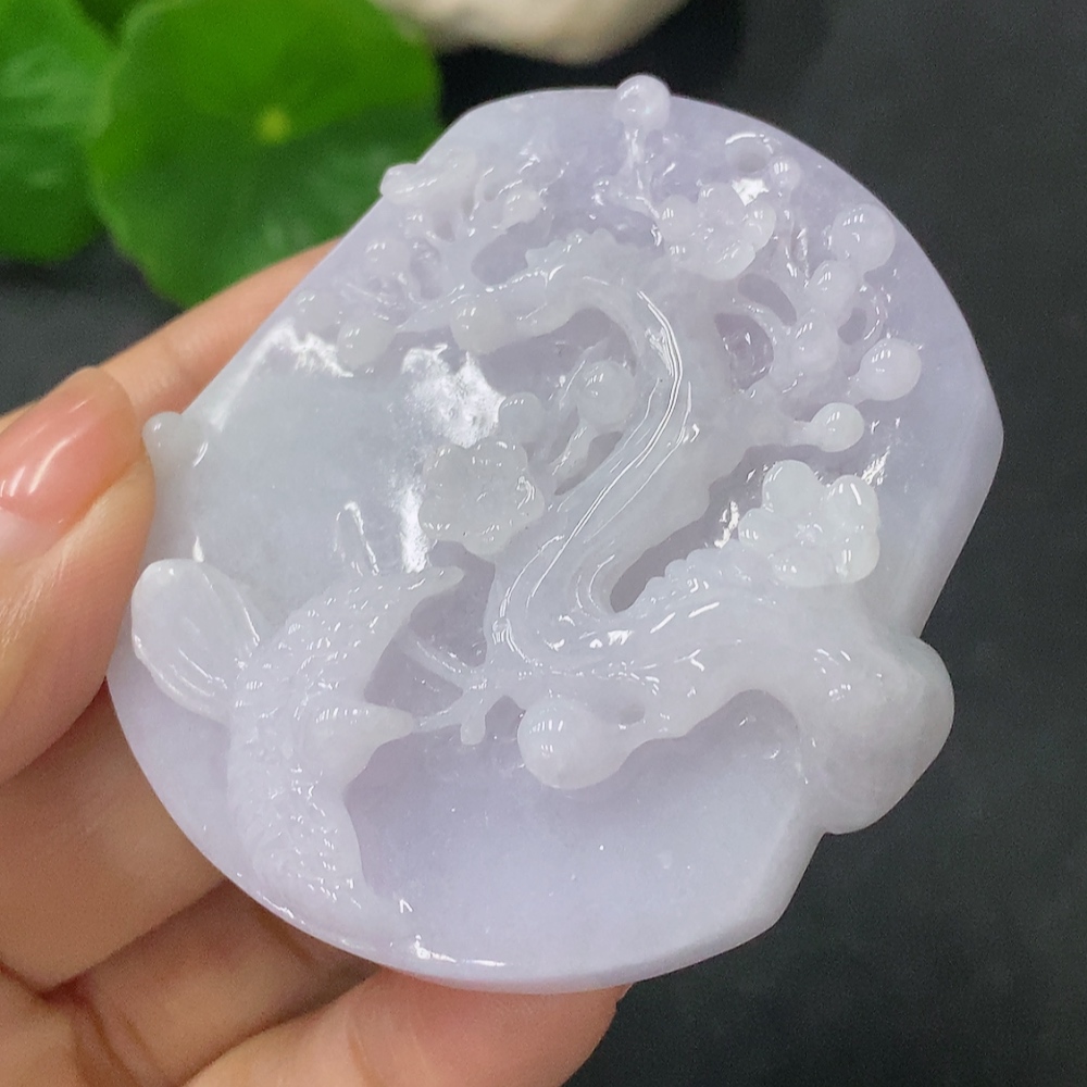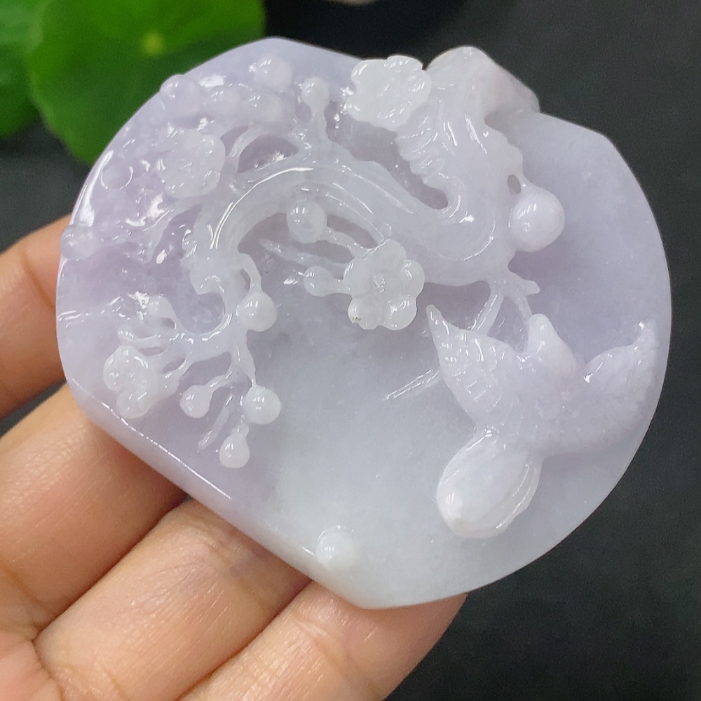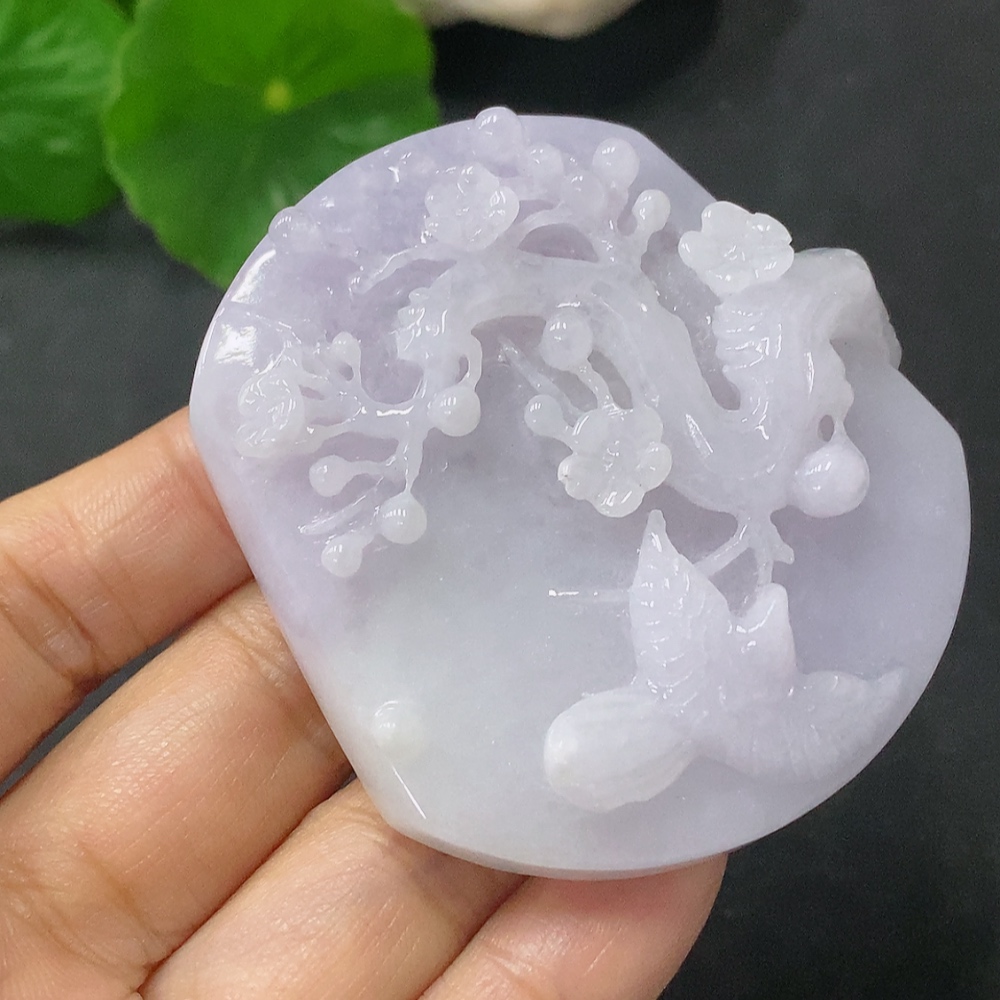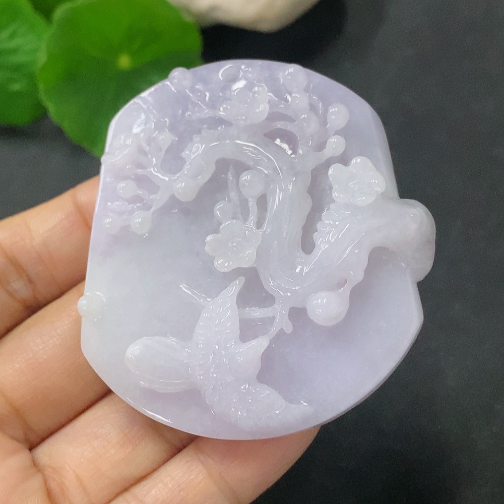 Jadeite Pendant with Magpies on Plum Blossoms, Total Weight Approx. 64.84g