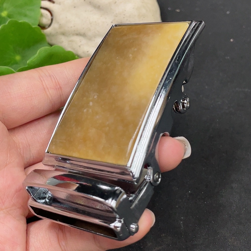 Hetian Jade Inlaid Belt Buckle Non-Gold Total Weight Approx. 109.6g