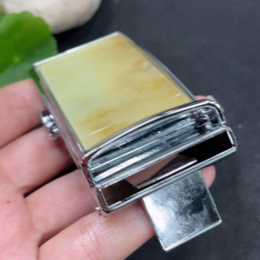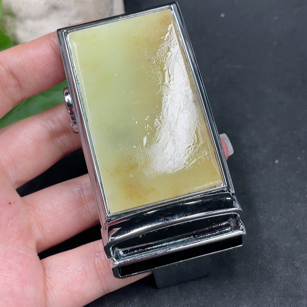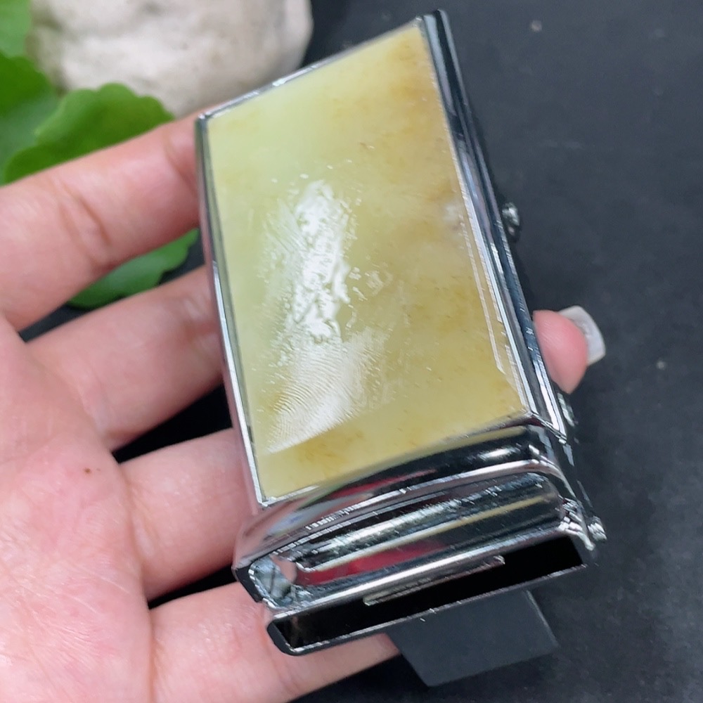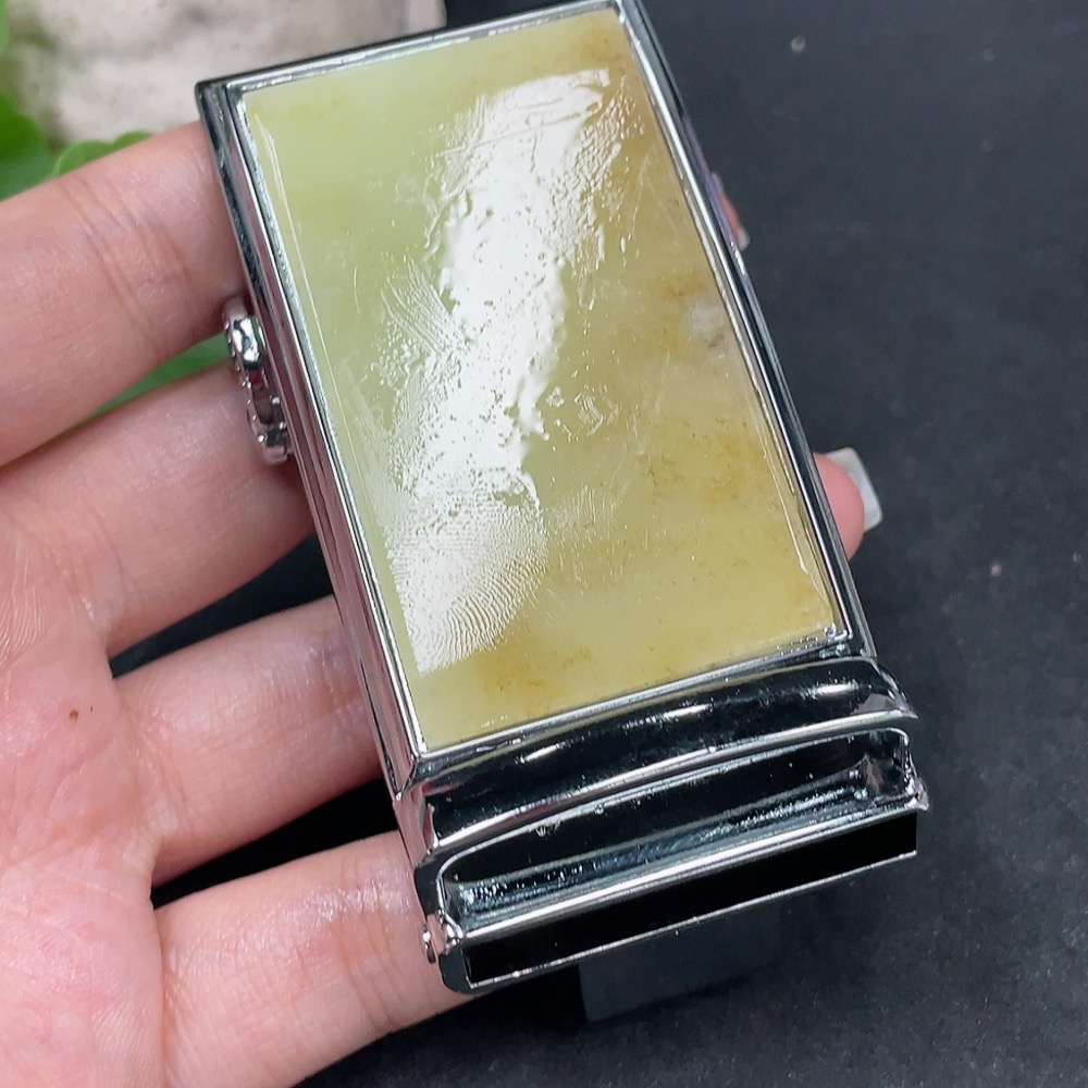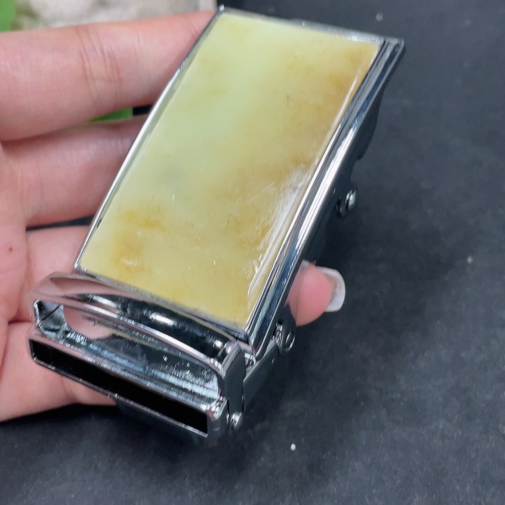 Hetian Jade Inlaid Belt Buckle Non-Gold Total Weight Approx. 108.9g