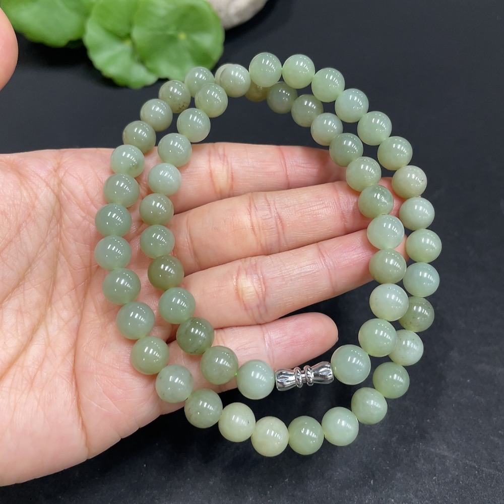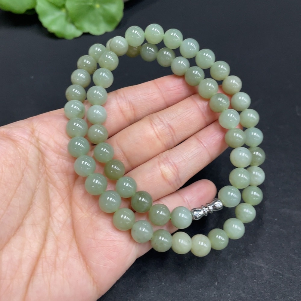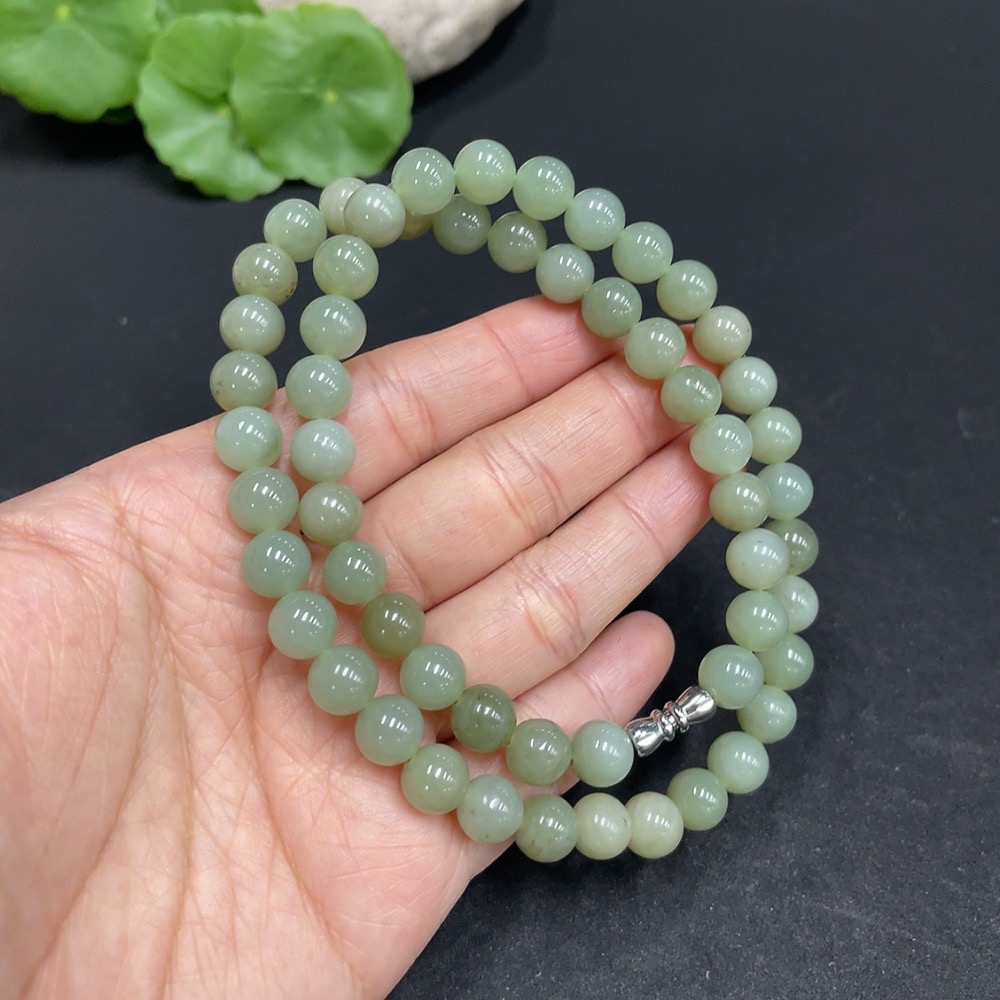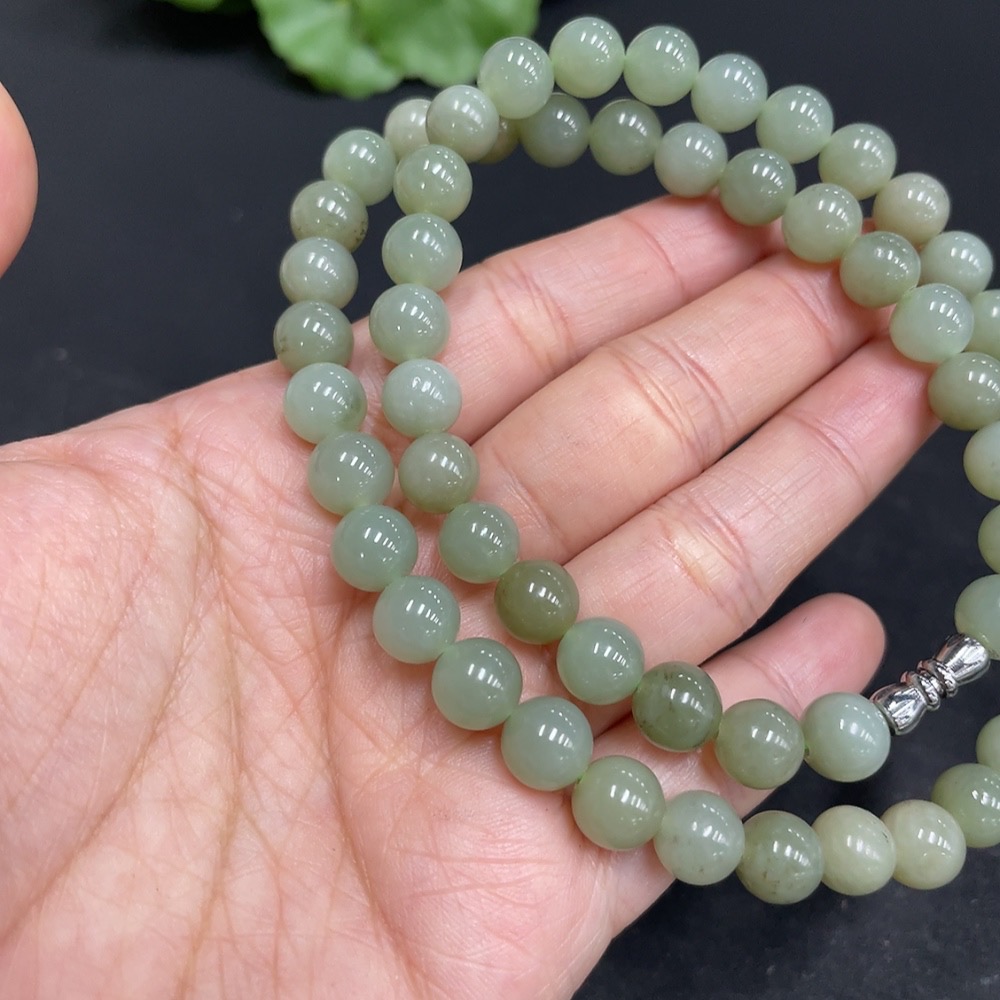 Hetian Jade Bead Necklace Non-Gold Approx. 7.8mm Total Weight Approx. 43.2g