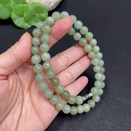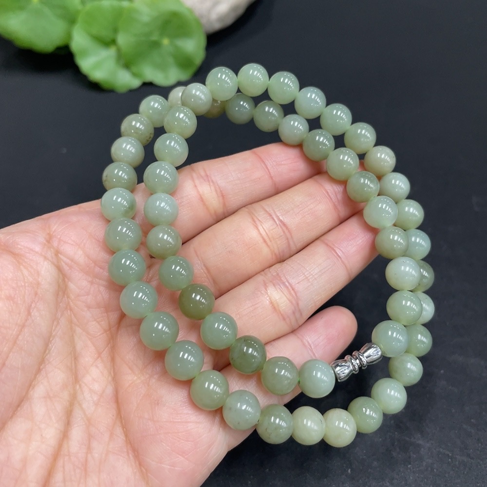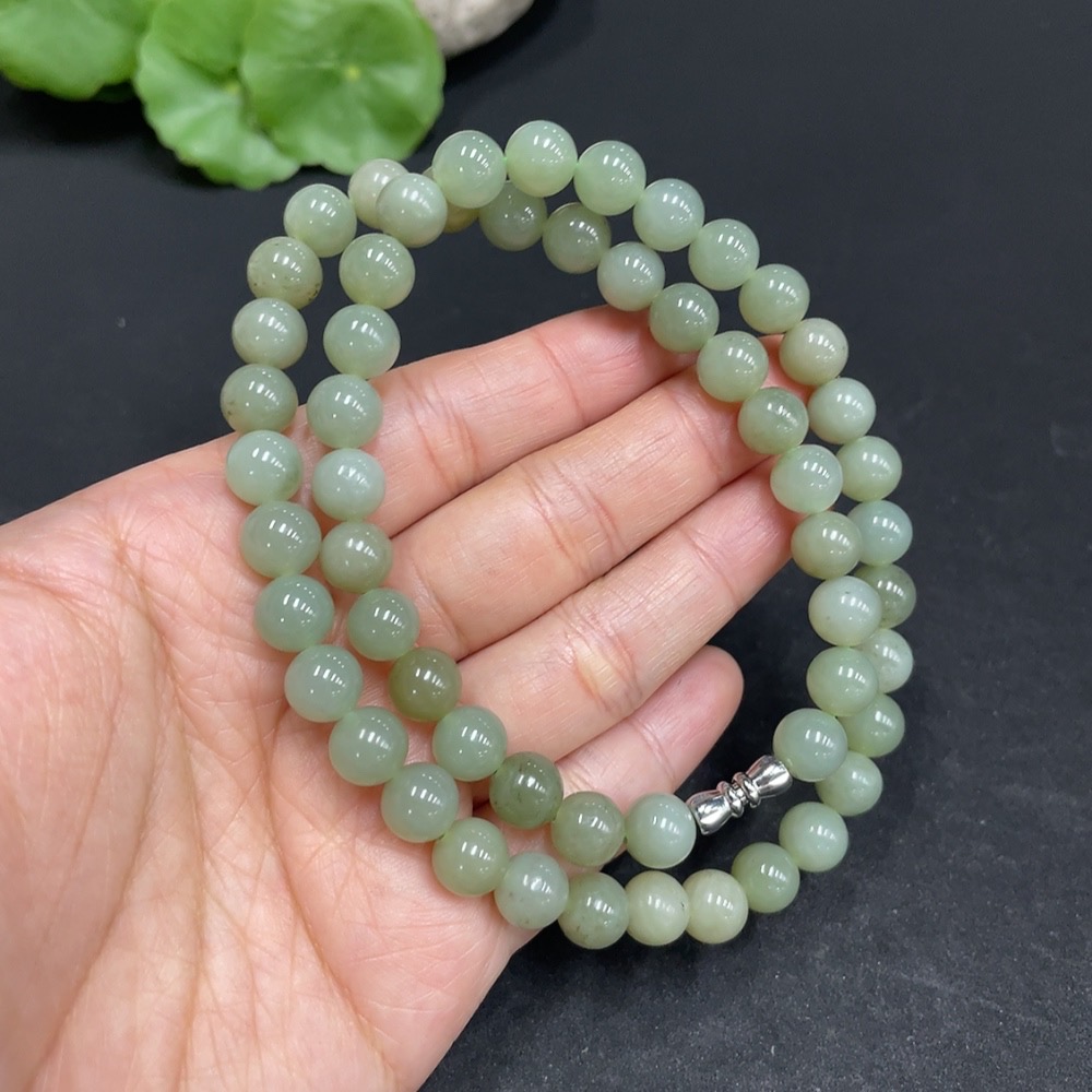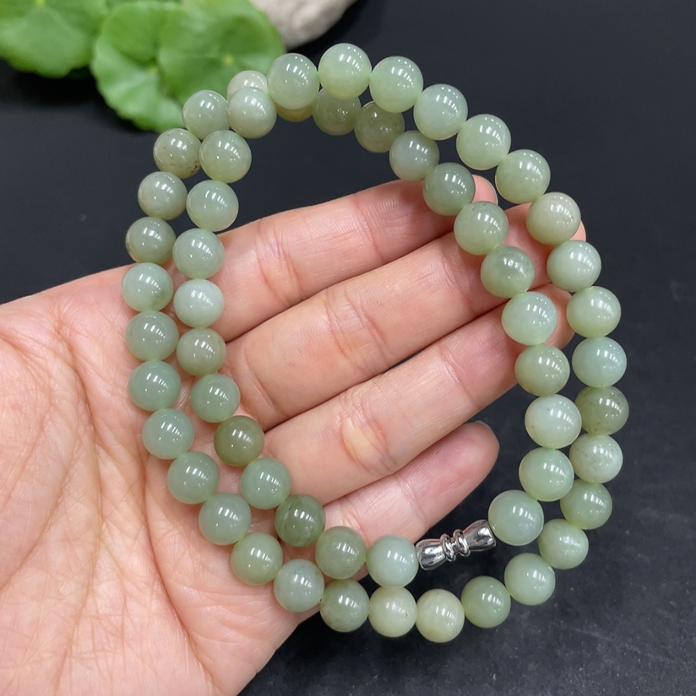 Hetian Jade Bead Necklace Non-Gold Approx. 7.8mm Total Weight Approx. 43.2g