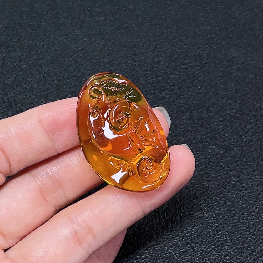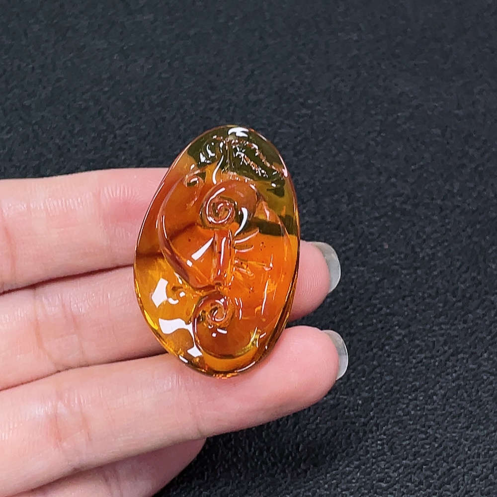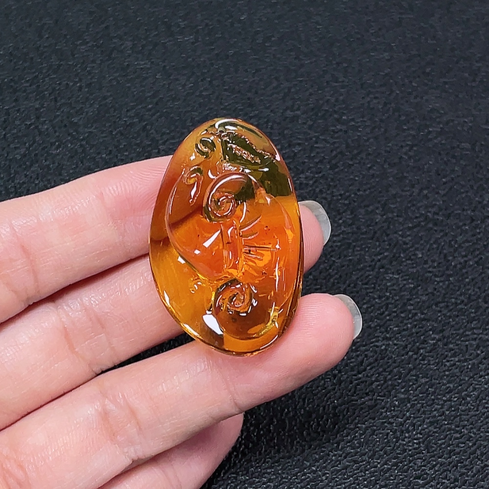 Amber beeswax pendant with colorless coating, total weight approximately 6.5g