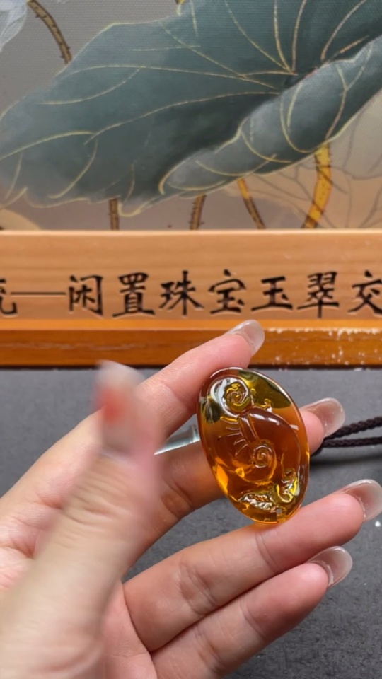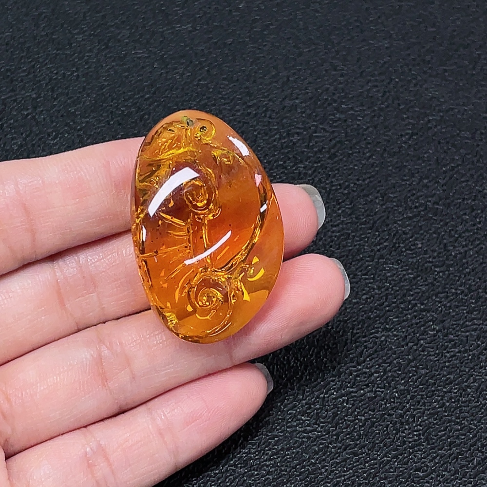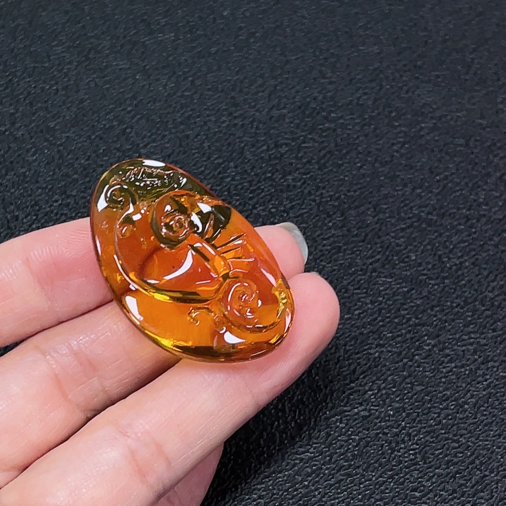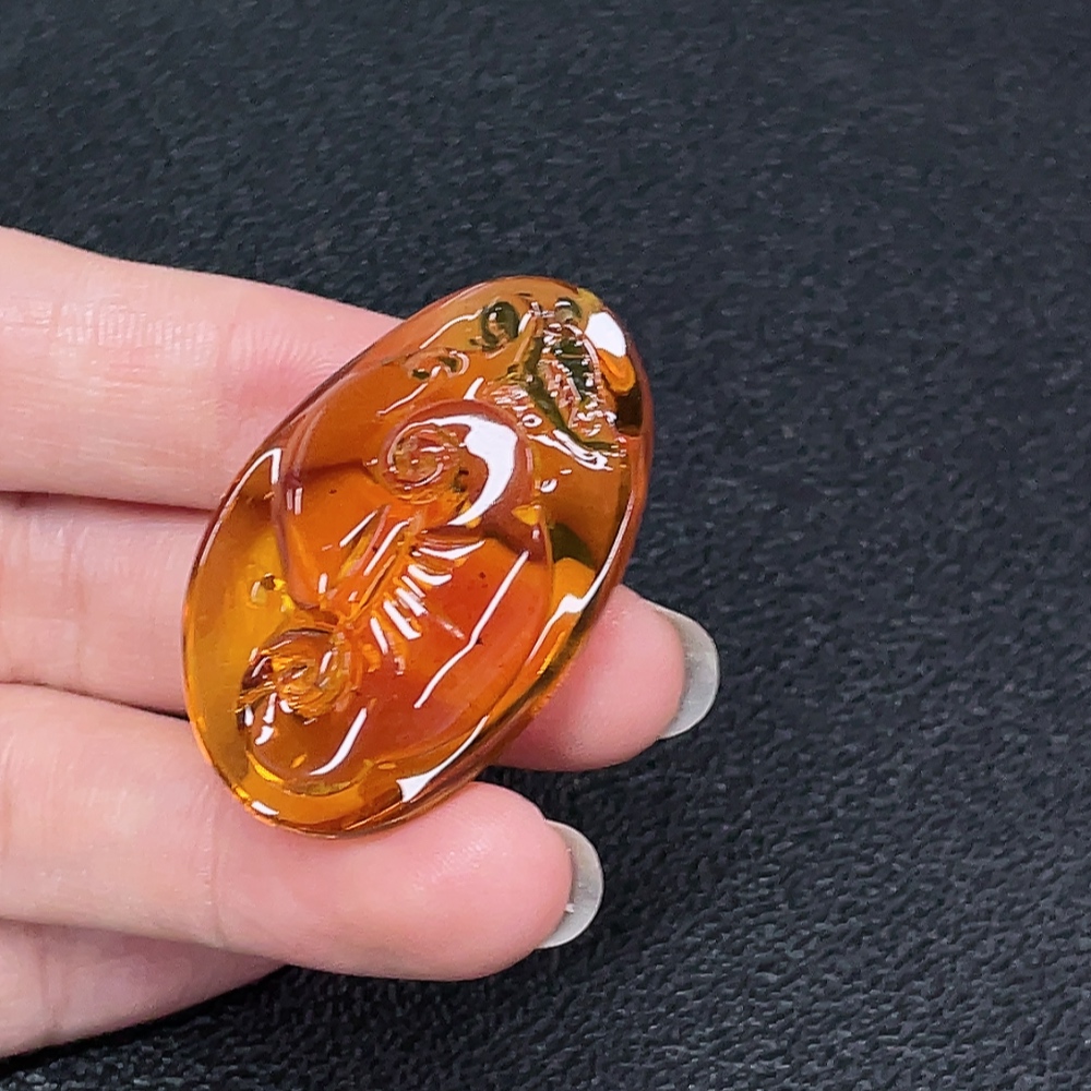 Amber beeswax pendant with colorless coating, total weight approximately 6.5g