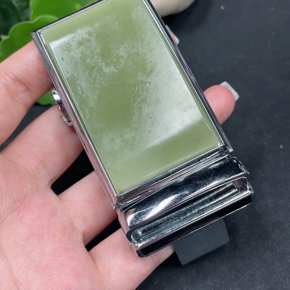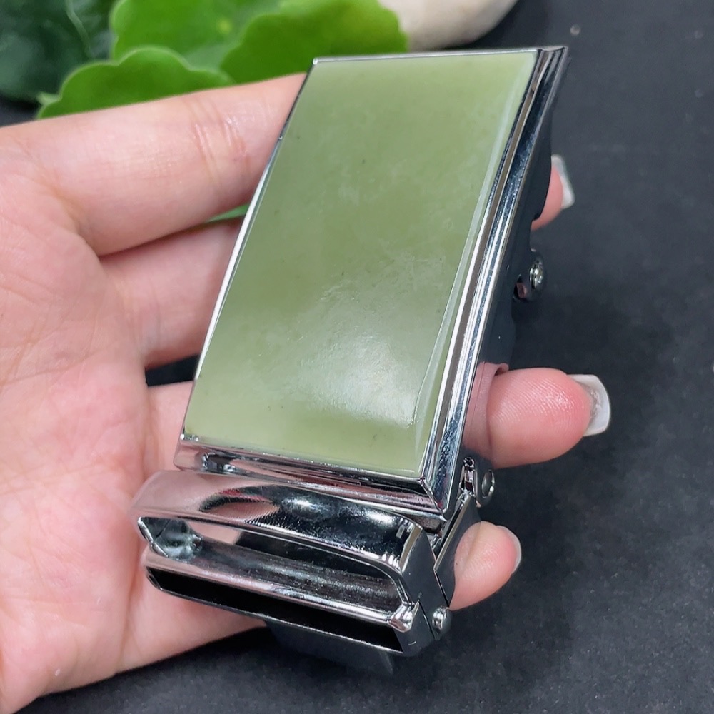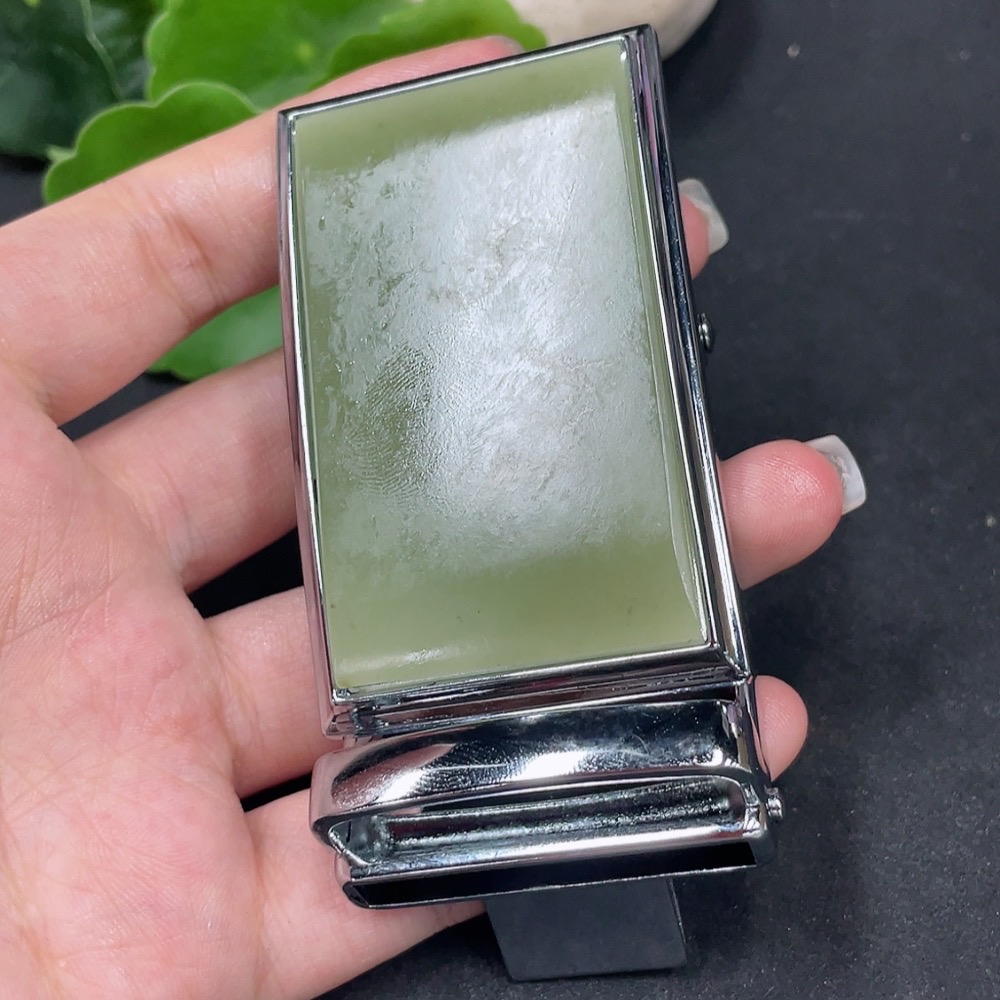 Hetian Jade Inlaid Belt Buckle Non-Gold Total Weight Approx. 115.1g