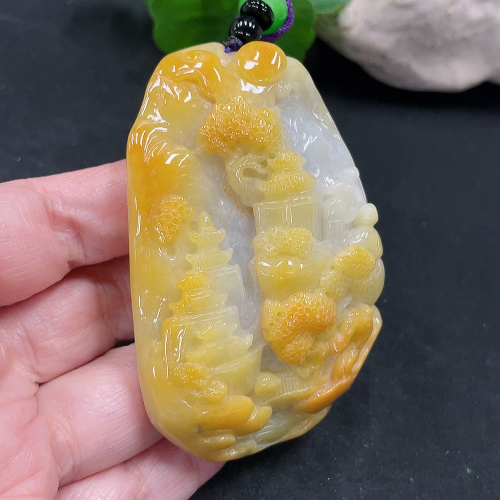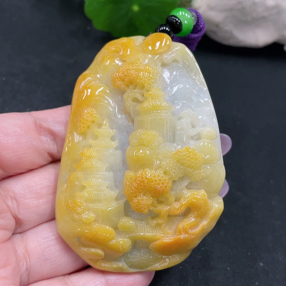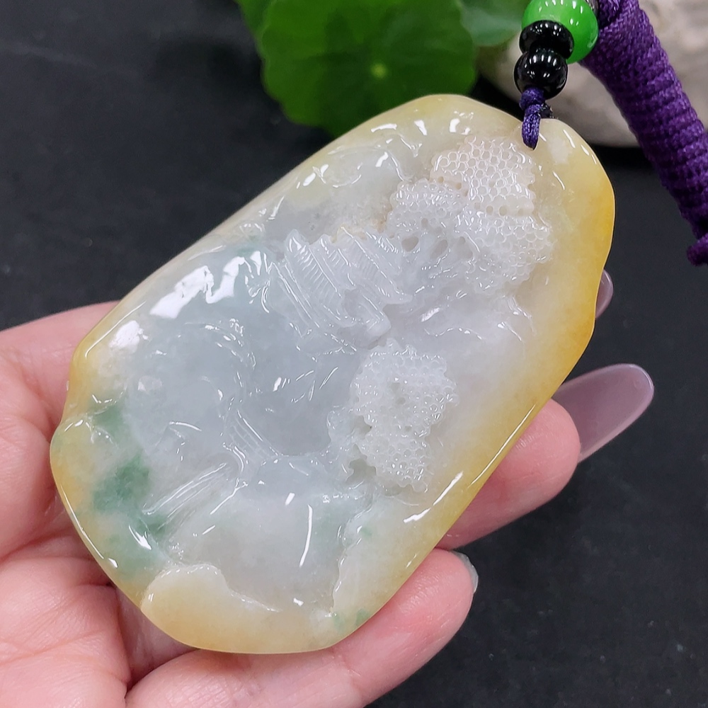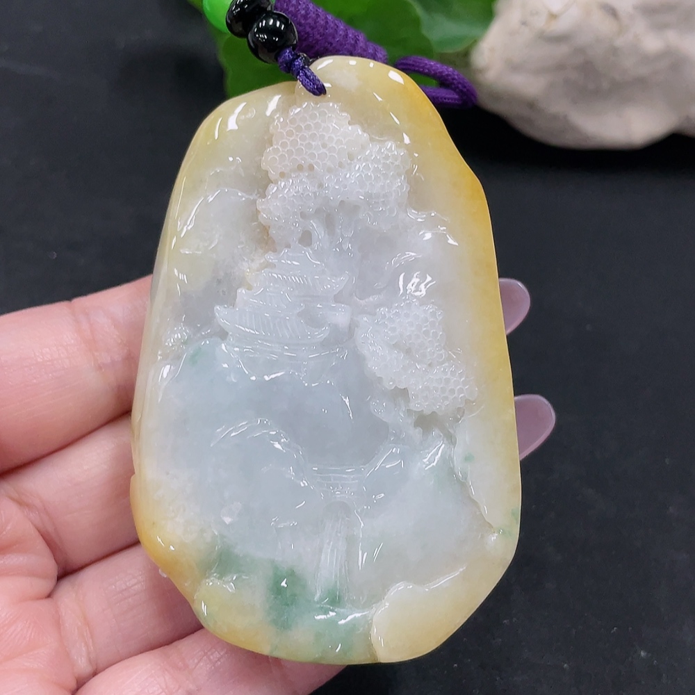 Jadeite Pendant Landscape with Non-Grade A Beads Including Rope Total Weight Approx. 99.6g