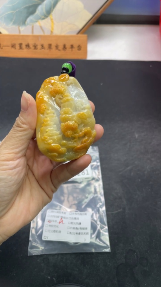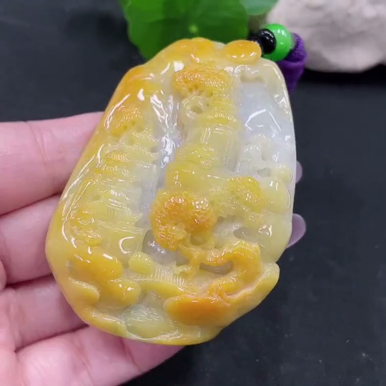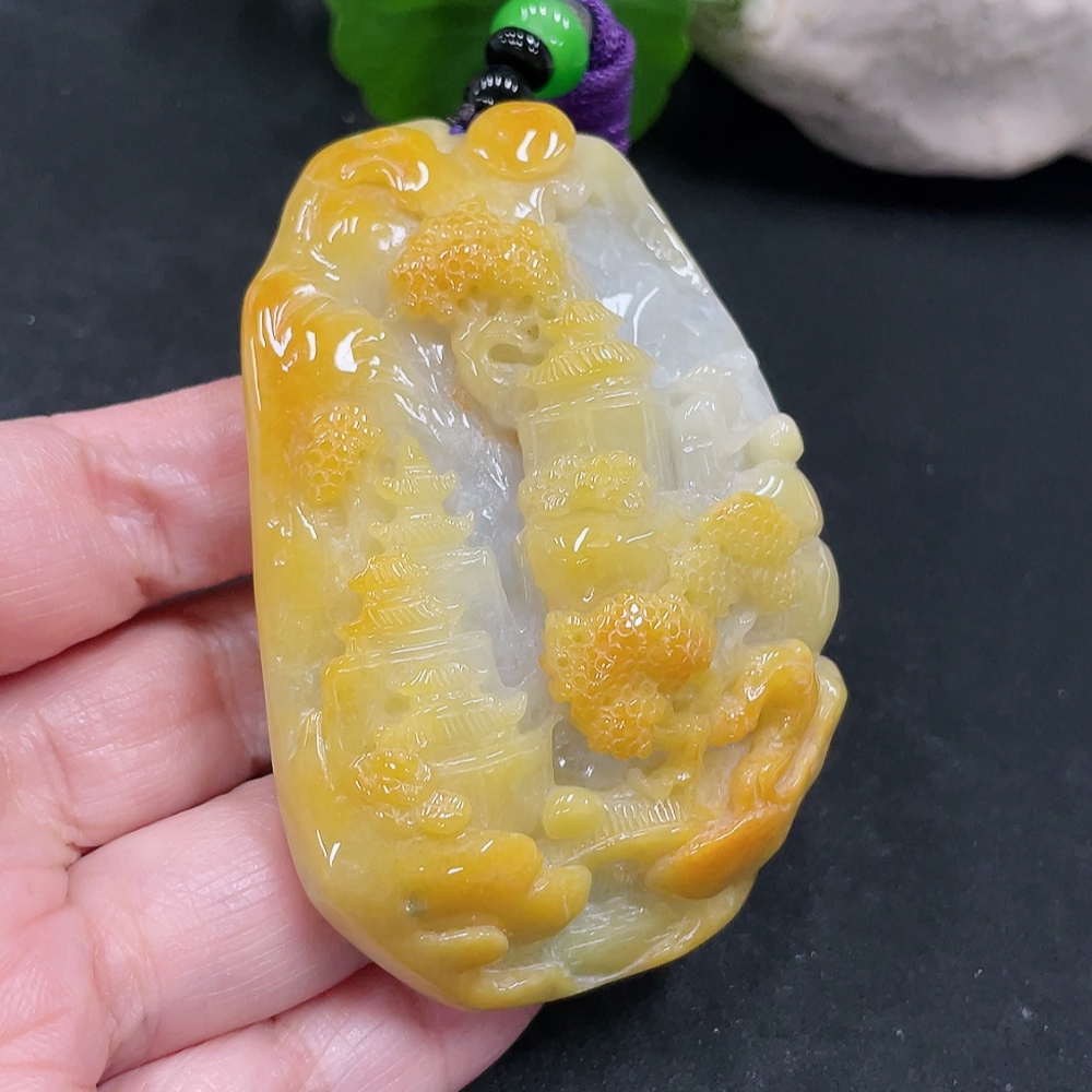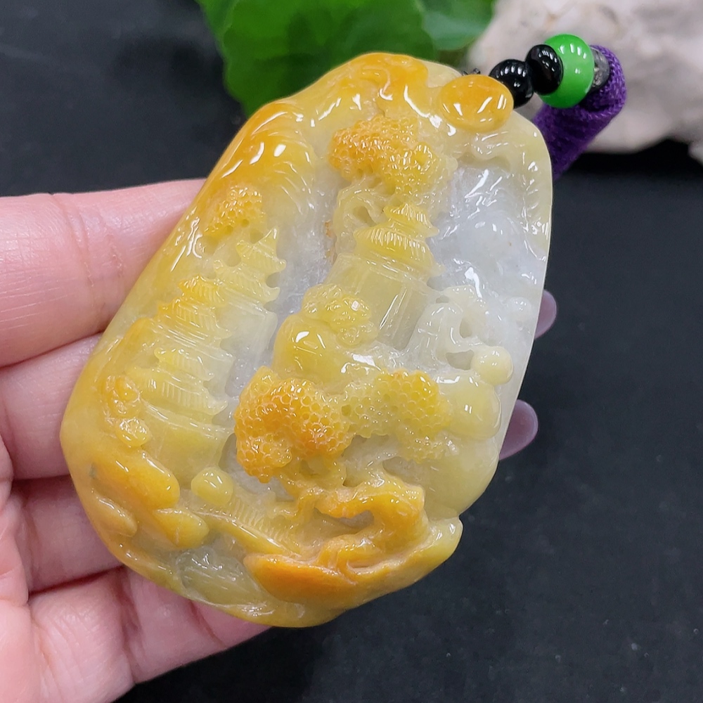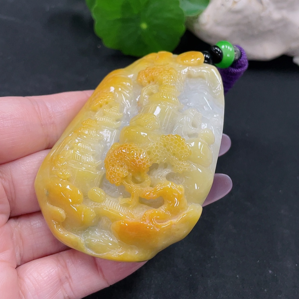 Jadeite Pendant Landscape with Non-Grade A Beads Including Rope Total Weight Approx. 99.6g