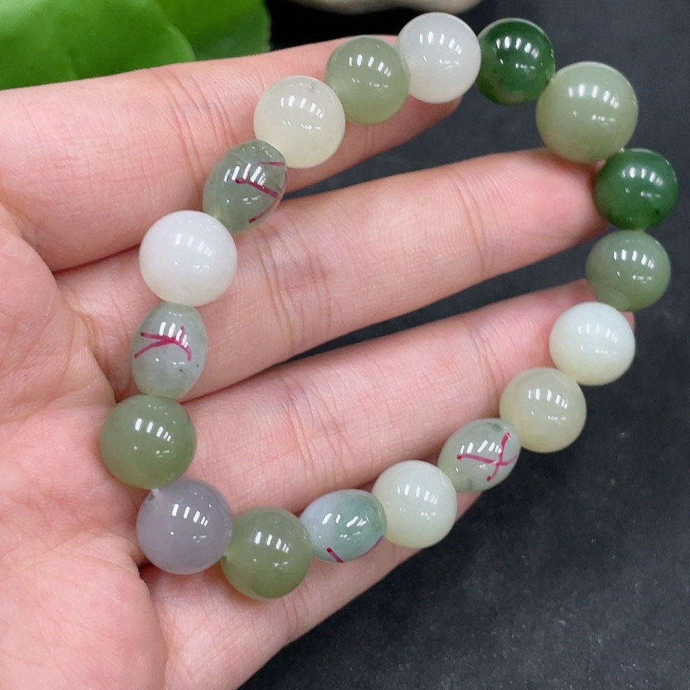 Hetian Jade Bracelet with Non-Hetian Jade Beads, Total Weight Approximately 27.2g