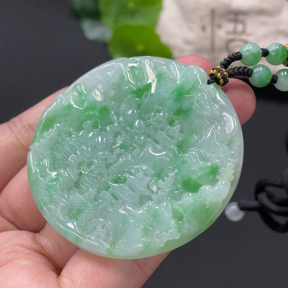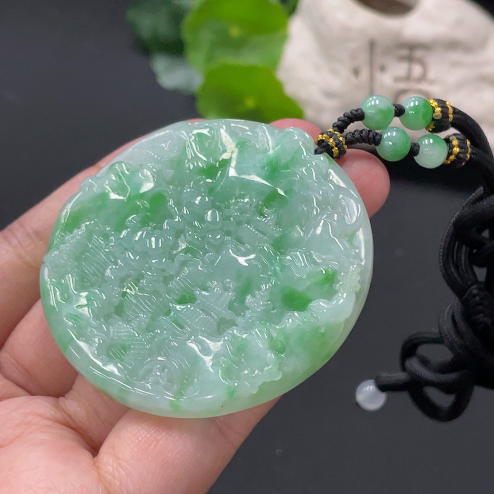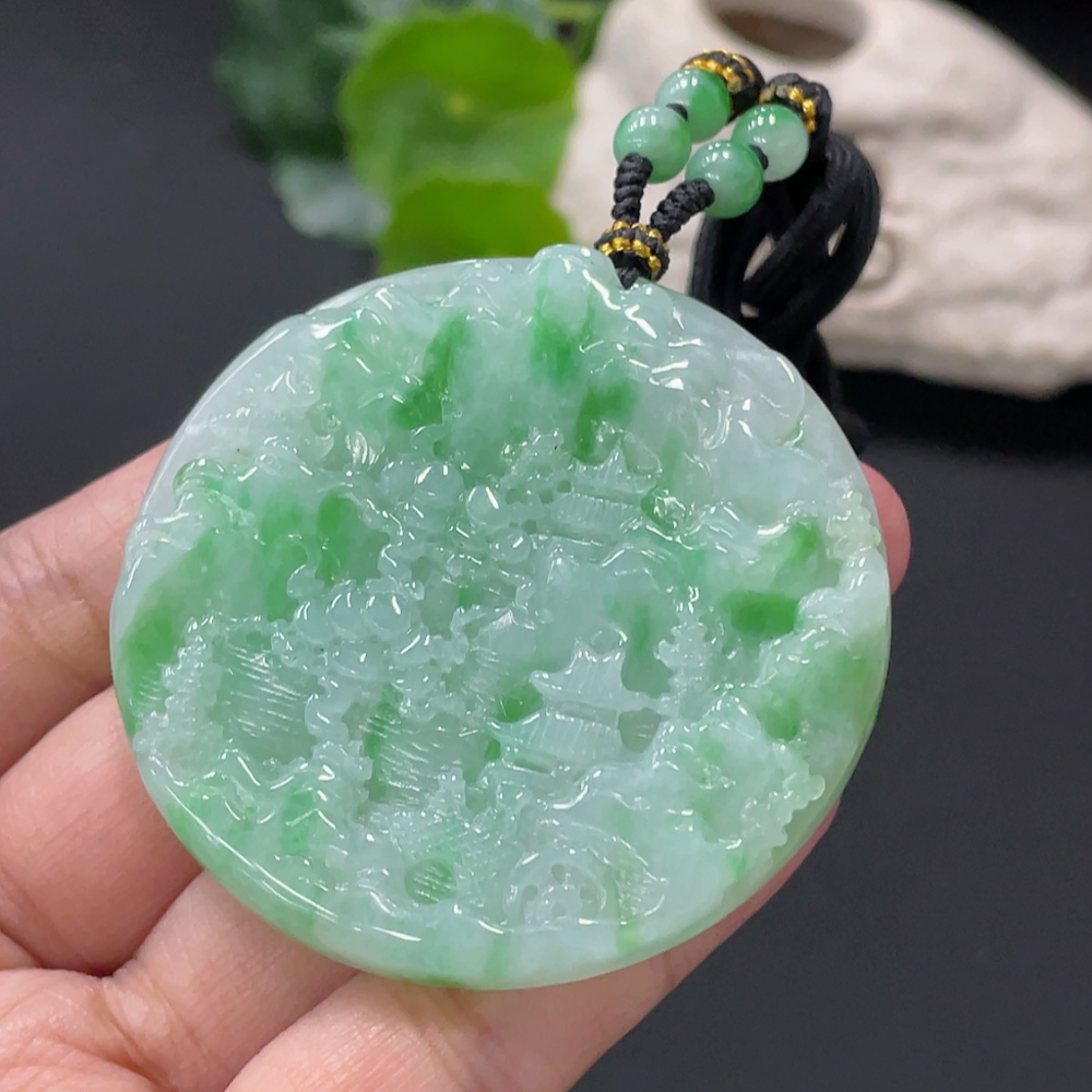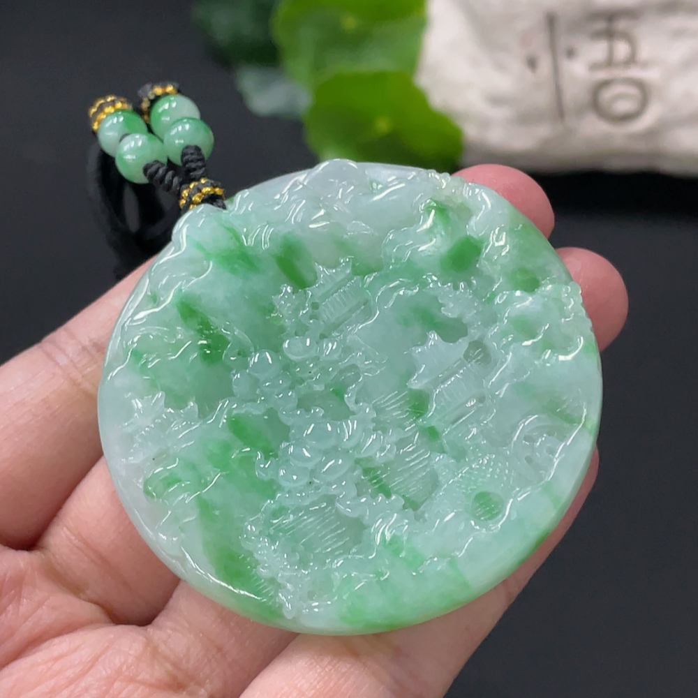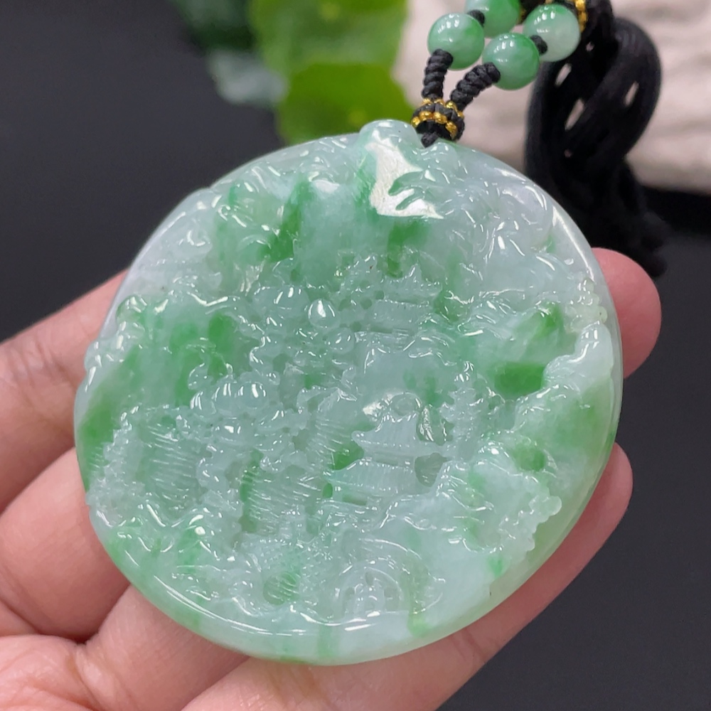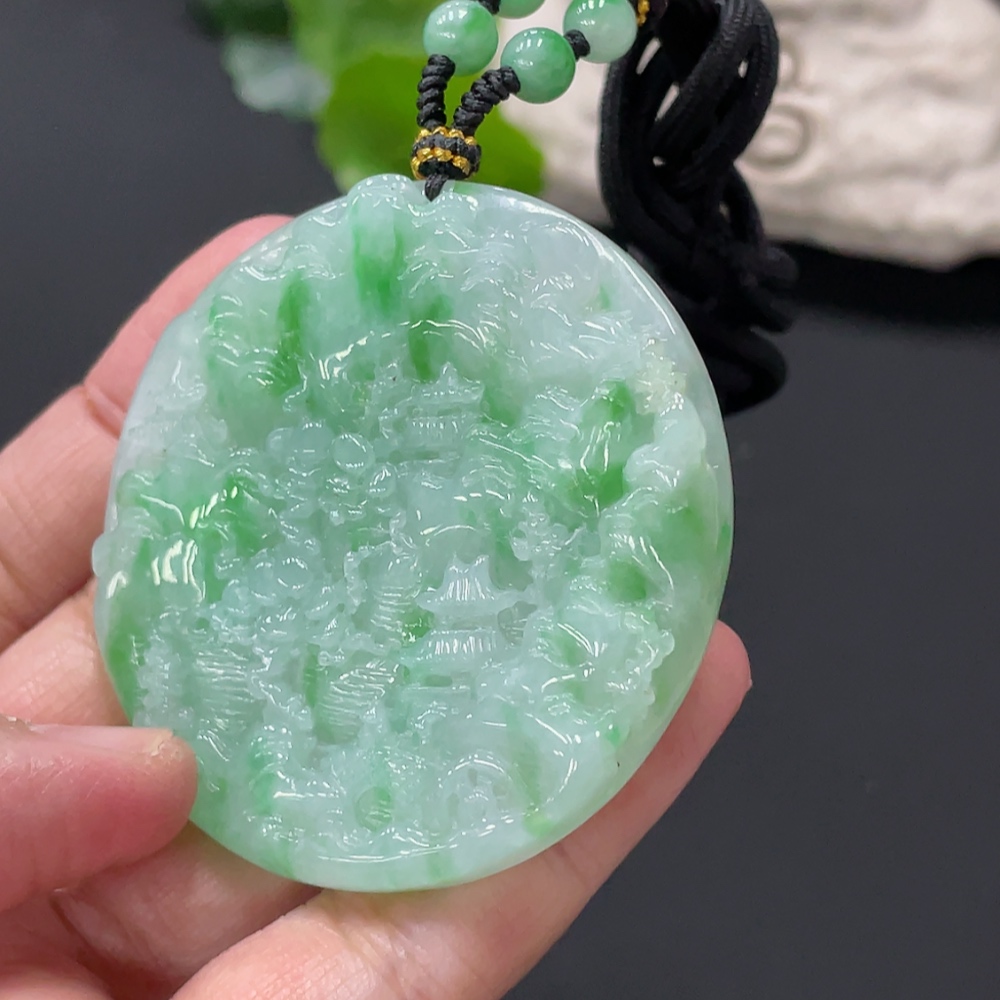 Jadeite Landscape Pendant, Total Weight Approx. 48g