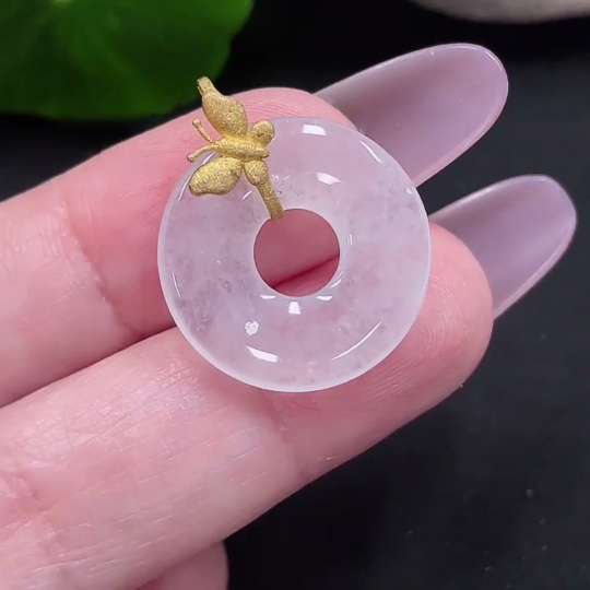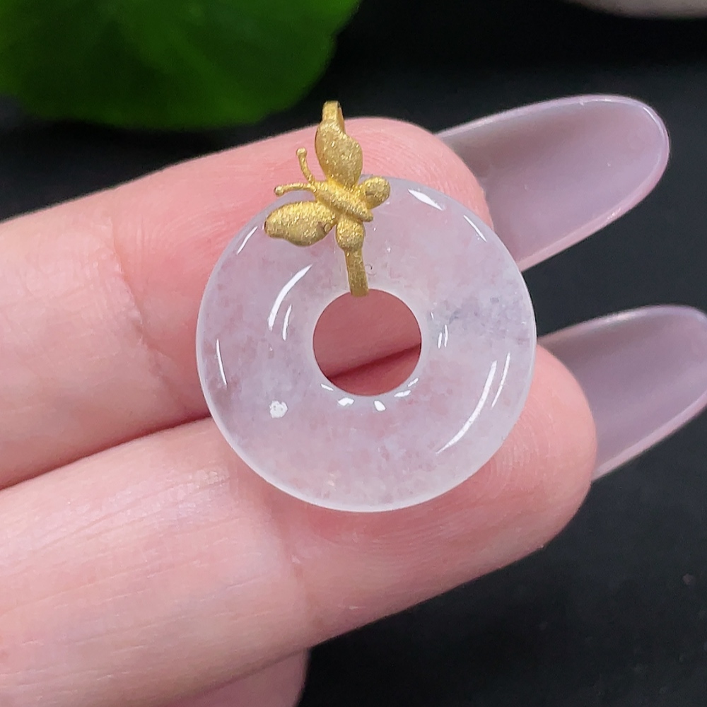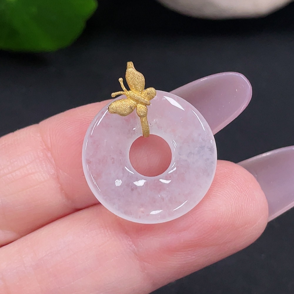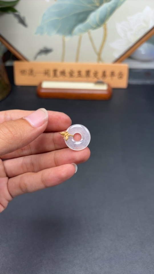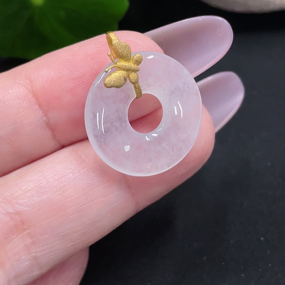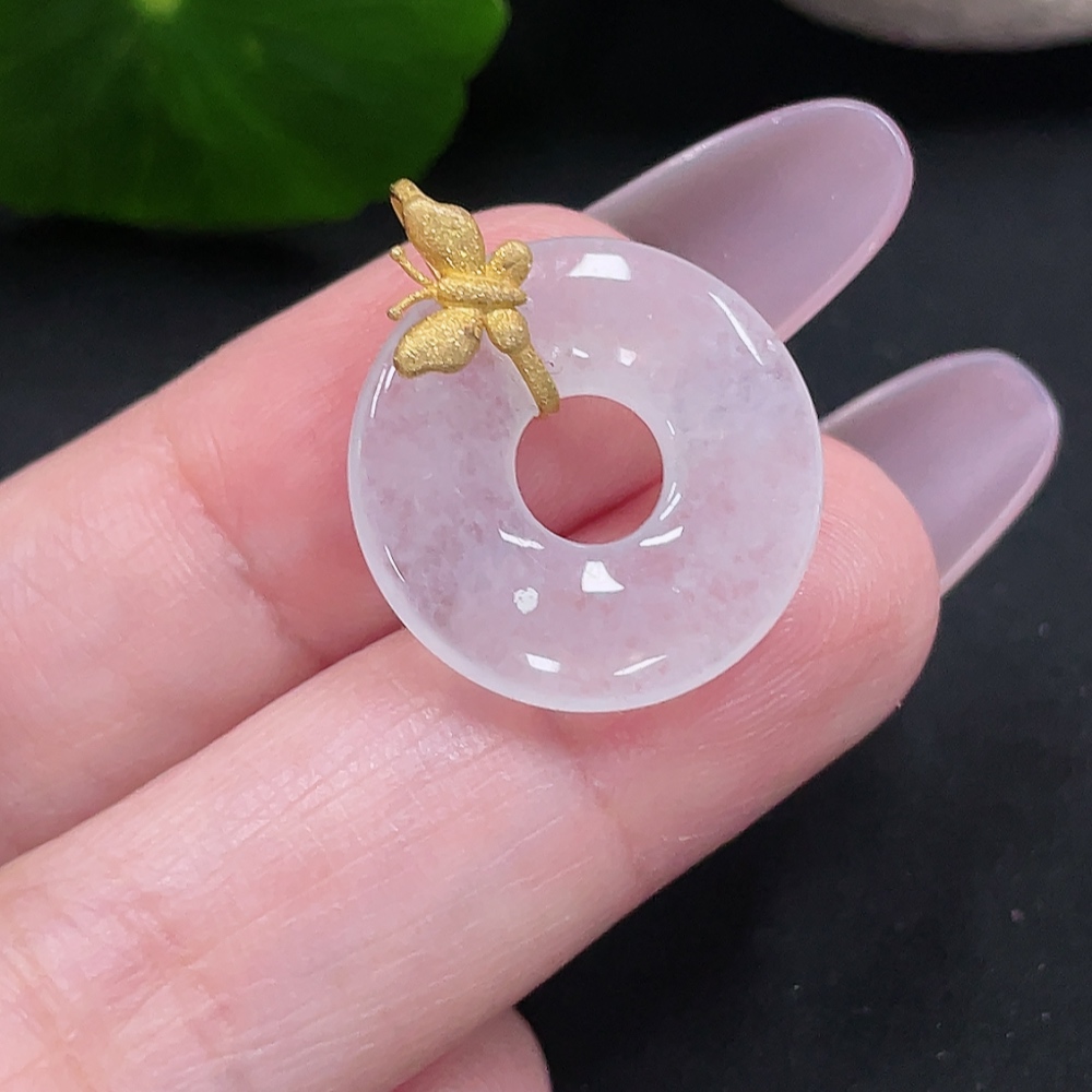 Jadeite Button Pendant with 18K Gold Clasp Total Weight Approximately 2.4g