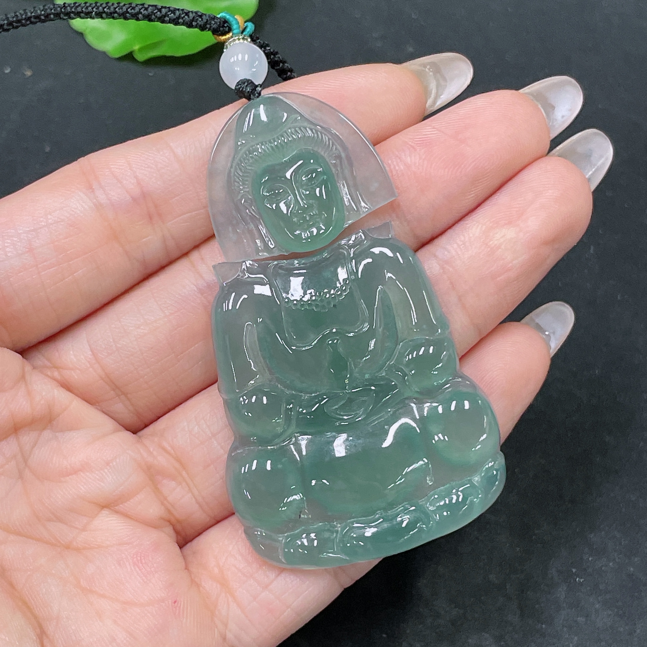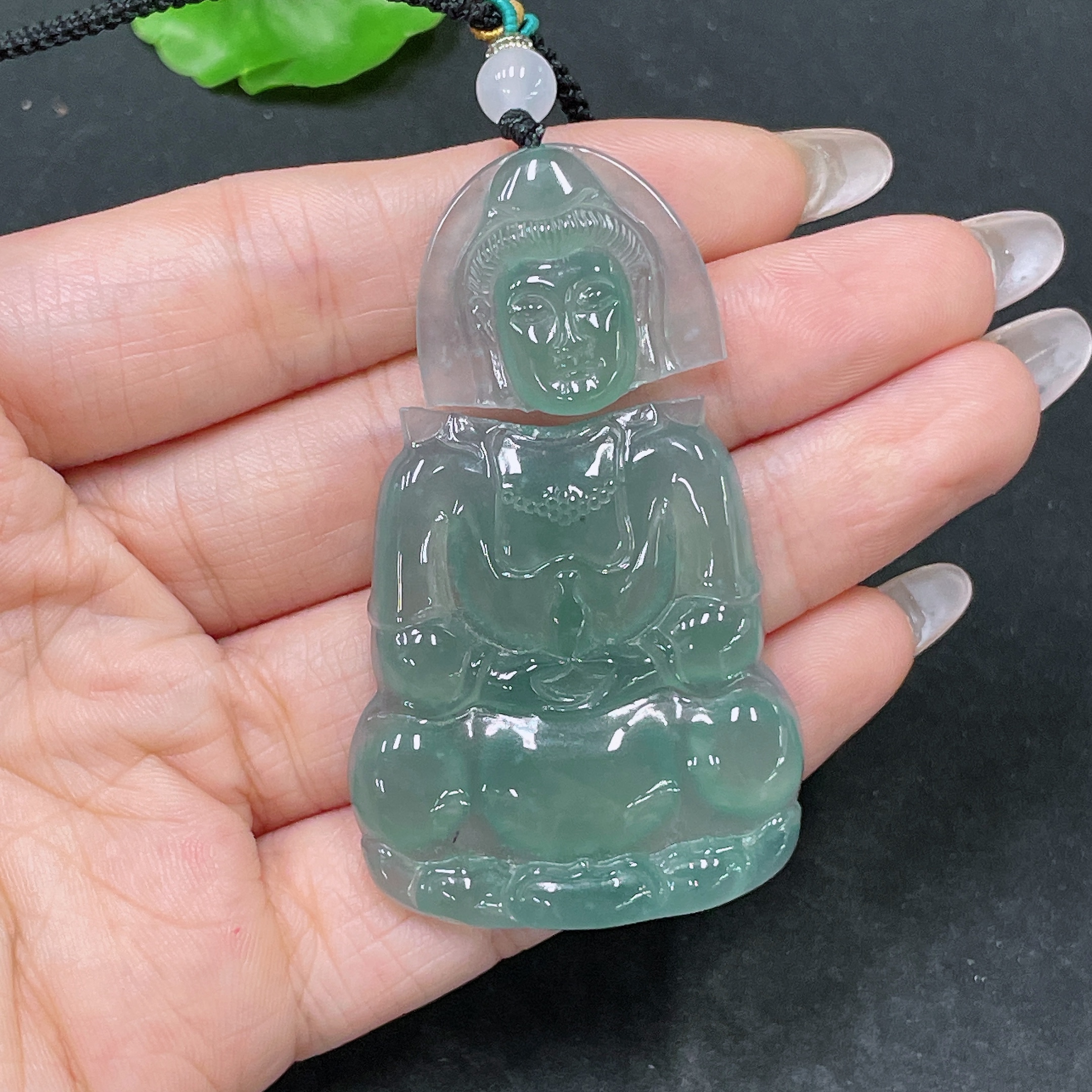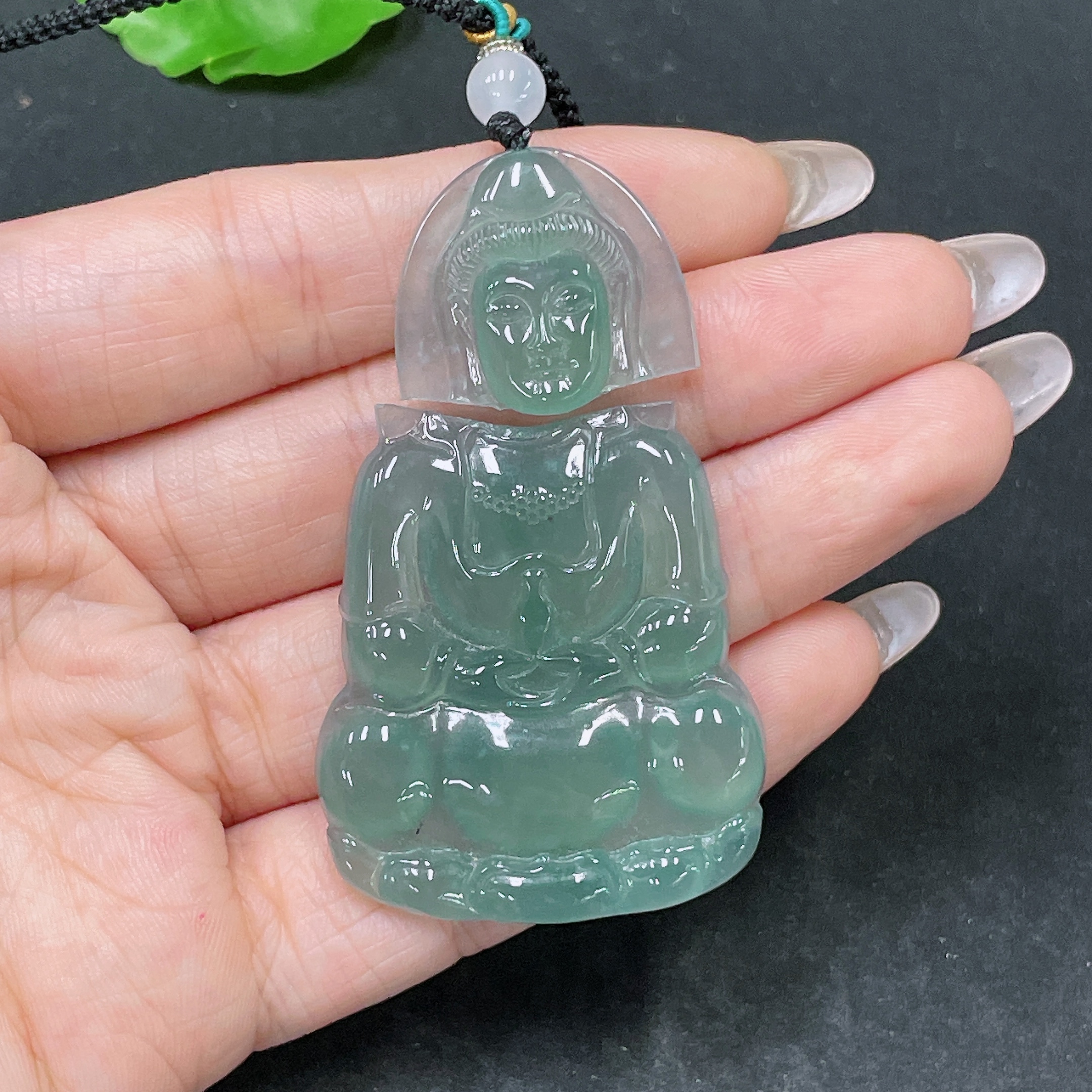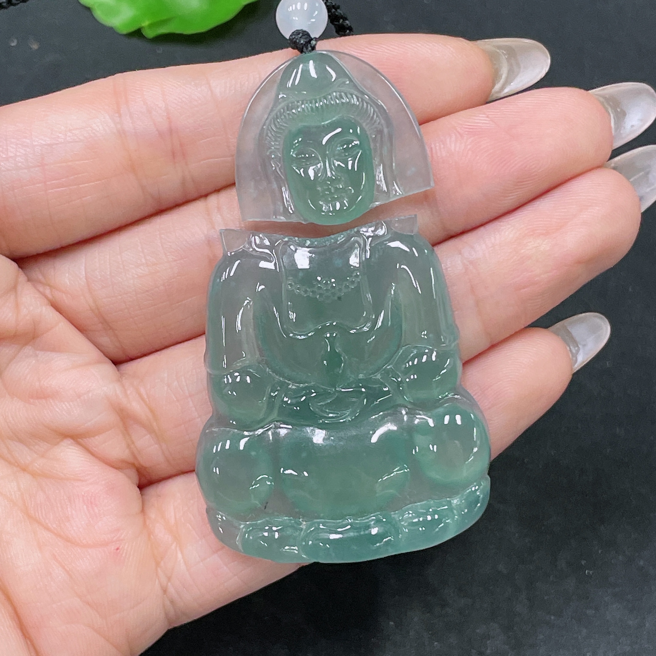 Jadeite Guanyin Pendant Total Weight Approx. 20.37g (Including Cord Weight) With Breakage