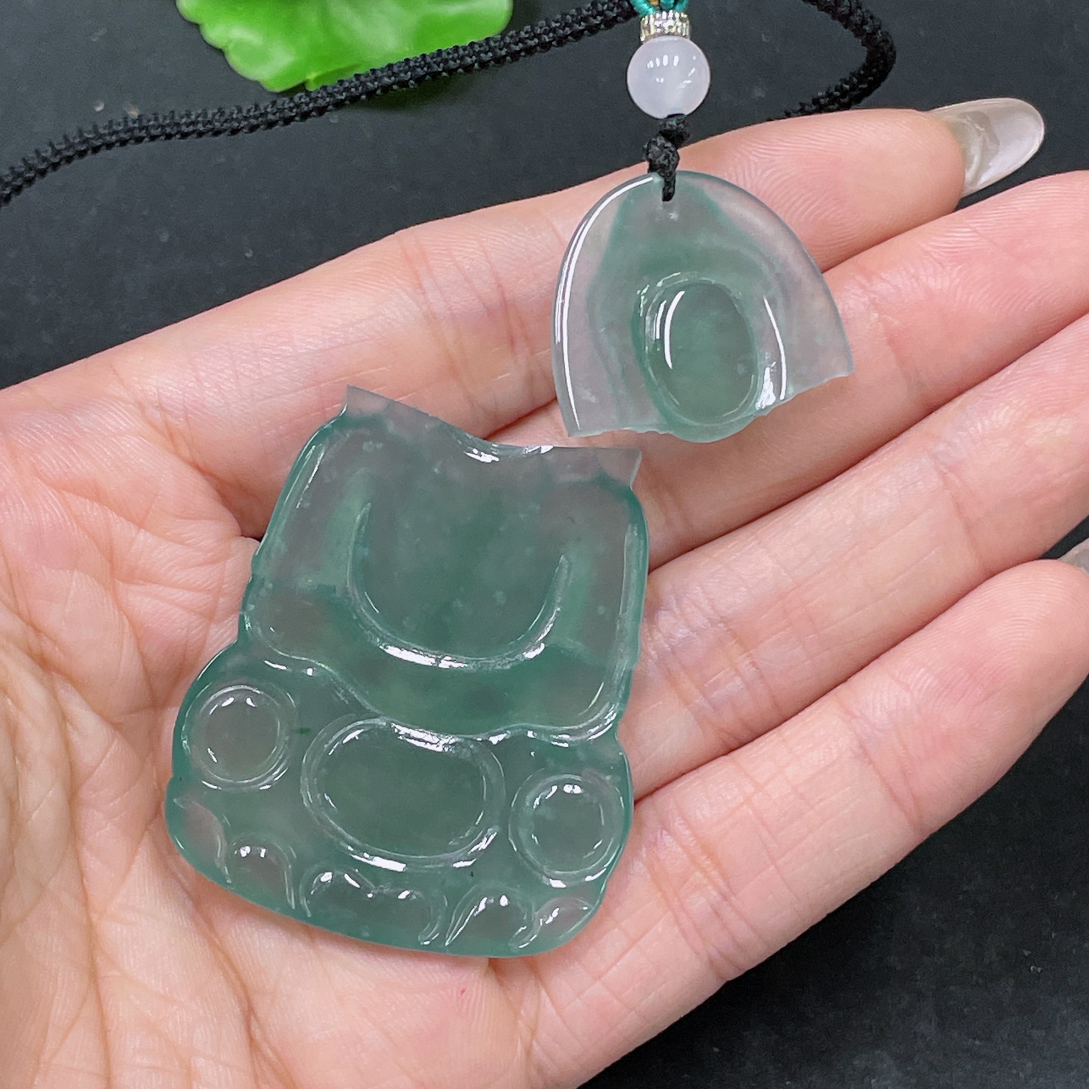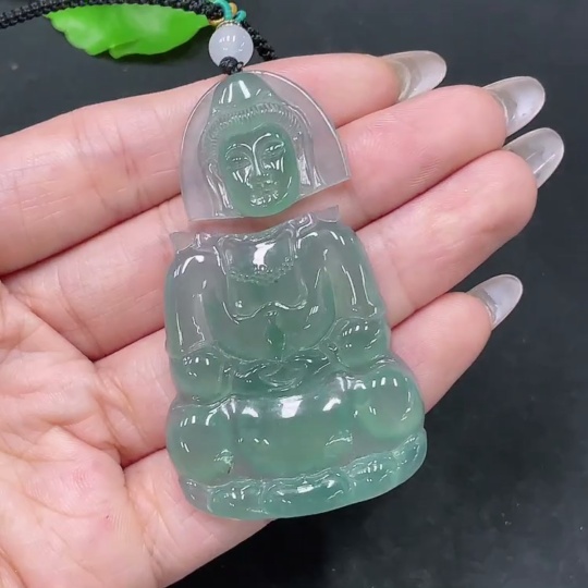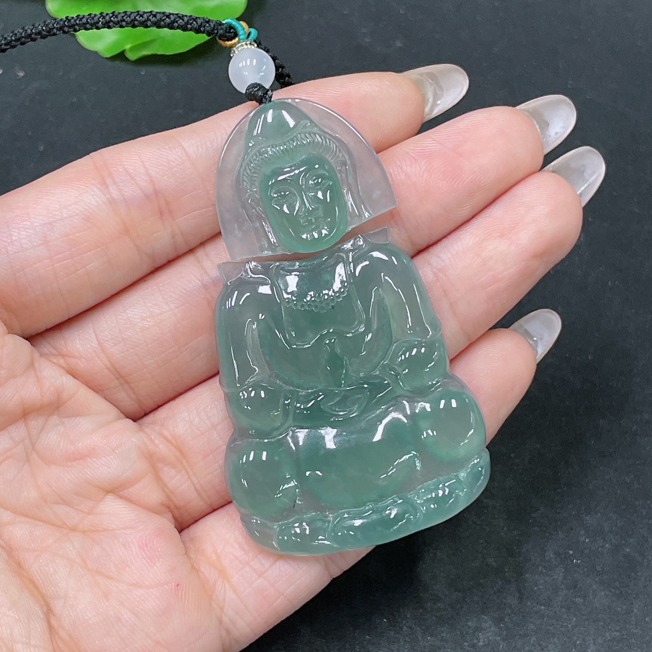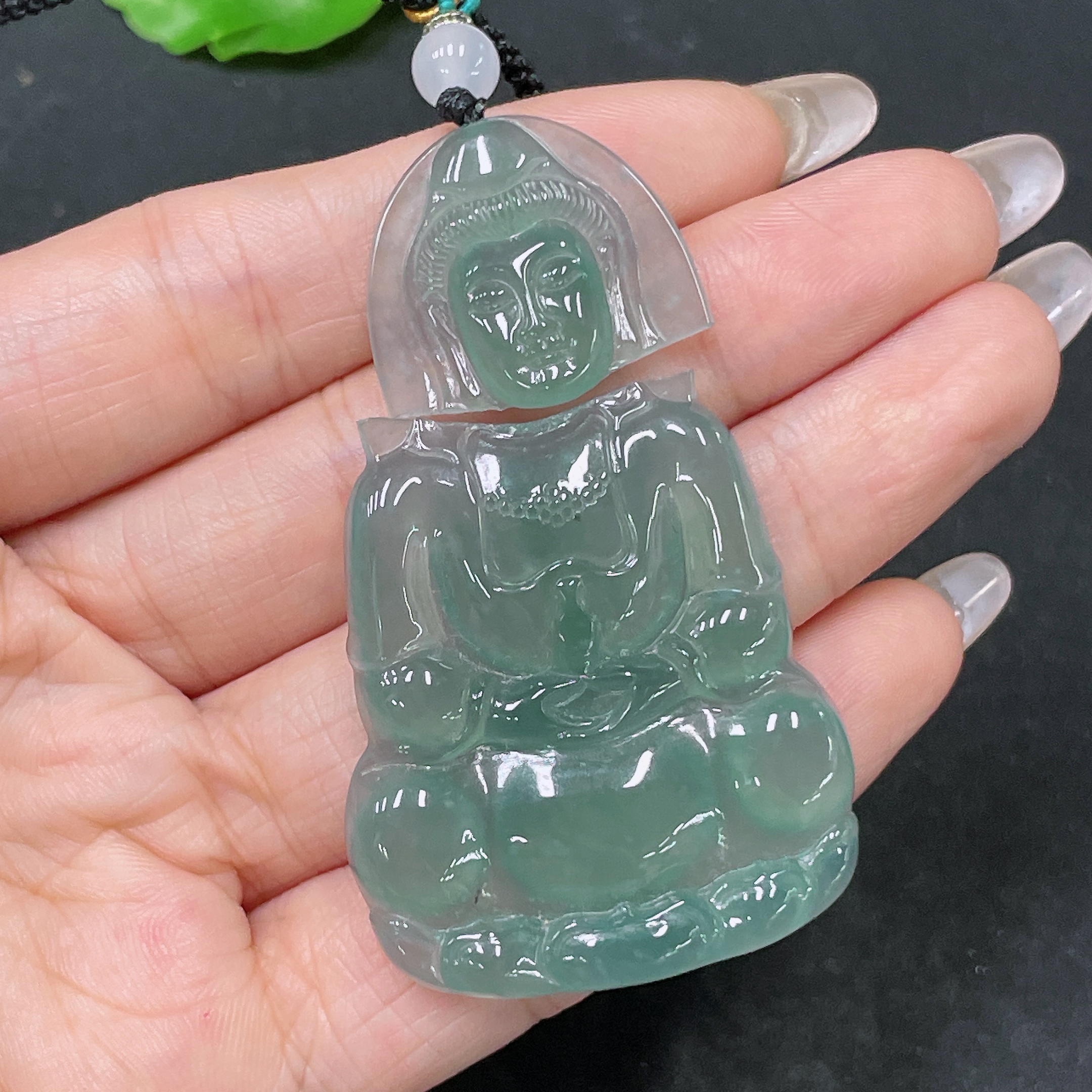 Jadeite Guanyin Pendant Total Weight Approx. 20.37g (Including Cord Weight) With Breakage