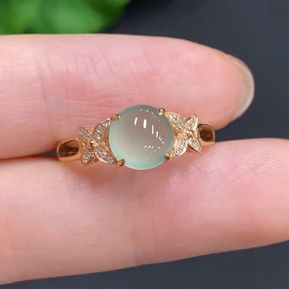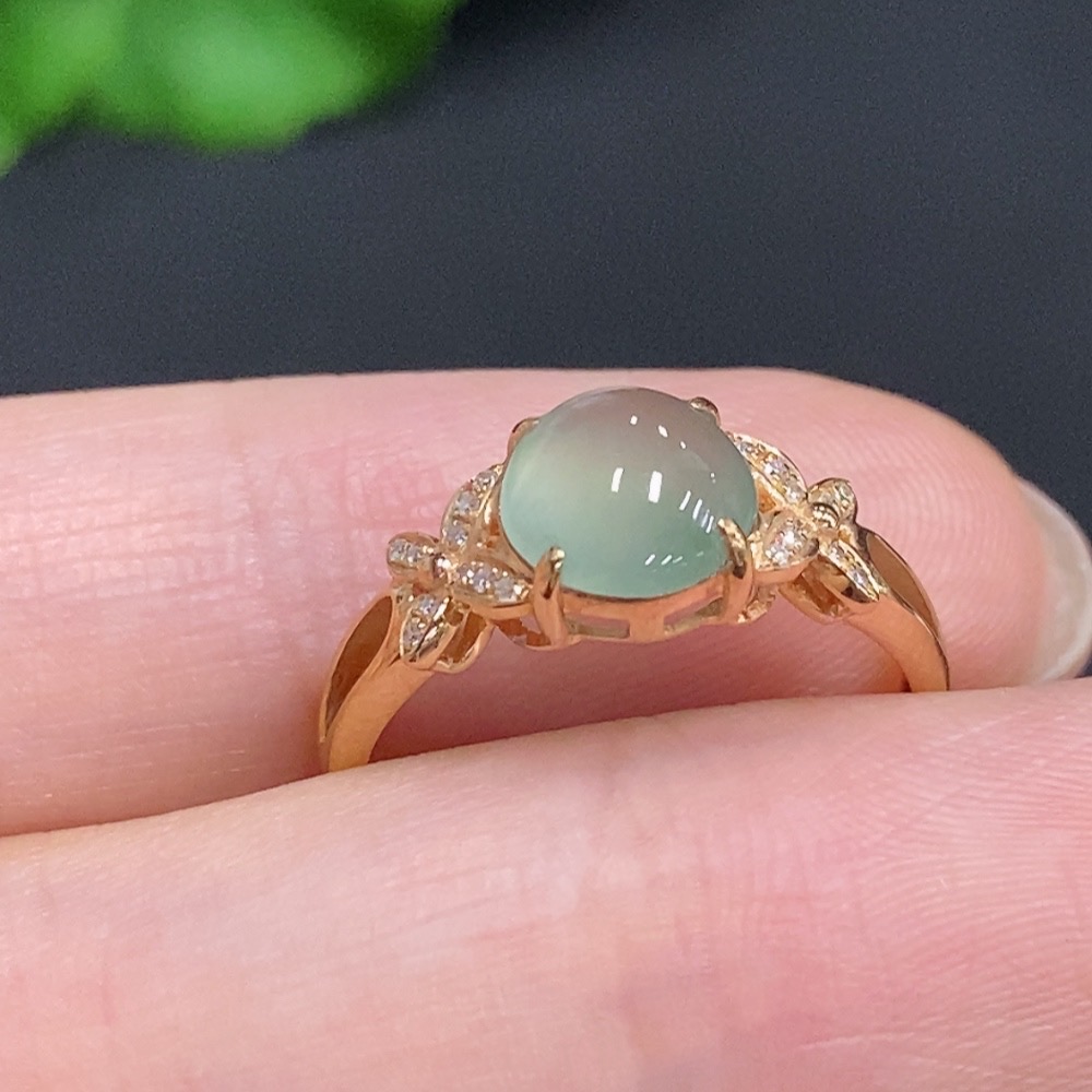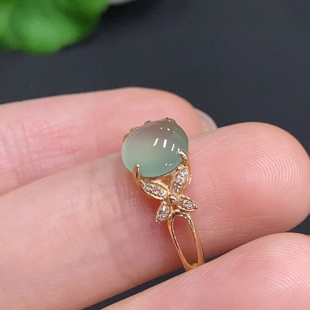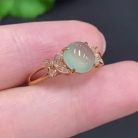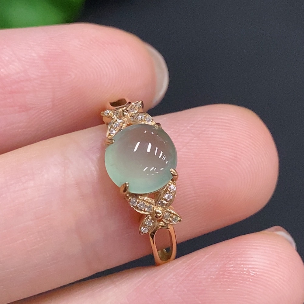Jadeite Cabochon Ring 18k Gold Total Weight Approx. 2g Size 14 with Diamond Accents