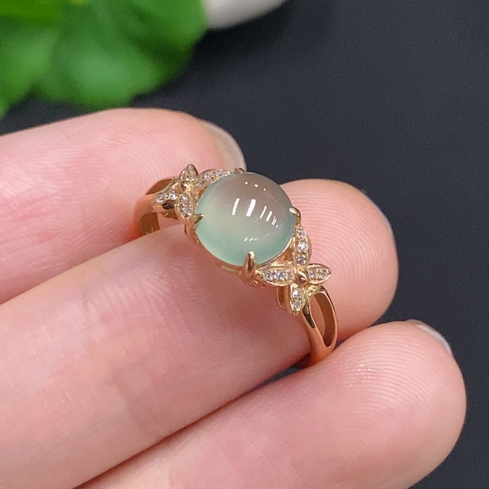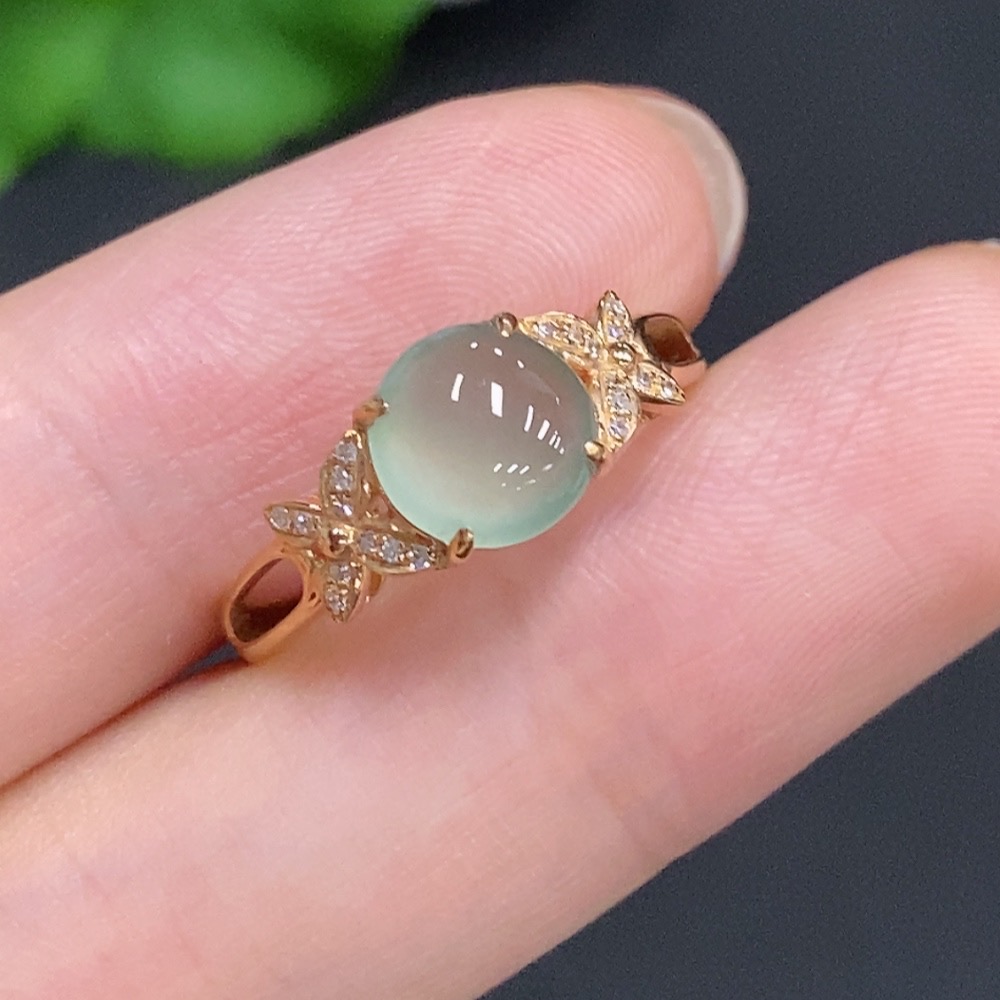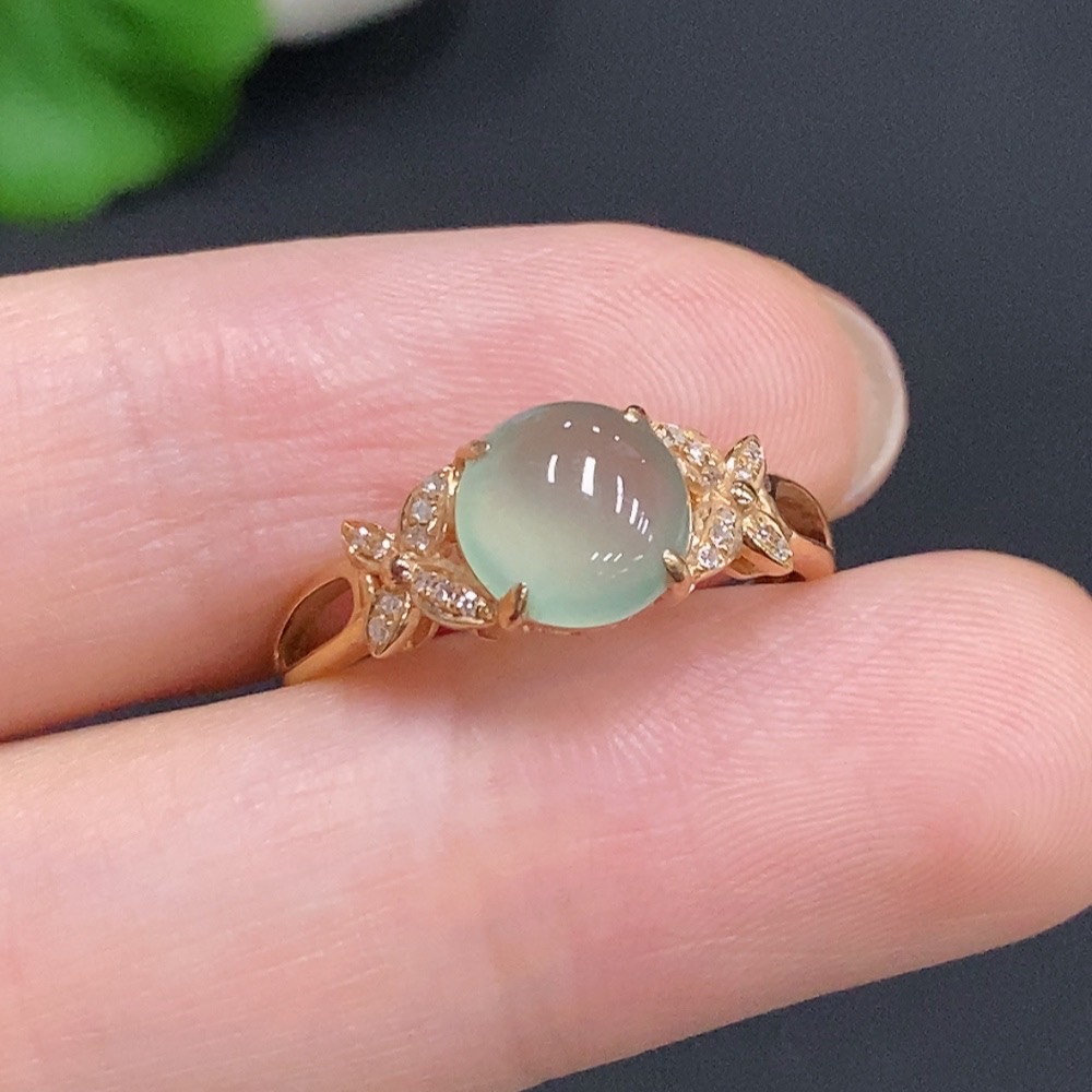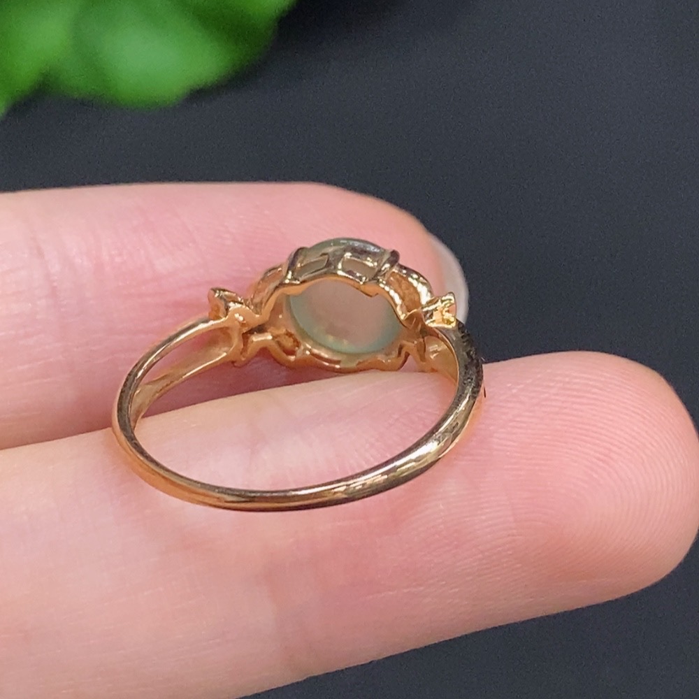 Jadeite Cabochon Ring 18k Gold Total Weight Approx. 2g Size 14 with Diamond Accents