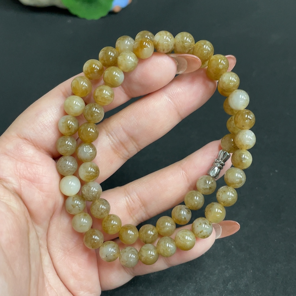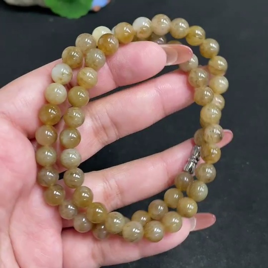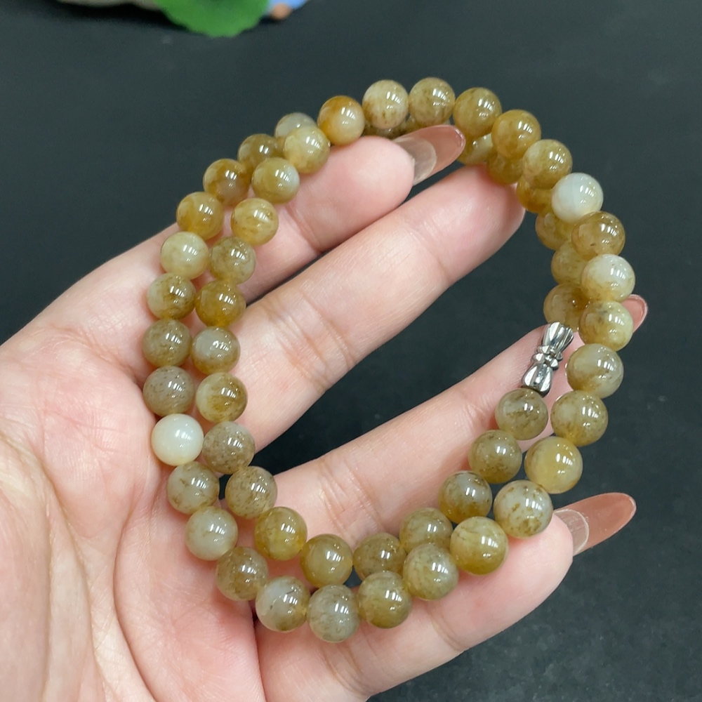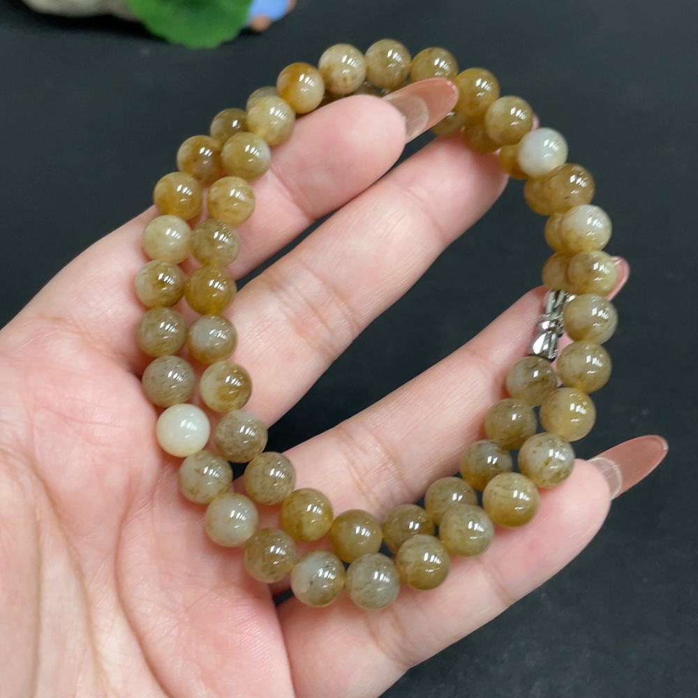 Hetian Jade Bead Necklace, Approx. 7.6 mm, Total Weight Approx. 41.9g