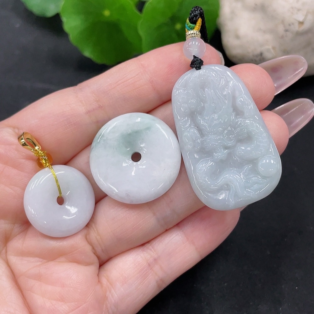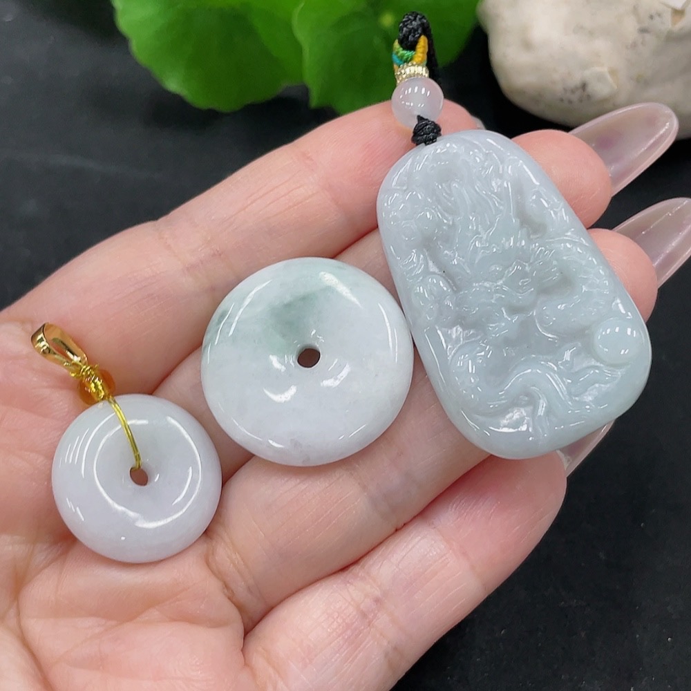 Jadeite Dragon Pendant / Peace Knot Pendant Non-Gold Inlaid