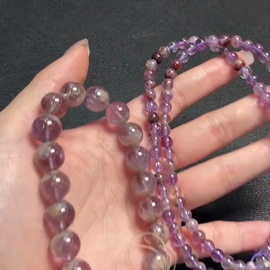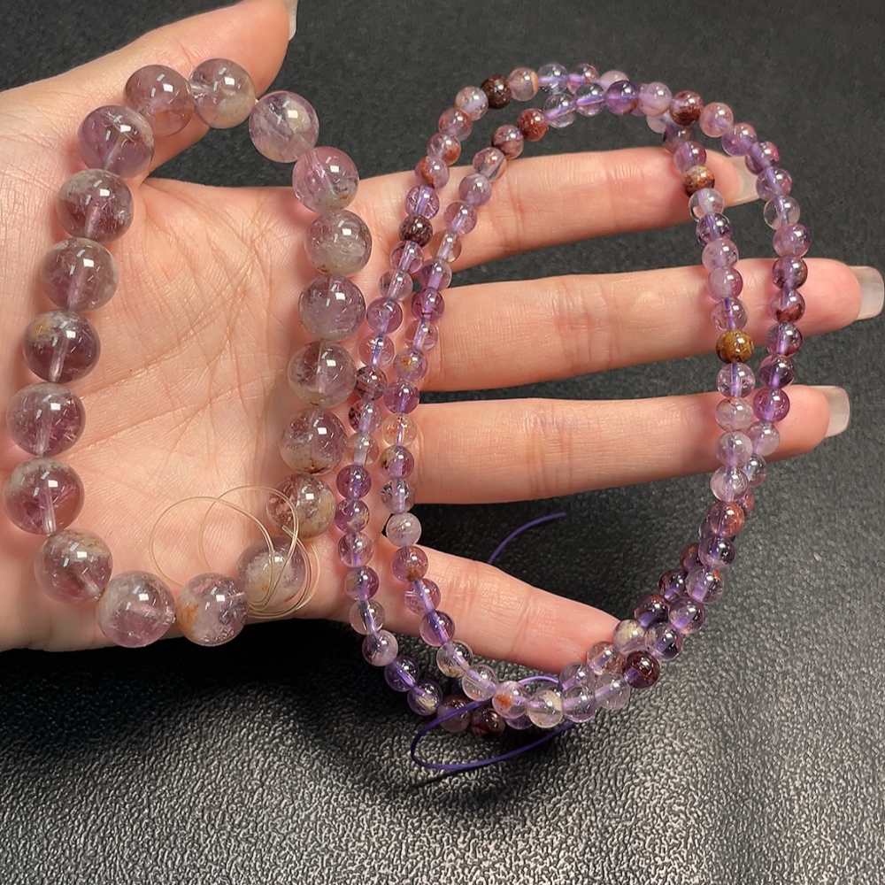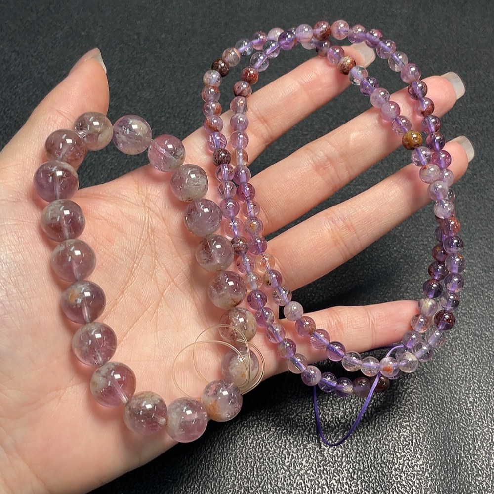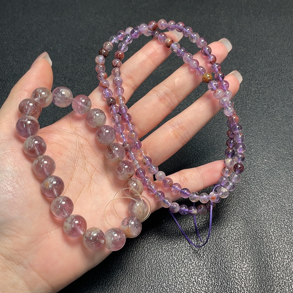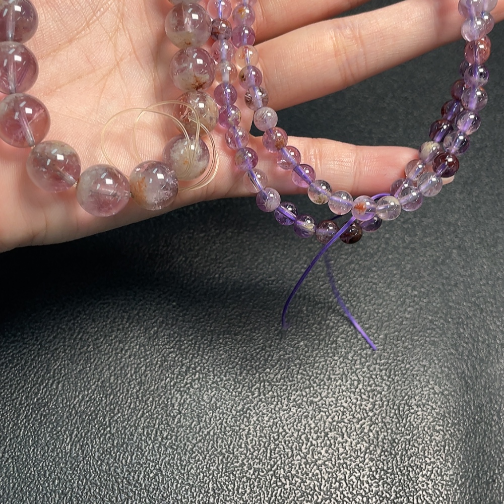Crystal Bead Necklace + Bracelet with Visible Organic Matter, Total Weight Approx. 62.70g (Sell as a Lot, Filled)