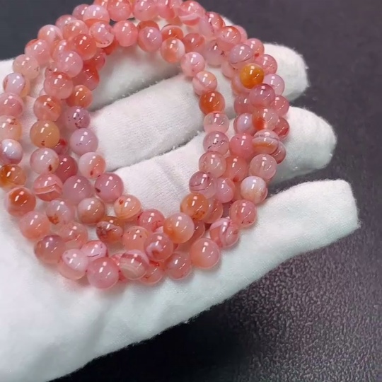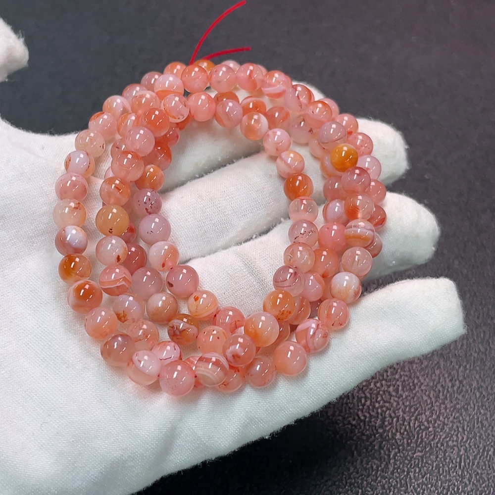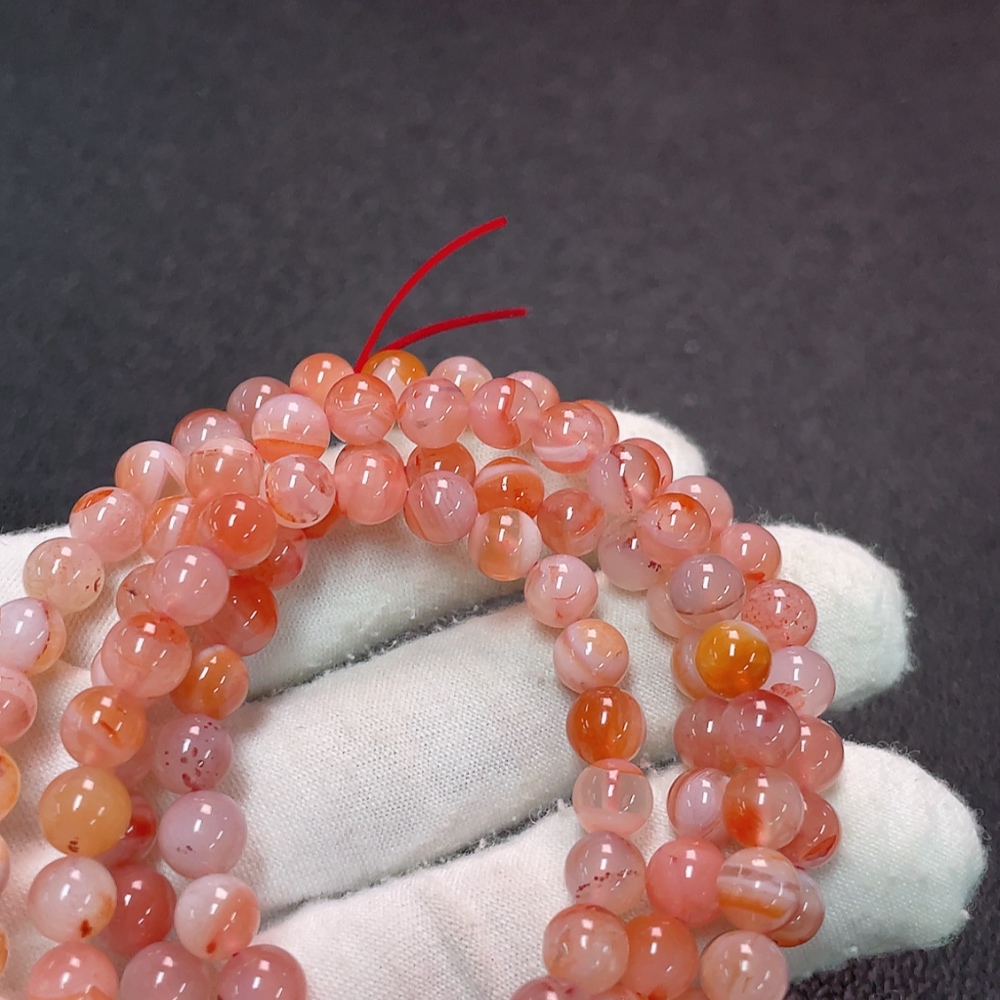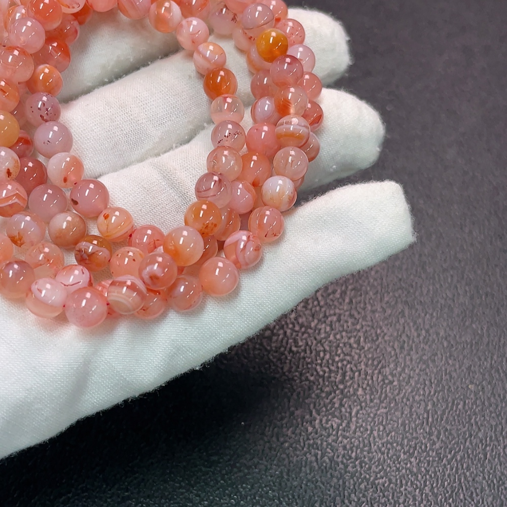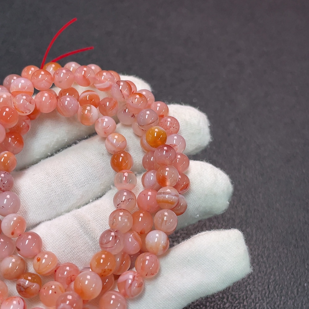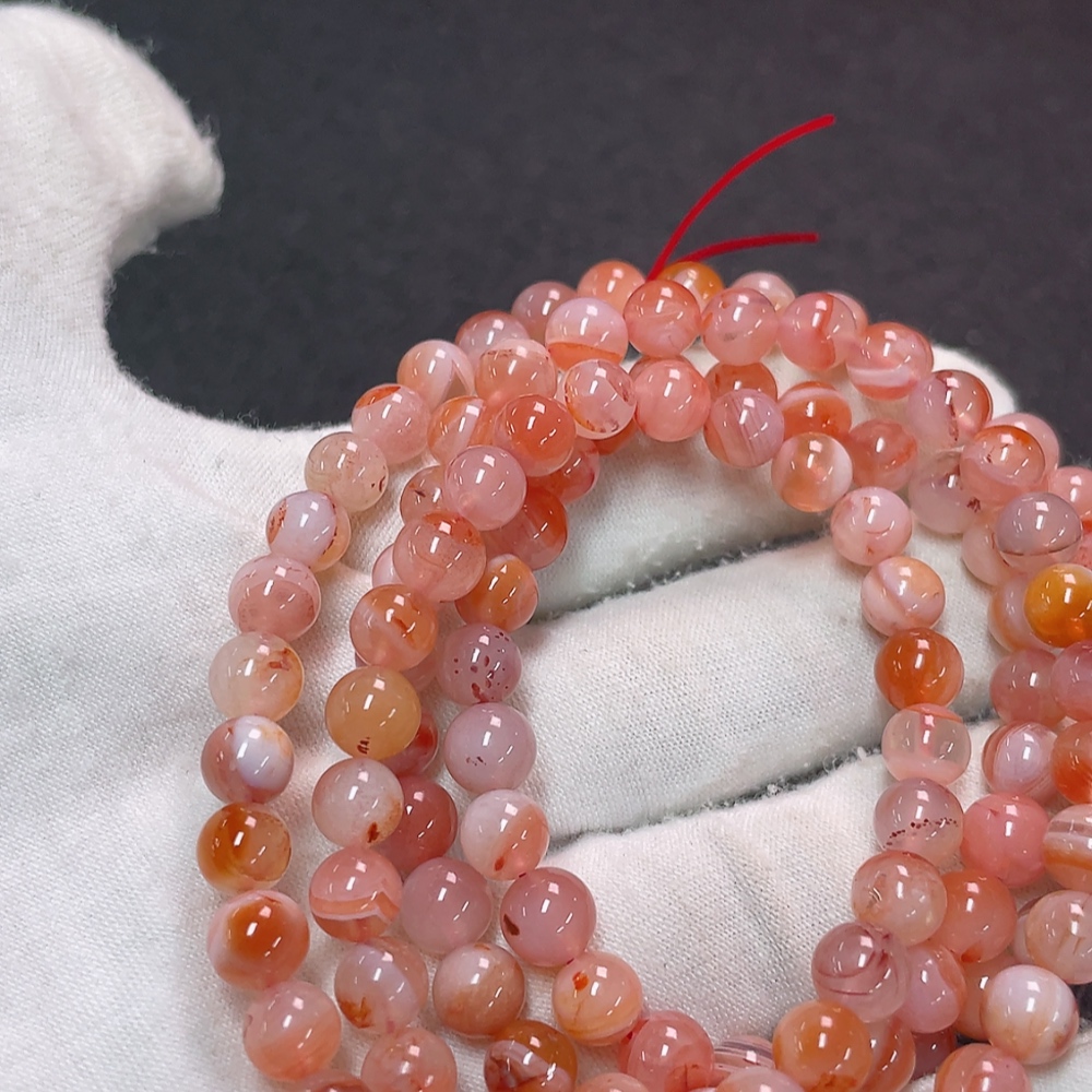 Red Agate Bead Strand with Visible Organic Matter, Total Weight Approx. 44.14g, Size Around 6.3mm