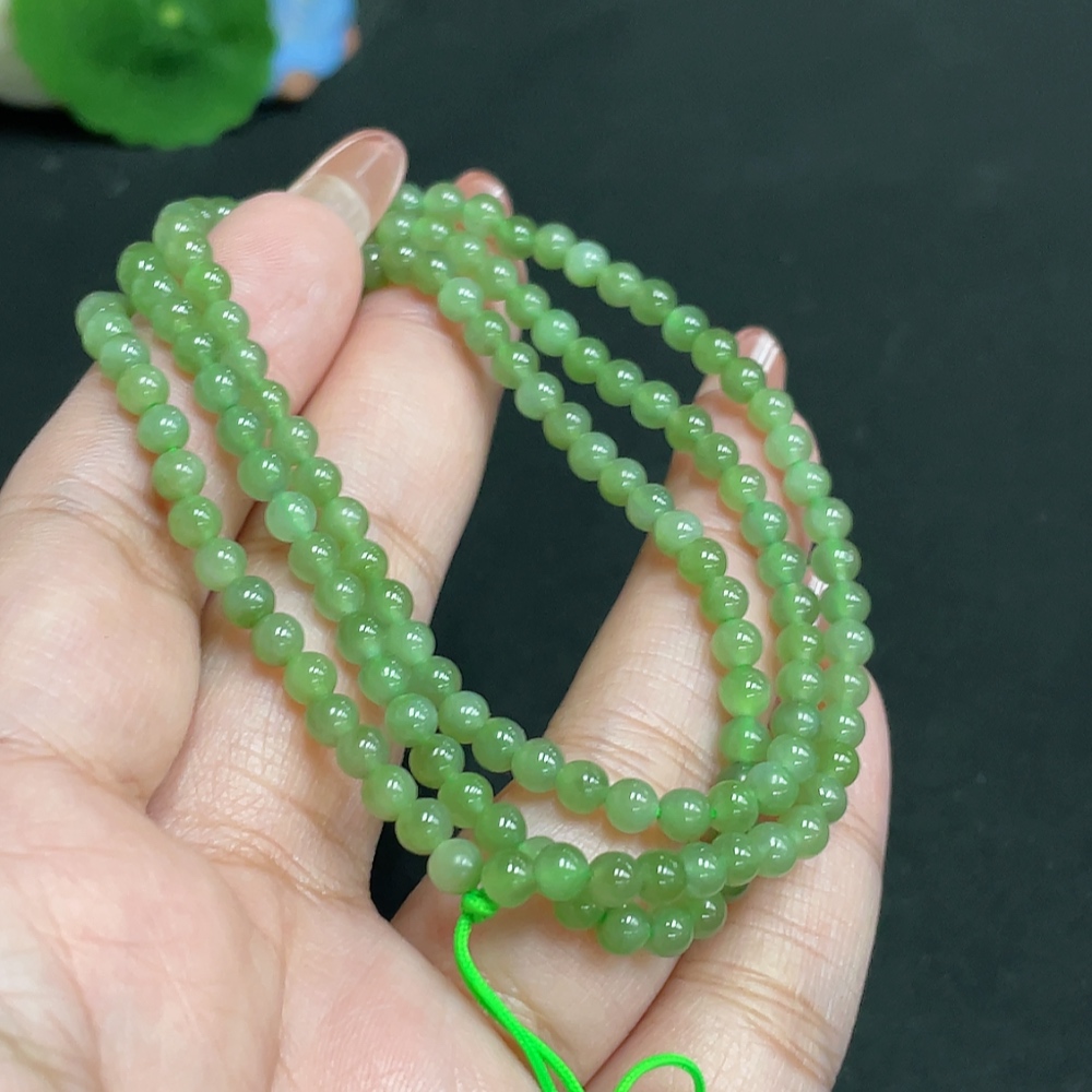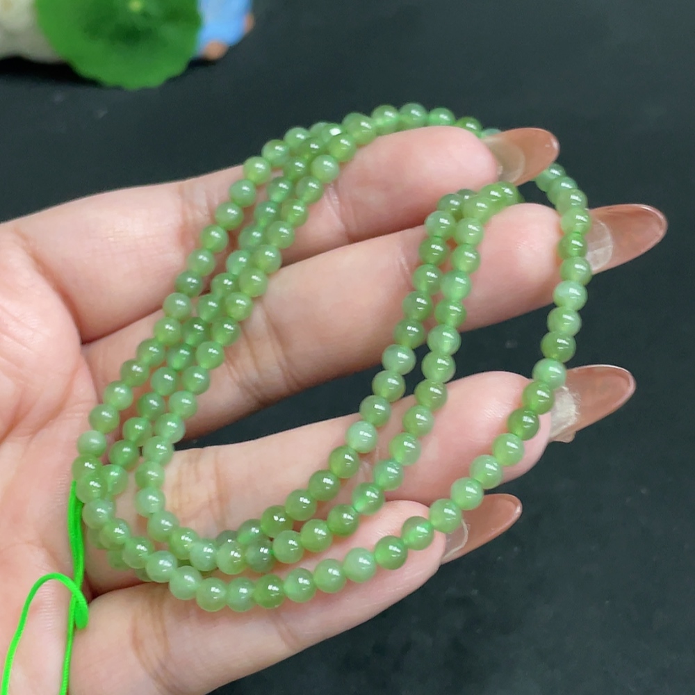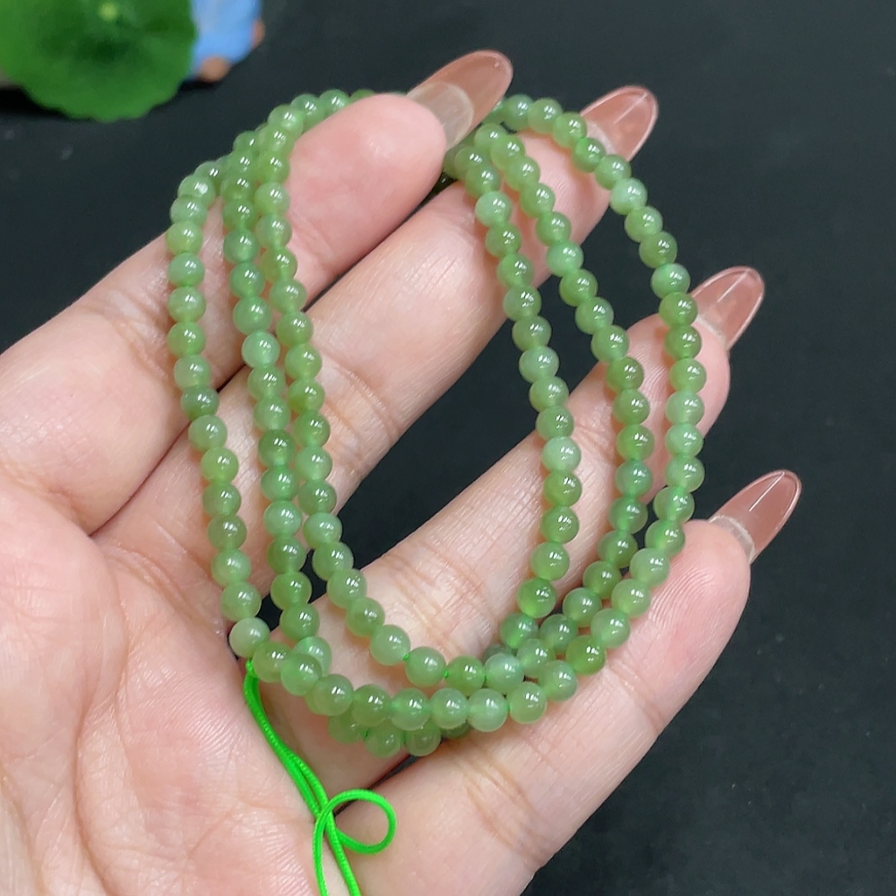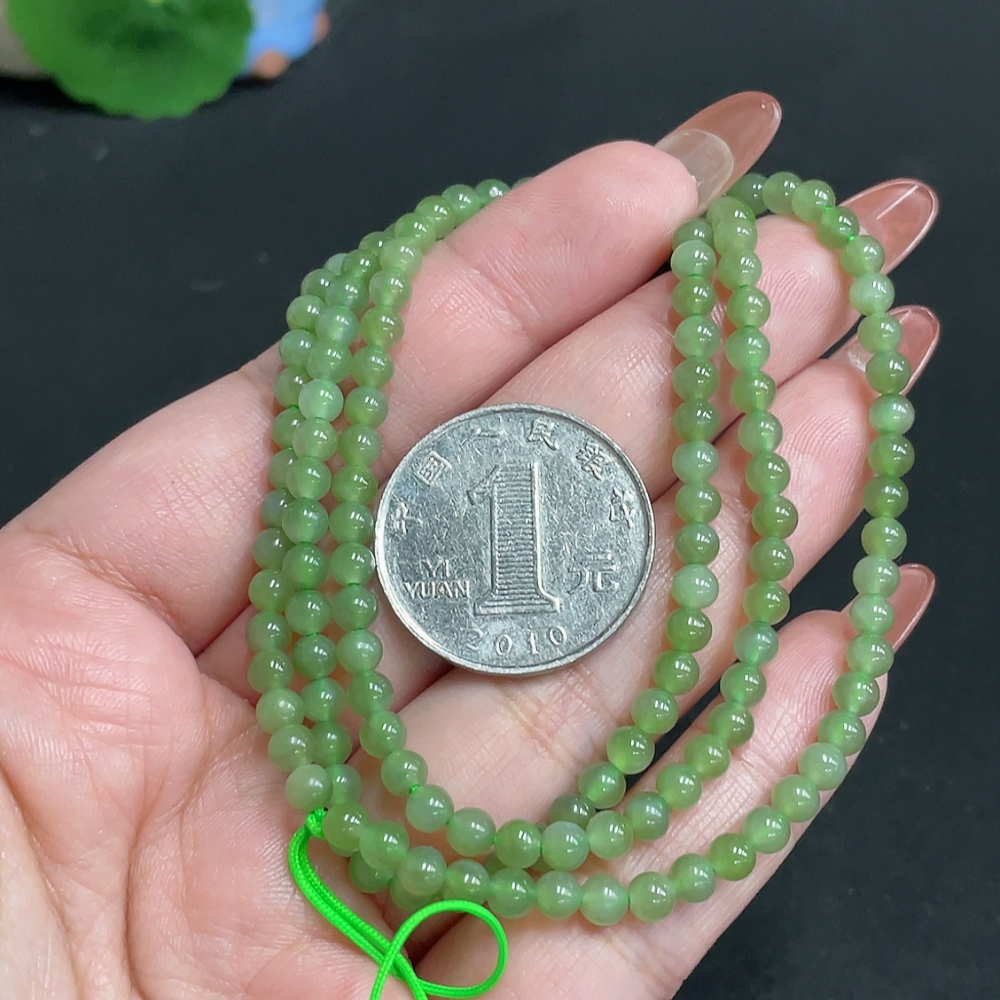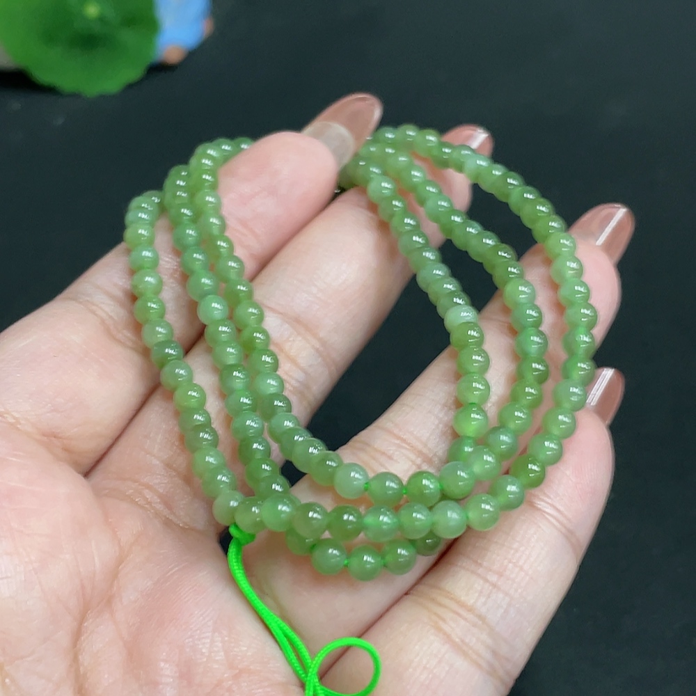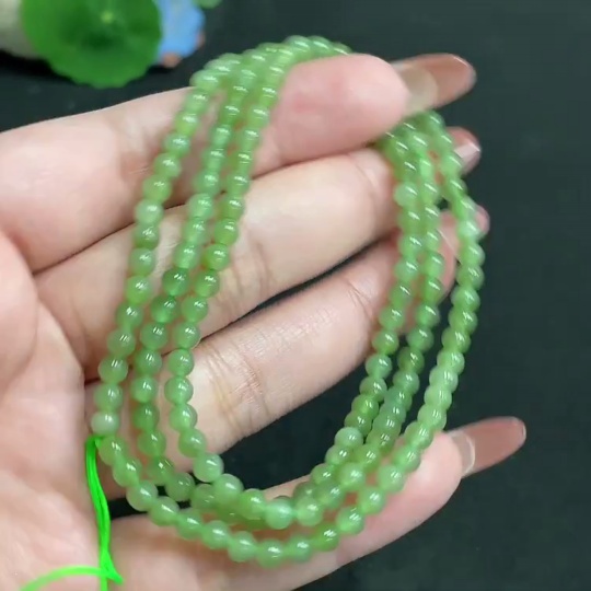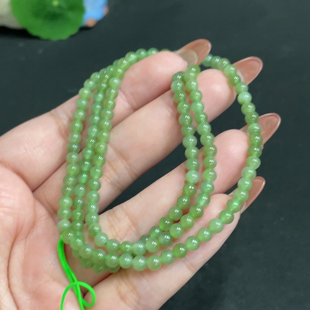 Hetian Jade Bead Necklace Approx. 3.9 mm Total Weight Approx. 15g