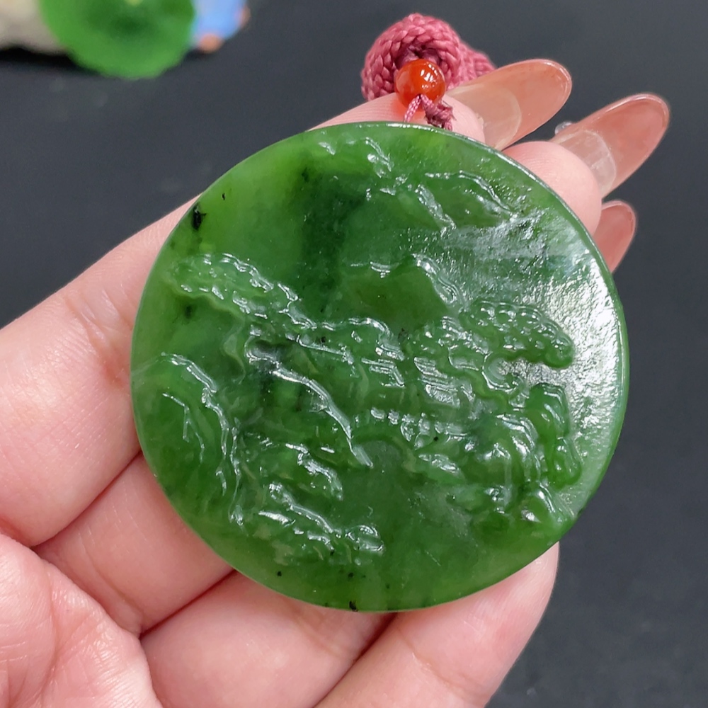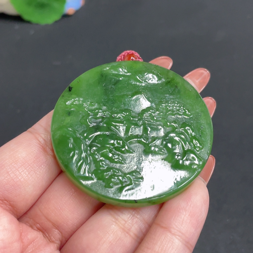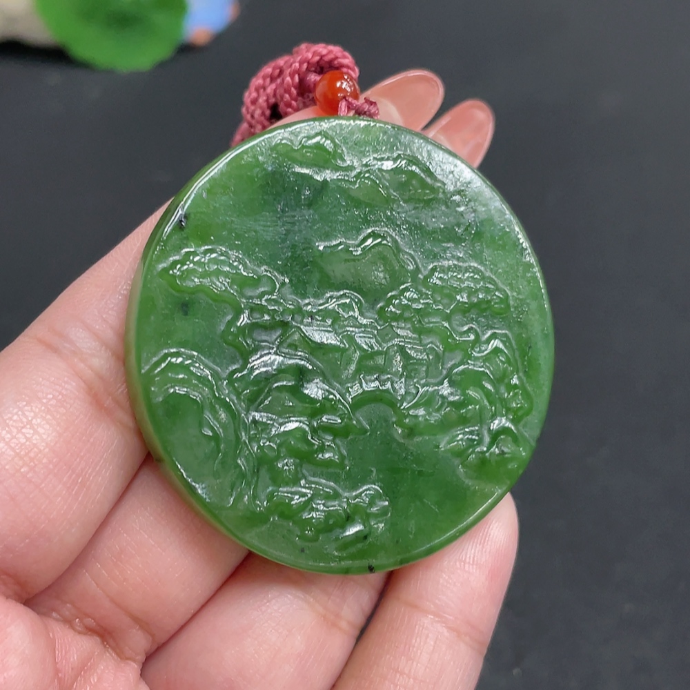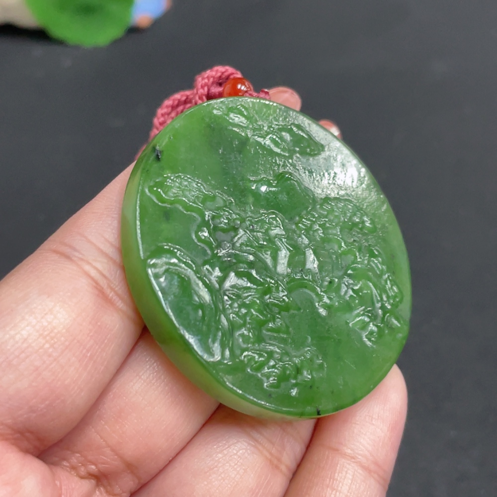 Hetian Jade Jasper Pendant Landscape Total Weight Approx. [with rope] 35.3g