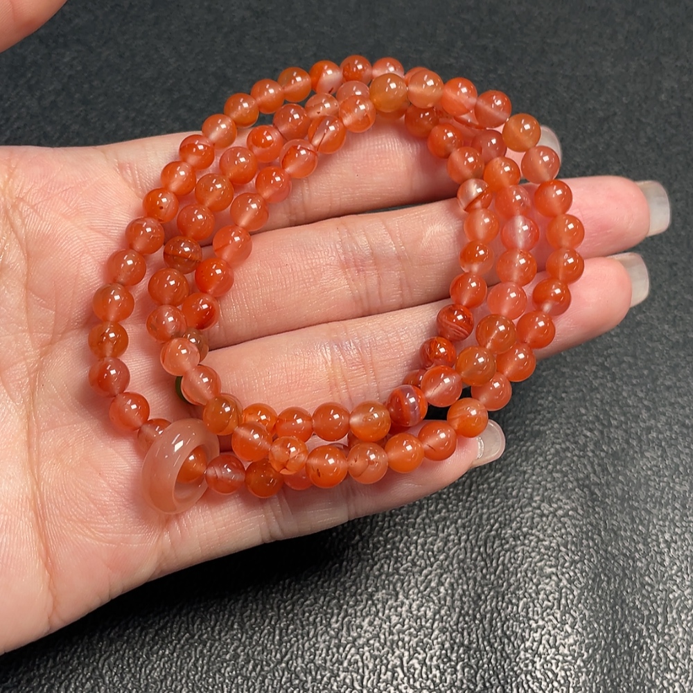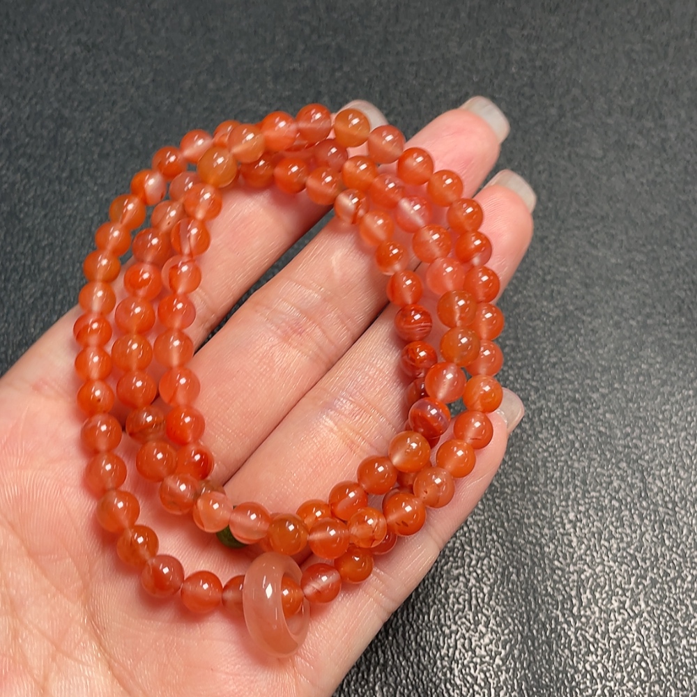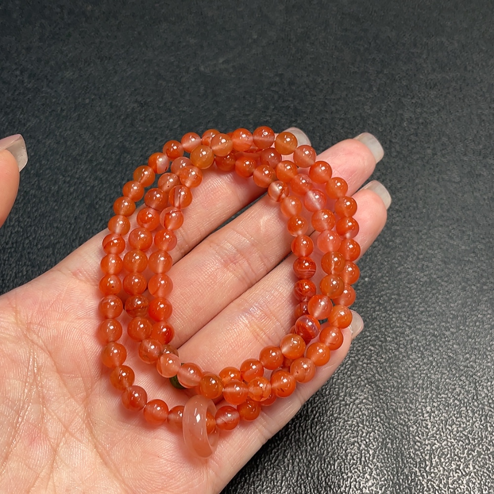 Red Agate Bead Strand with Hetian Jade, Visible Organic Matter, Total Weight Approx. 25.17g, Size Approx. 5.8mm