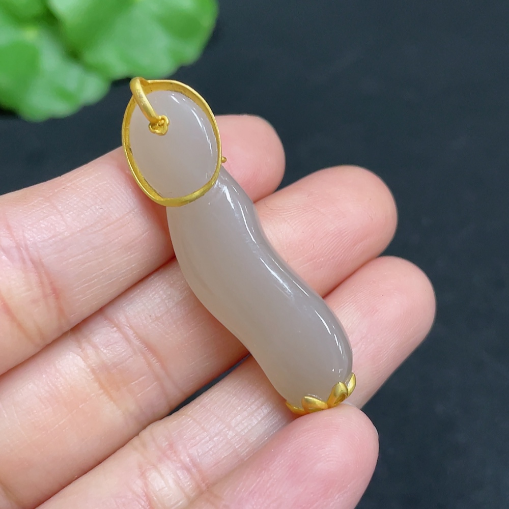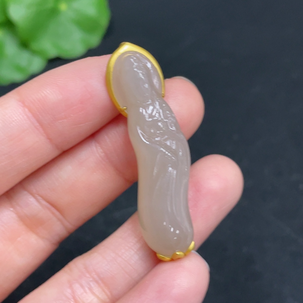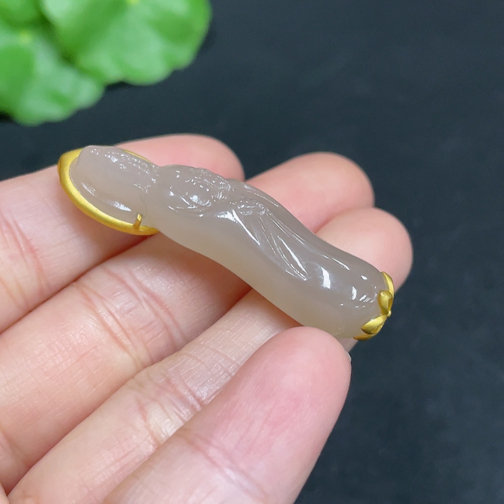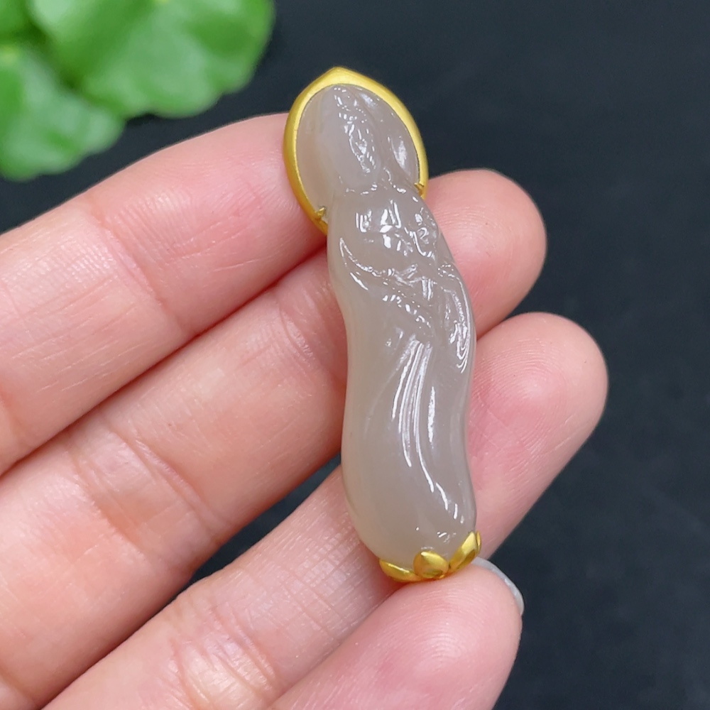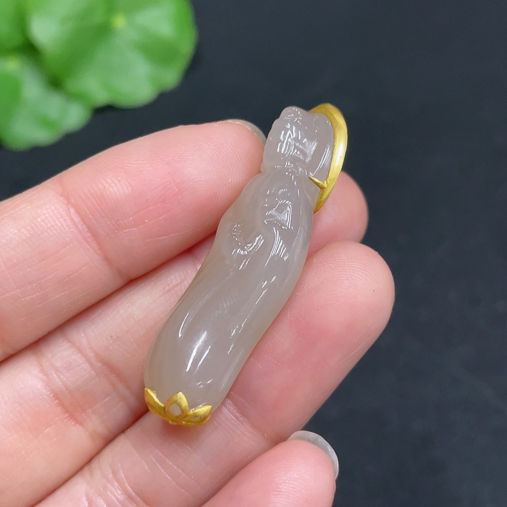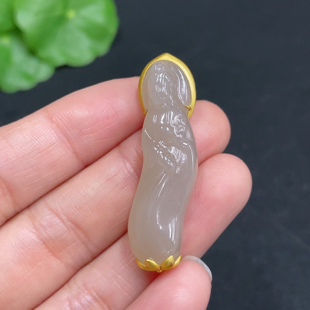 Hetian Jade Inlaid Guanyin 18K Gold Total Weight Approx. 5.8g