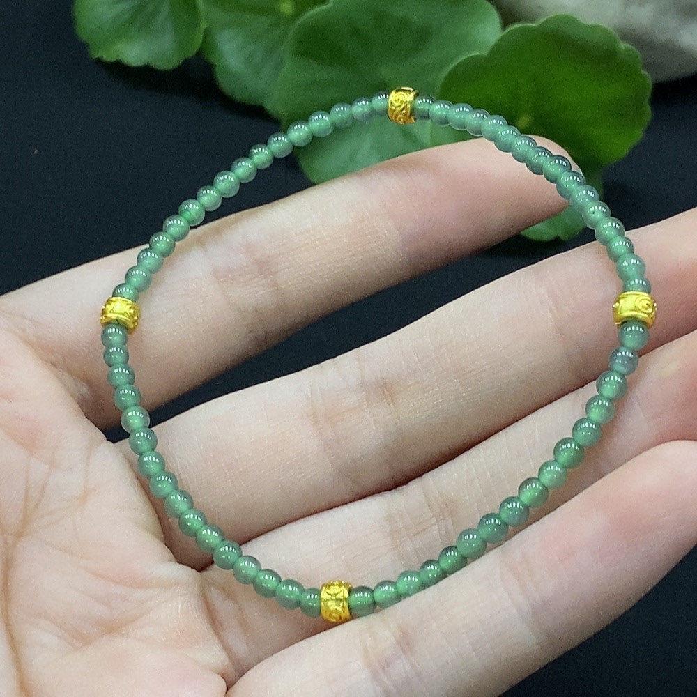 Trezaar - Jadeite Bracelet Approx. 3mm Non-Gold-Inlaid Total Weight Approx. 3.62g