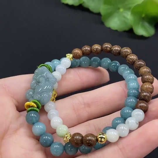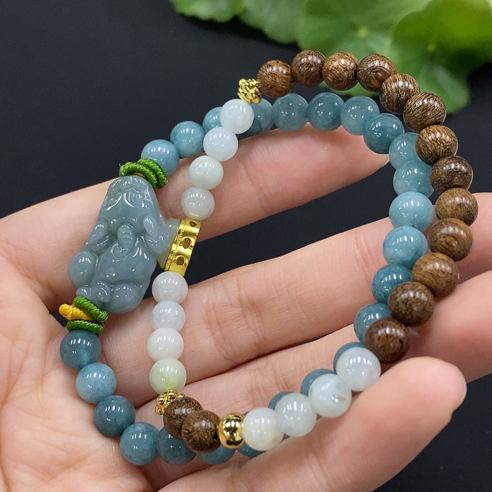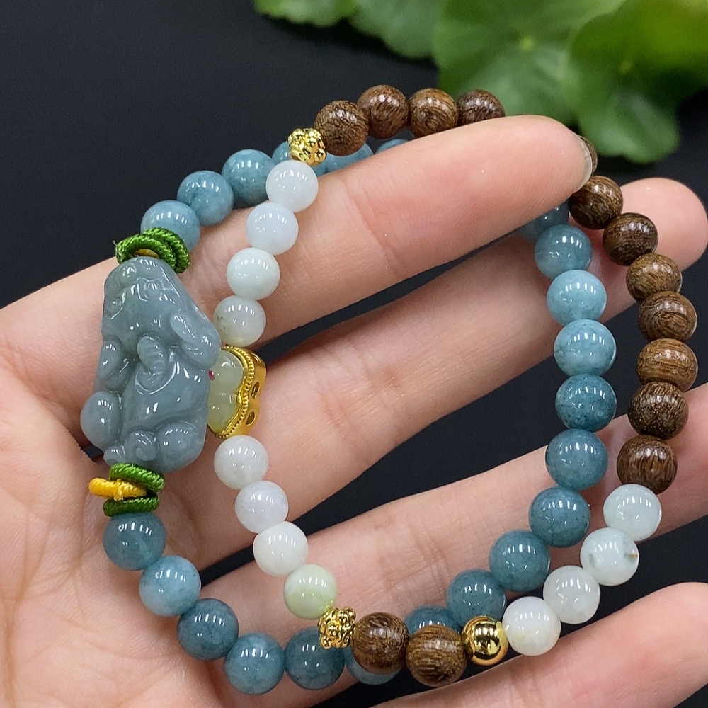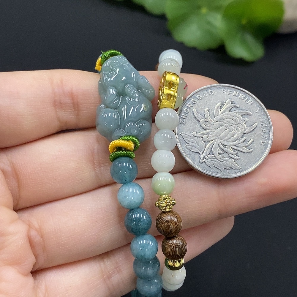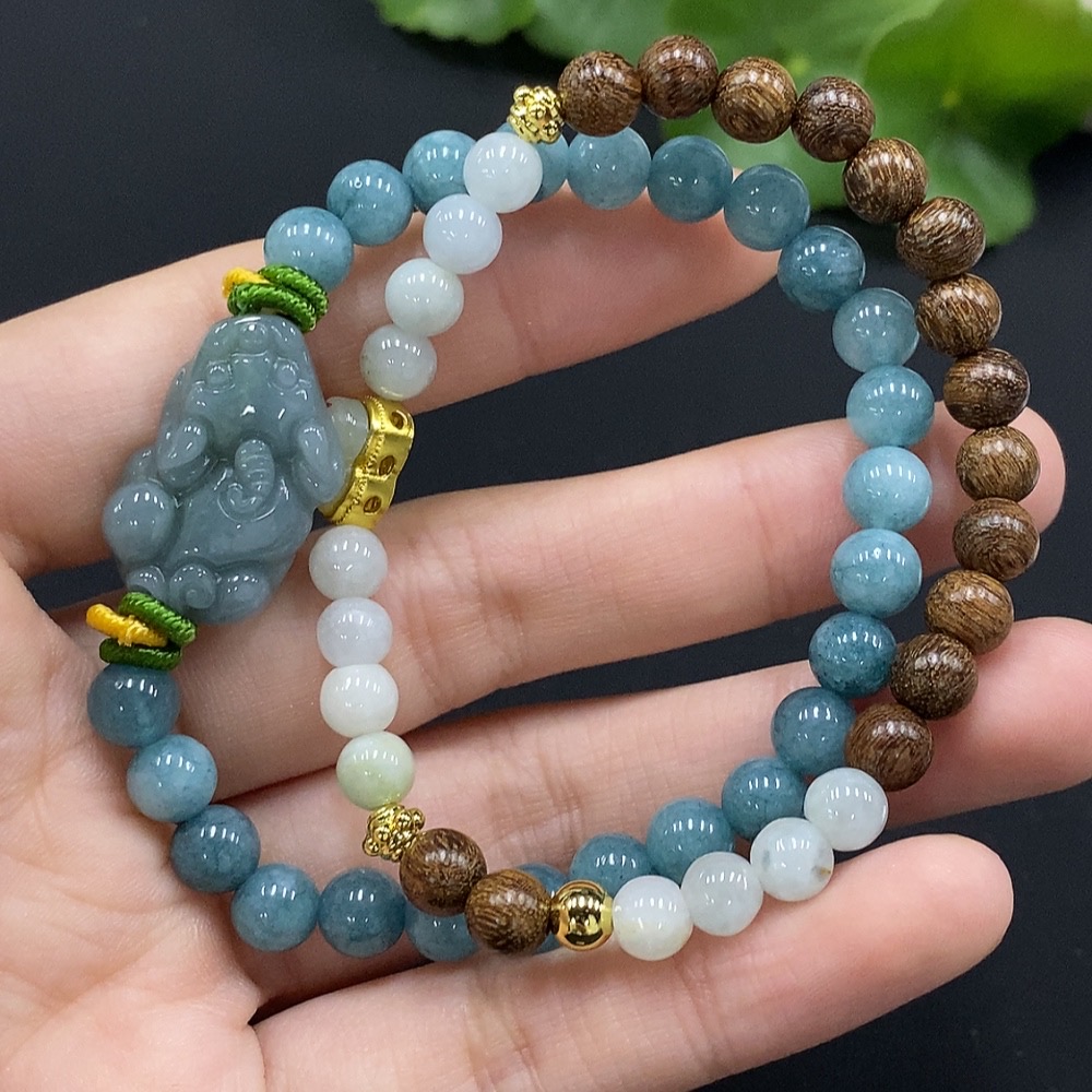Jadeite Bracelet Non-Gold Inlaid Matching Beads/Chain Non-A Total Weight Approx. 19.86g