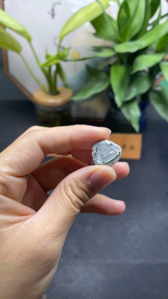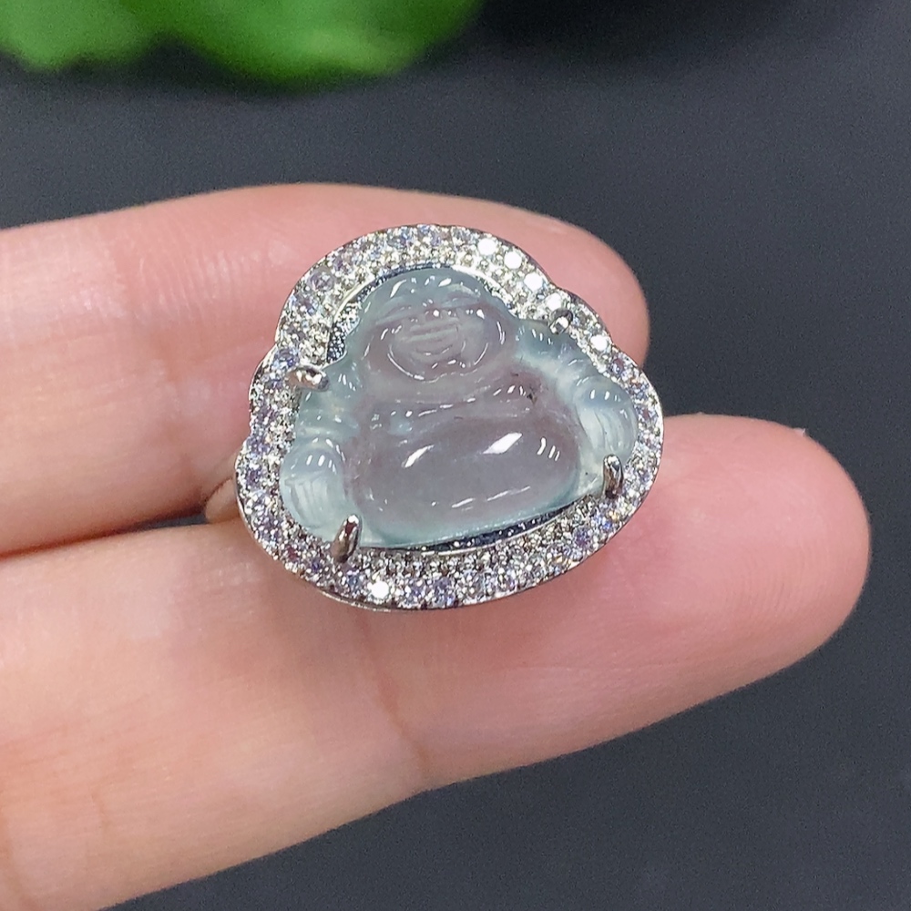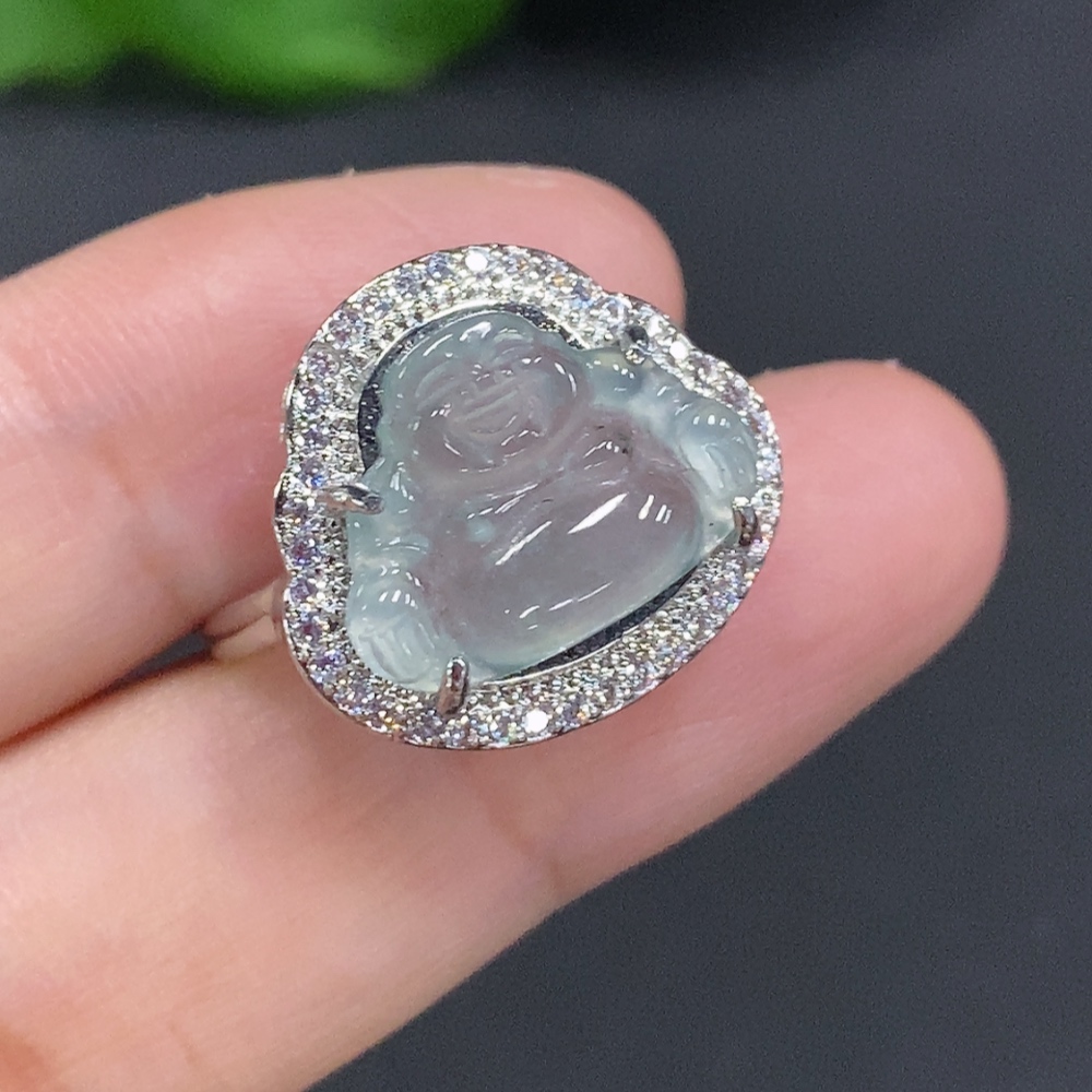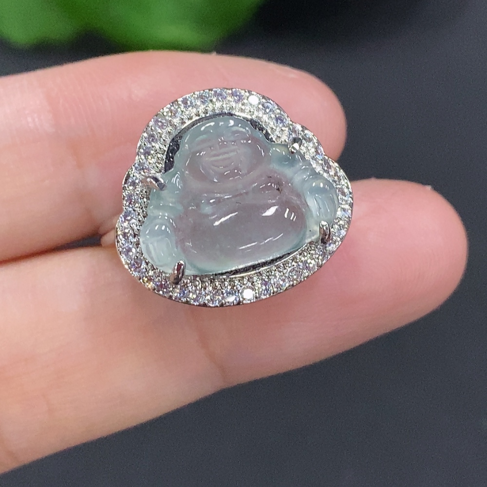 Jadeite Buddha Inlaid Ring Adjustable Size Non-Gold Inlaid Total Weight Approx. 3.4g