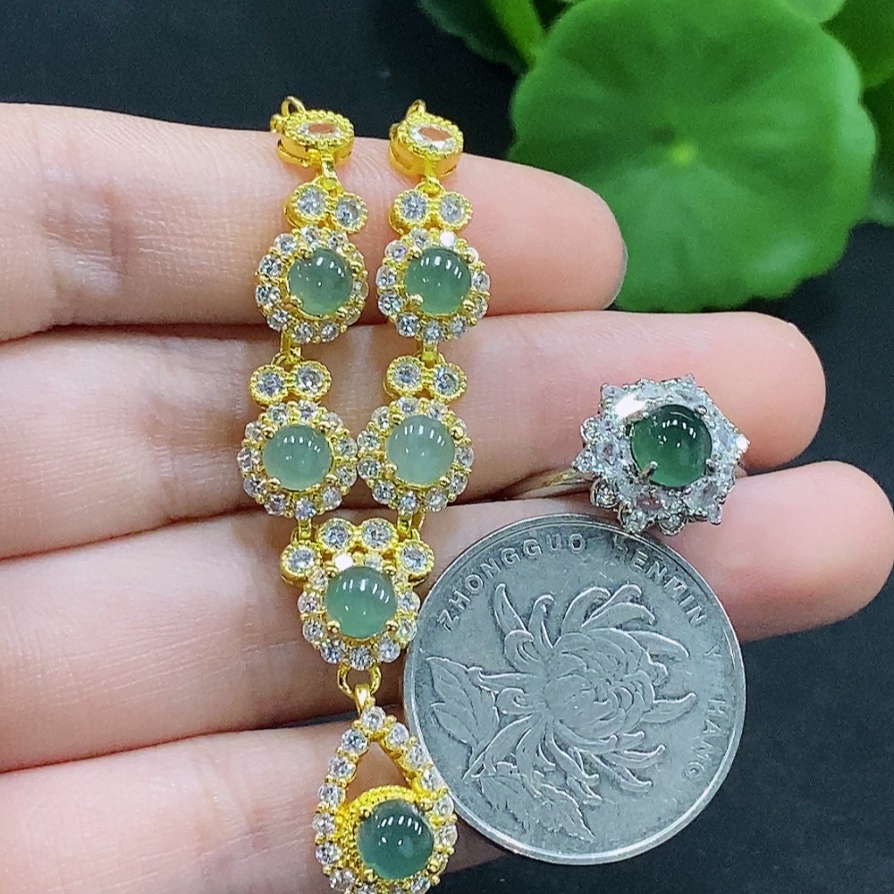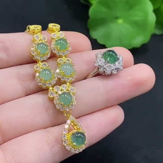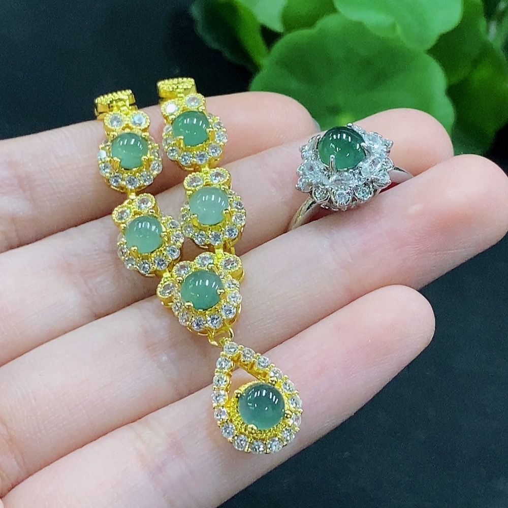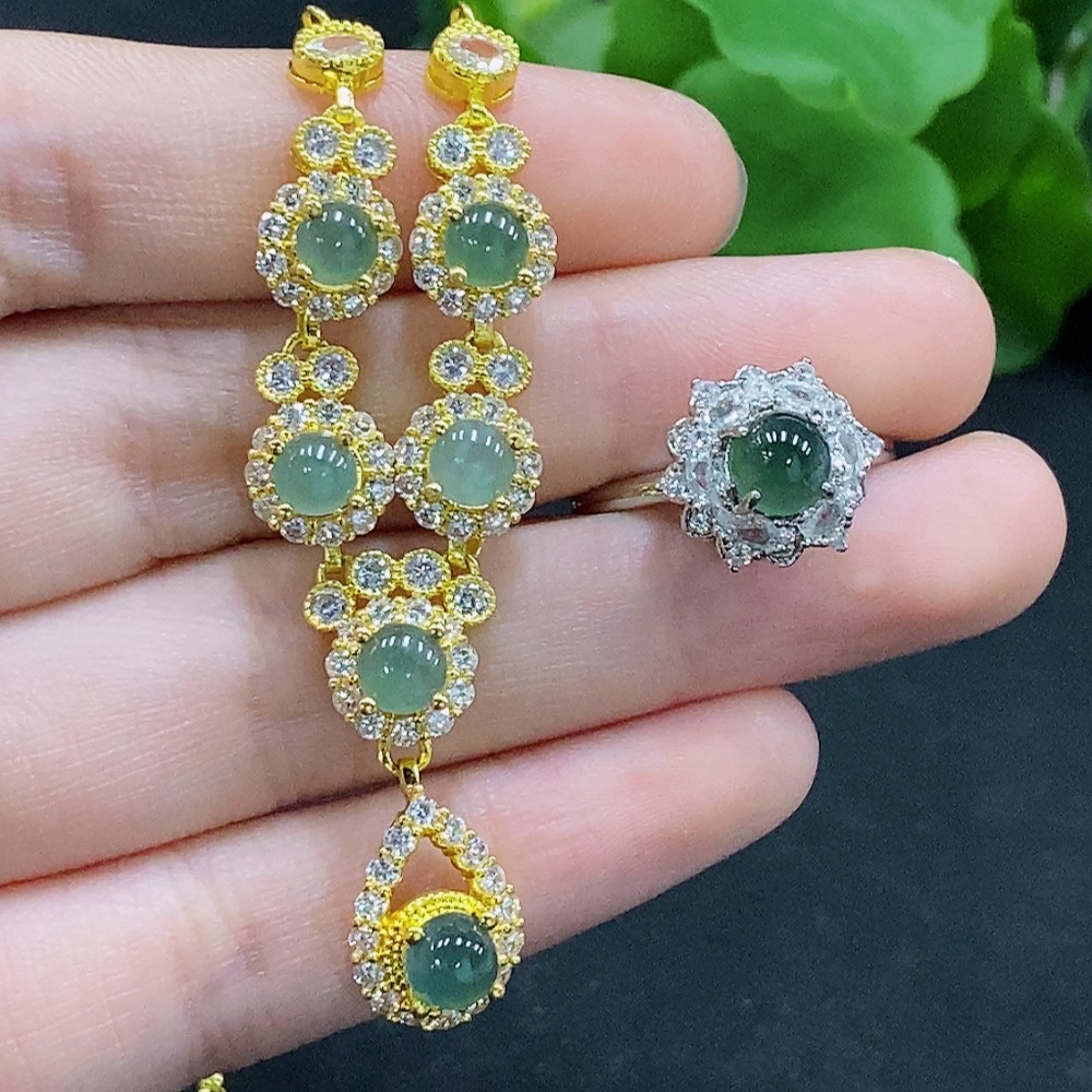 Jadeite Inlaid Necklace/Ring Non-Gold Adjustable