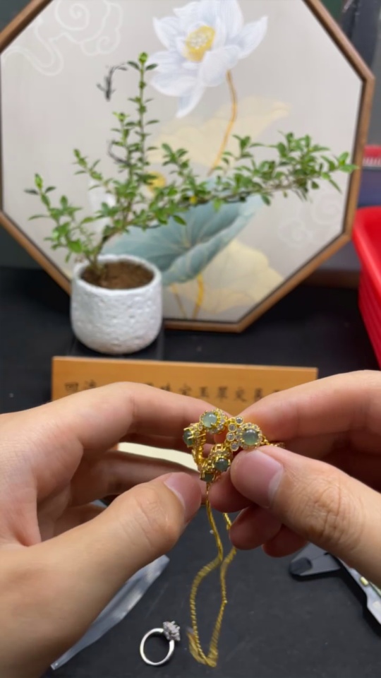 DescribeThe goods have been cleaned. The identified material (including gold measurement and stone matching)