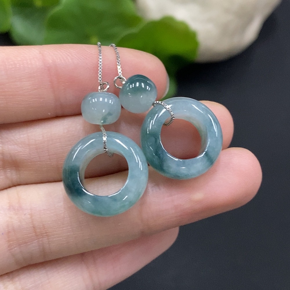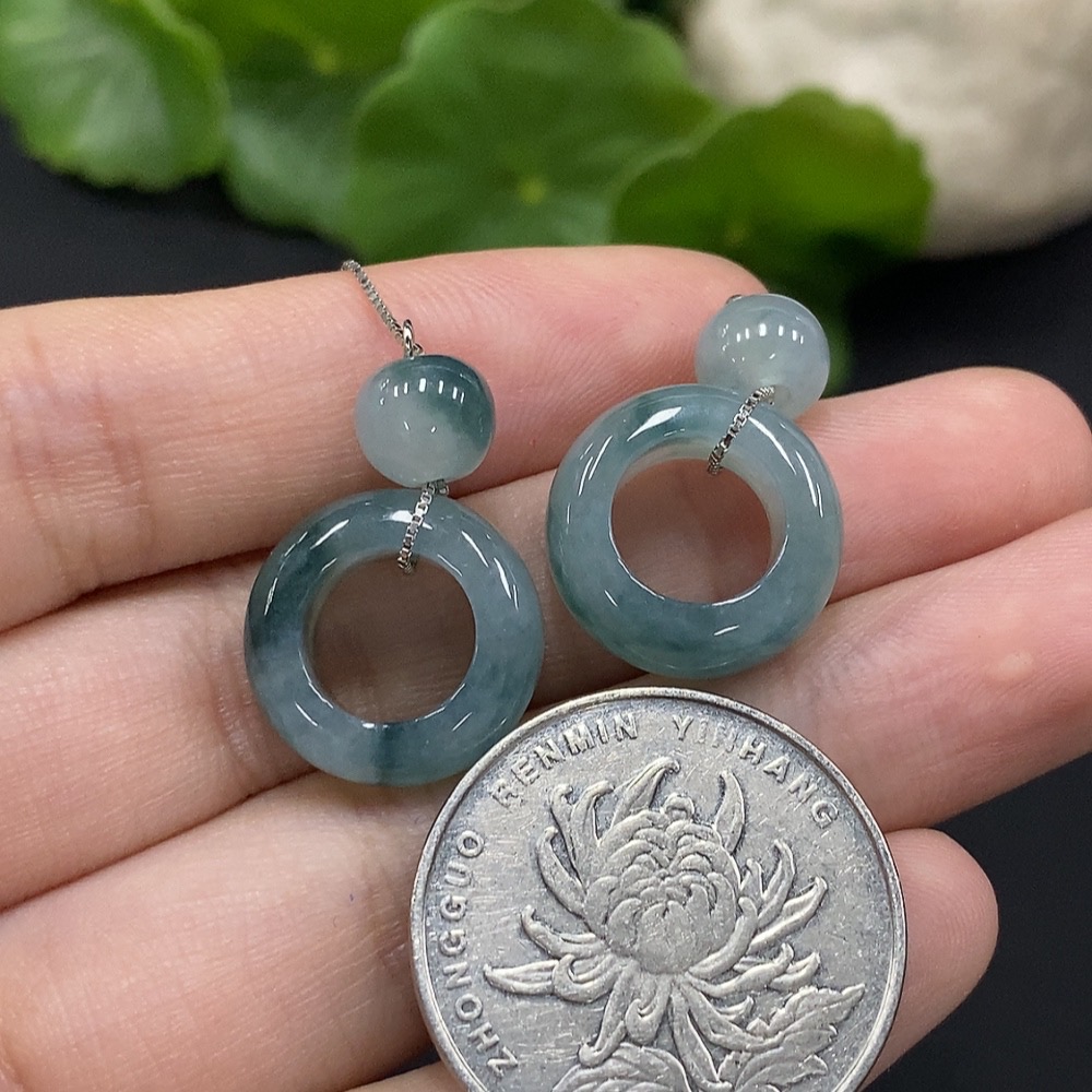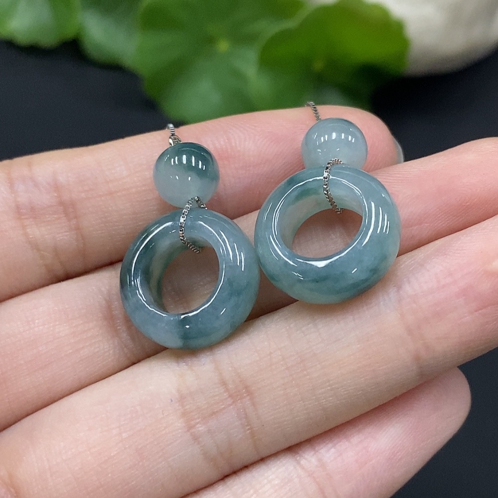 Jadeite Donut Earrings Non-Gold Inlaid Total Weight Approx. 6.37g