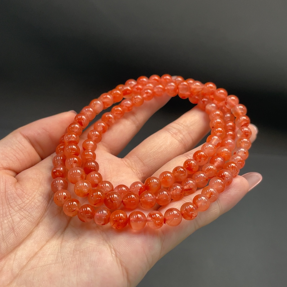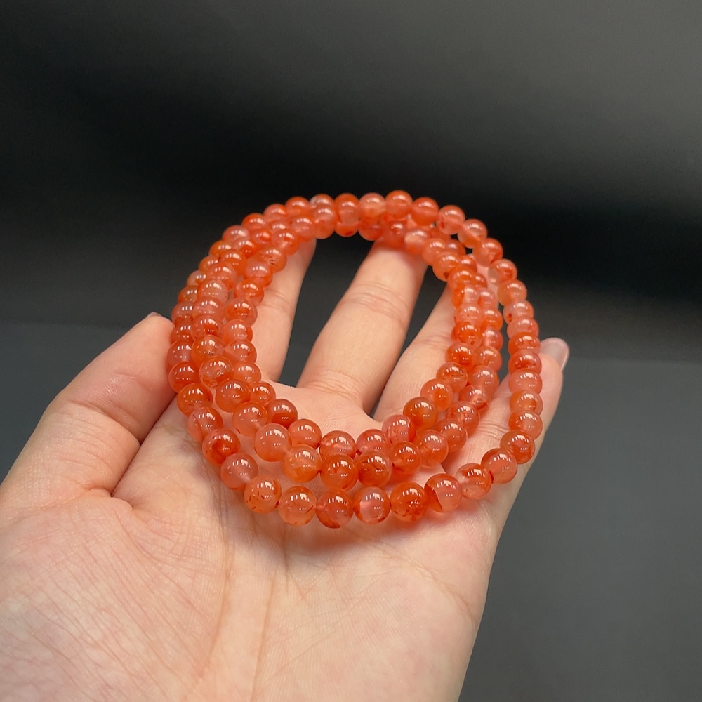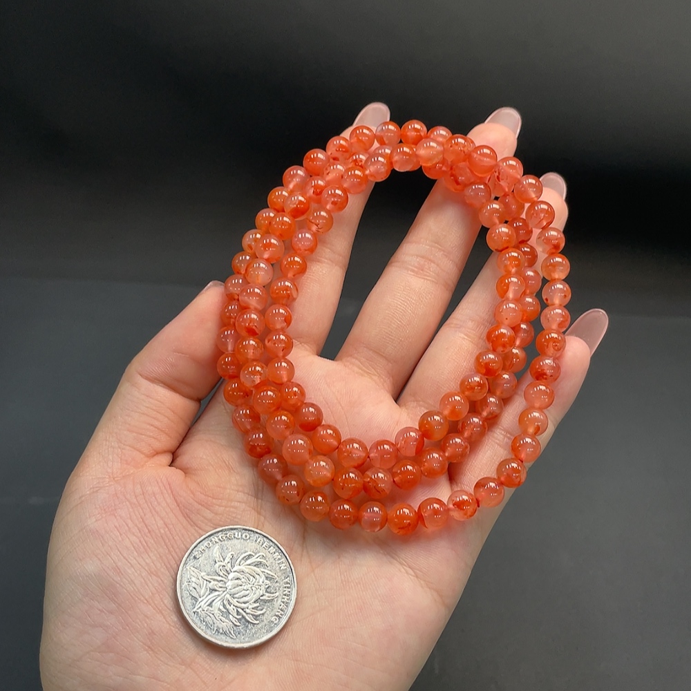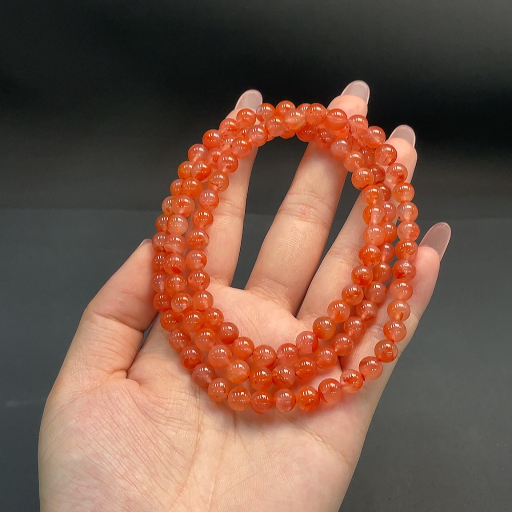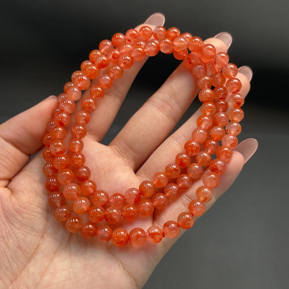Red Agate Beaded Necklace, Total Weight Approx. 43.57g, 6.8mm Beads, Organic Inclusions Visible