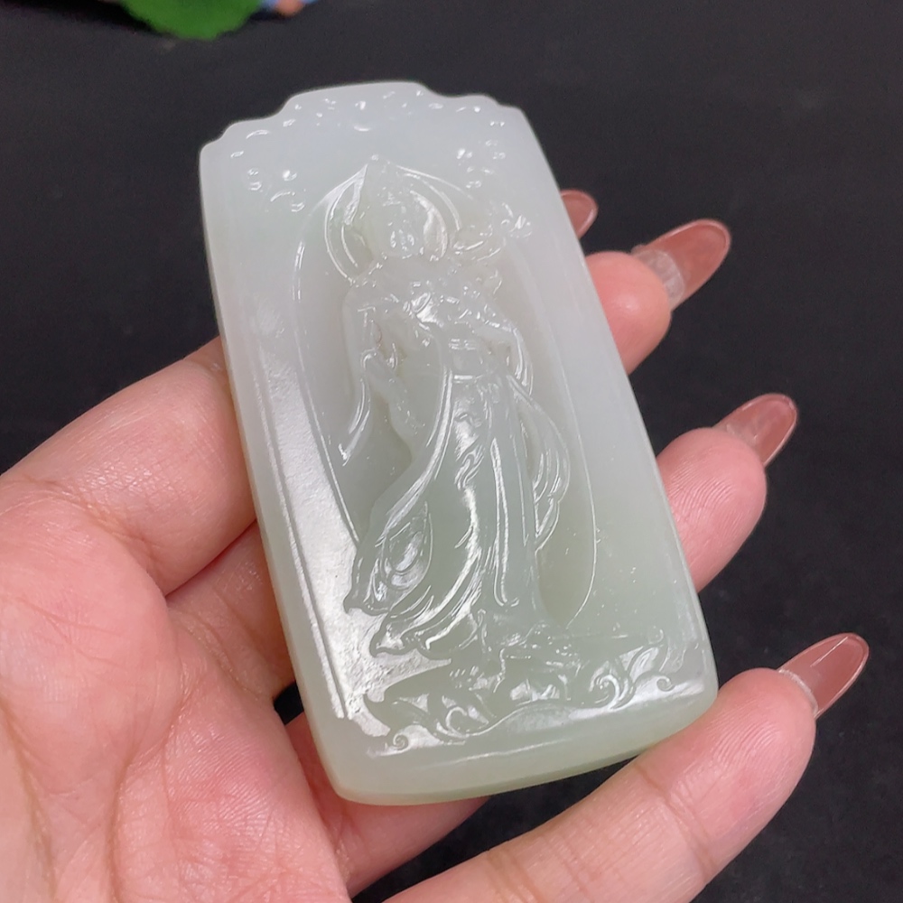 Hetian Jade Pendant - Mahasthamaprapta Bodhisattva, Total Weight Approx. 82.8g
