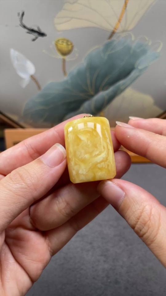 18K Amber Pendant, Total Weight Approx. 8.99g