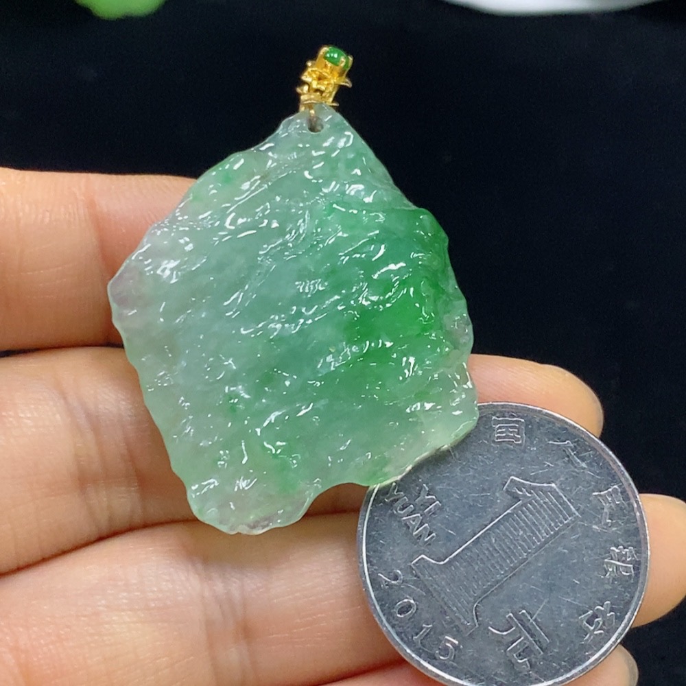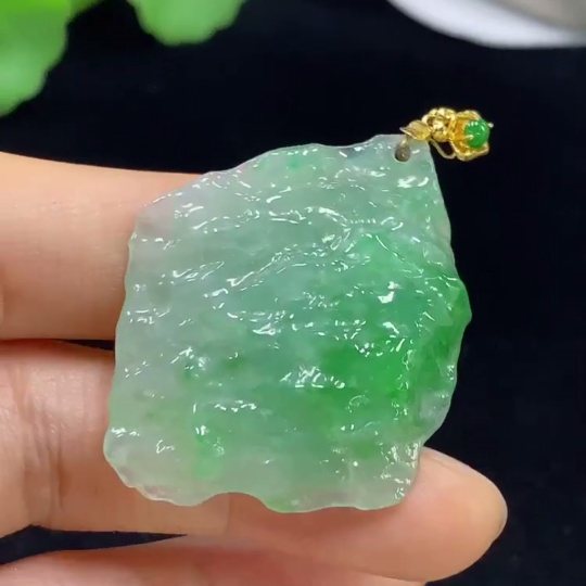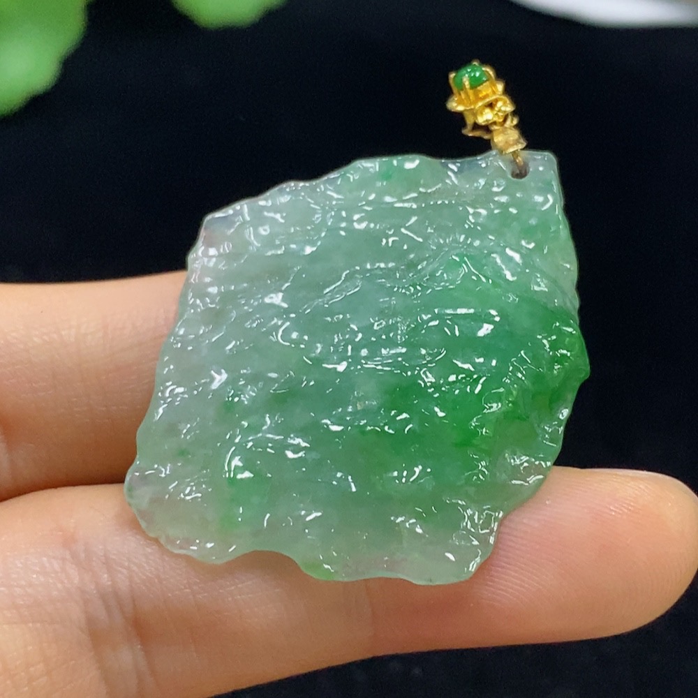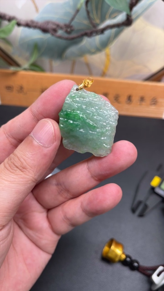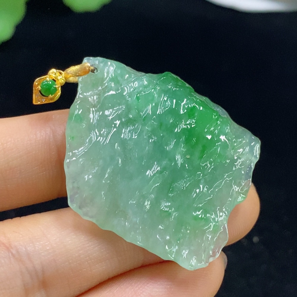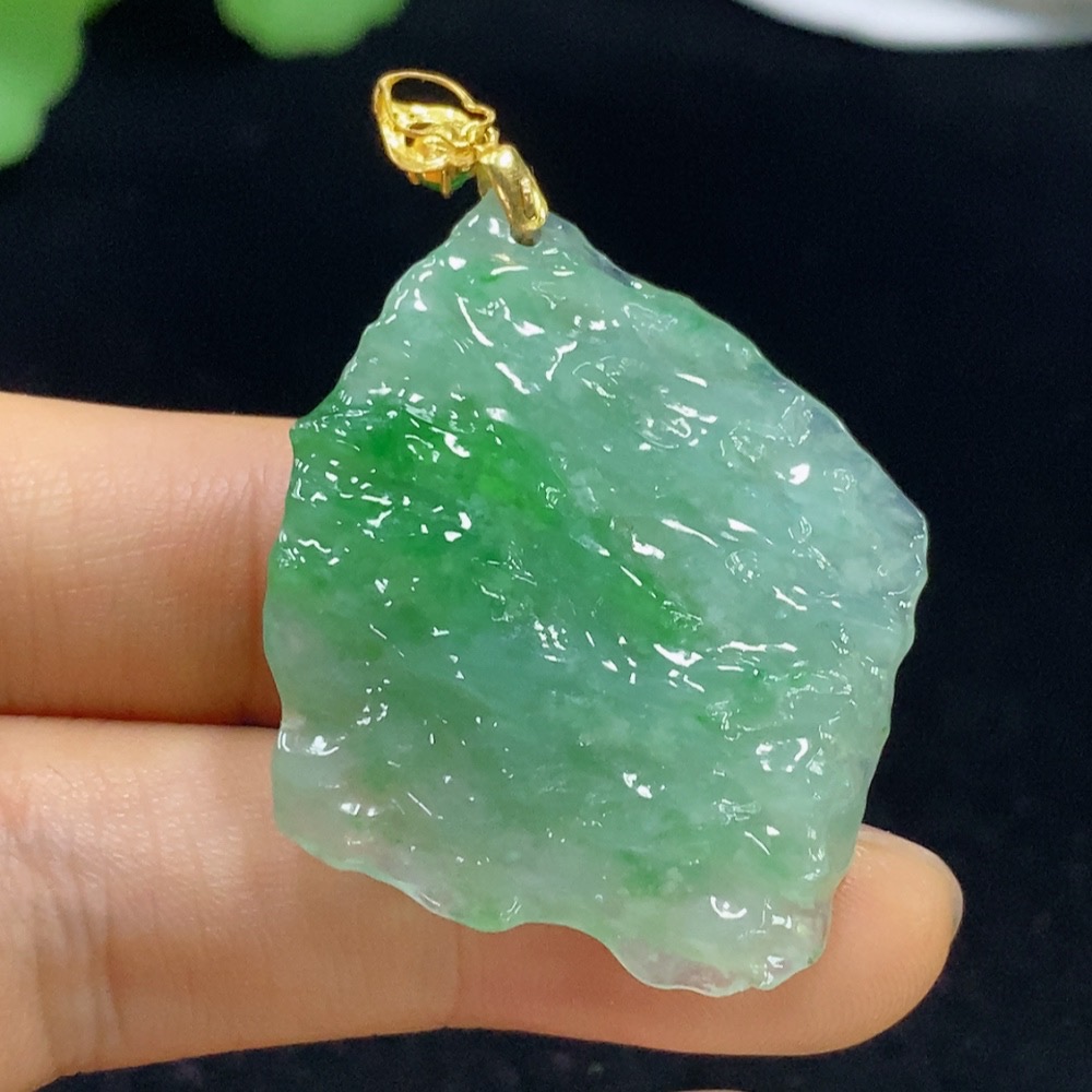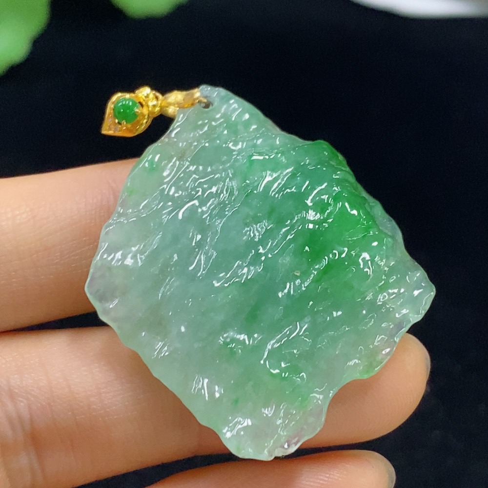 Jadeite Freeform Pendant with 18K Gold and Diamond Accents, Total Weight Approximately 13.2g