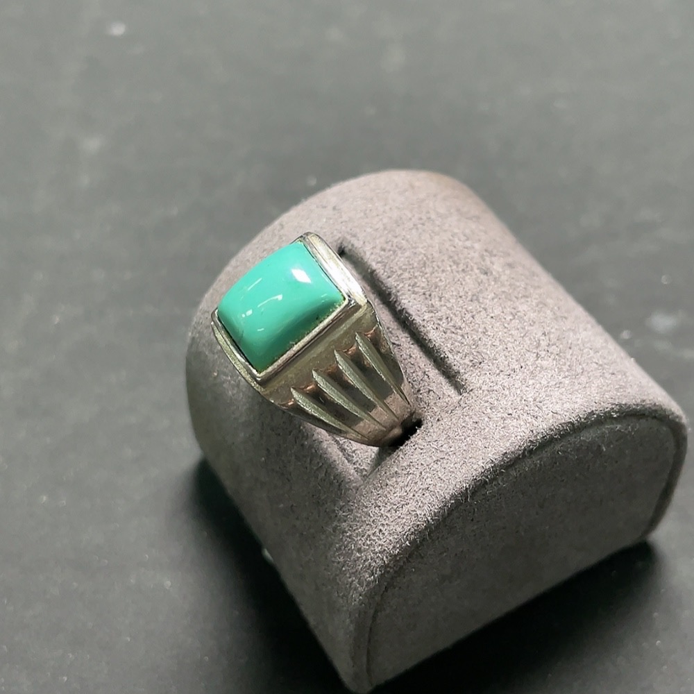 Turquoise Ring, Color Origin Undetermined, Contains Other Mineral Components, Non-Gold, Adjustable, Total Weight Approximately 6.3g