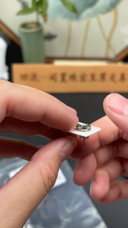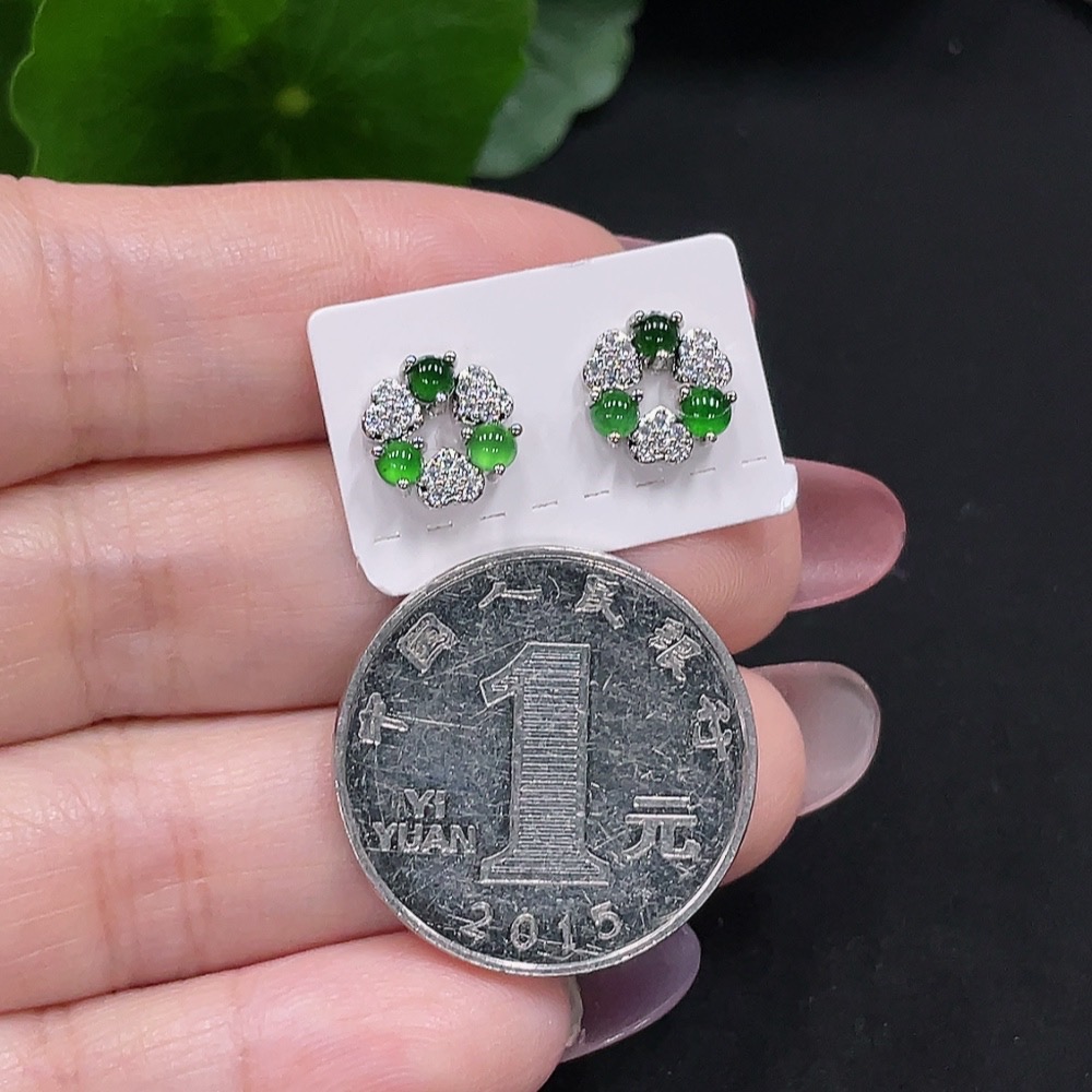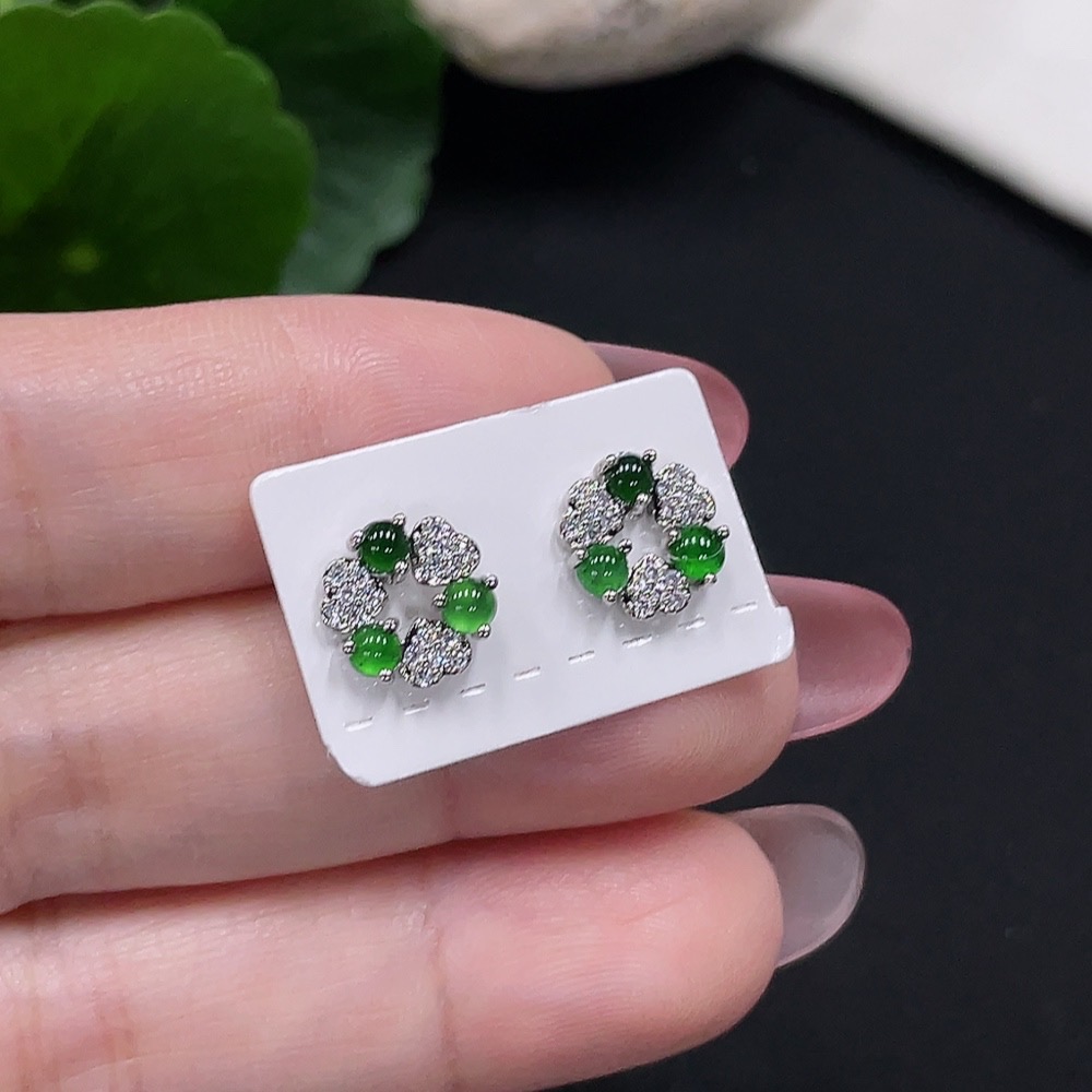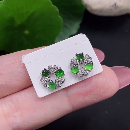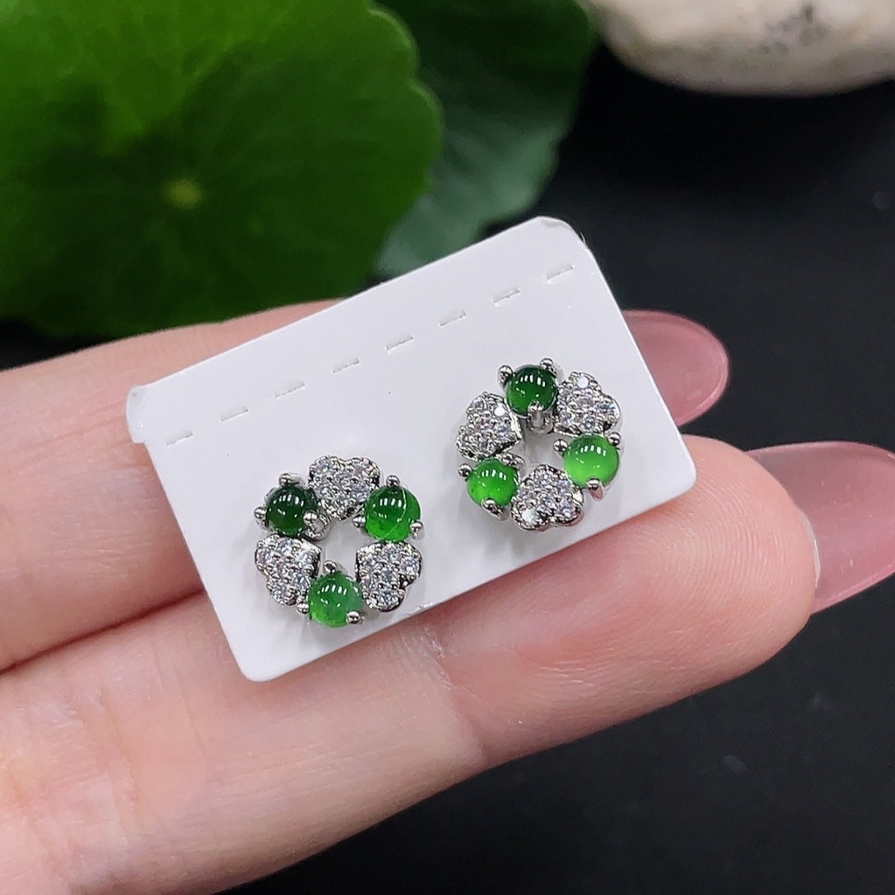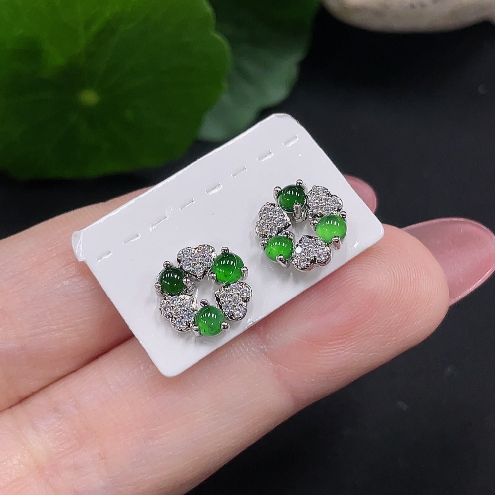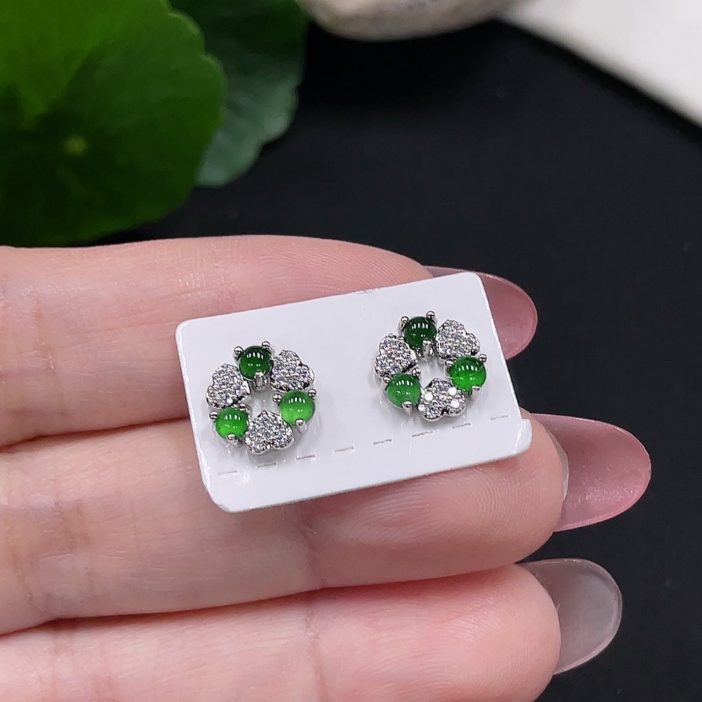 Jadeite inlaid earrings a pair, total weight approximately 1.6g (non-gold inlaid)