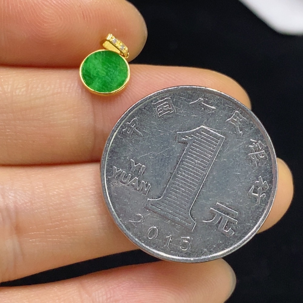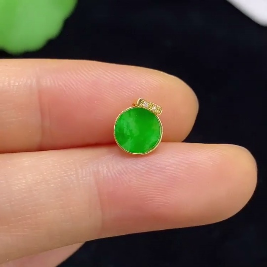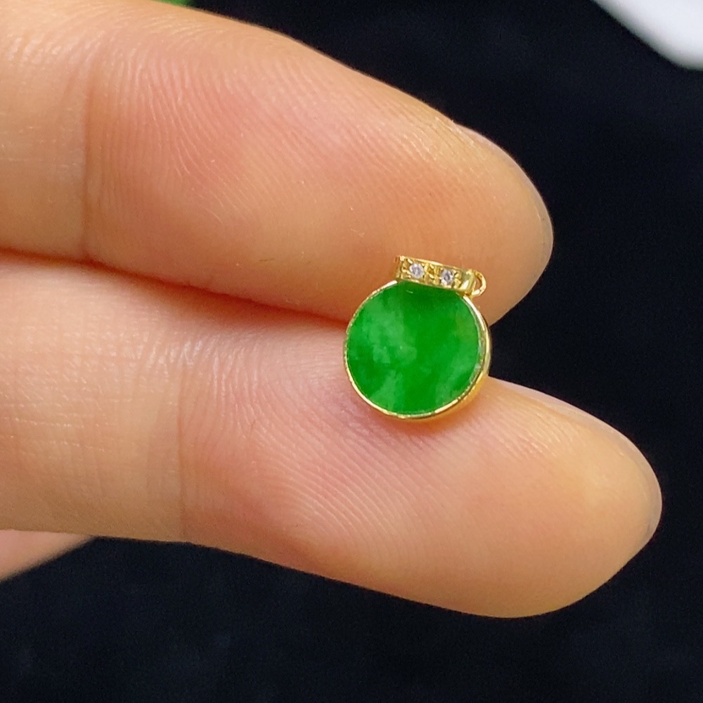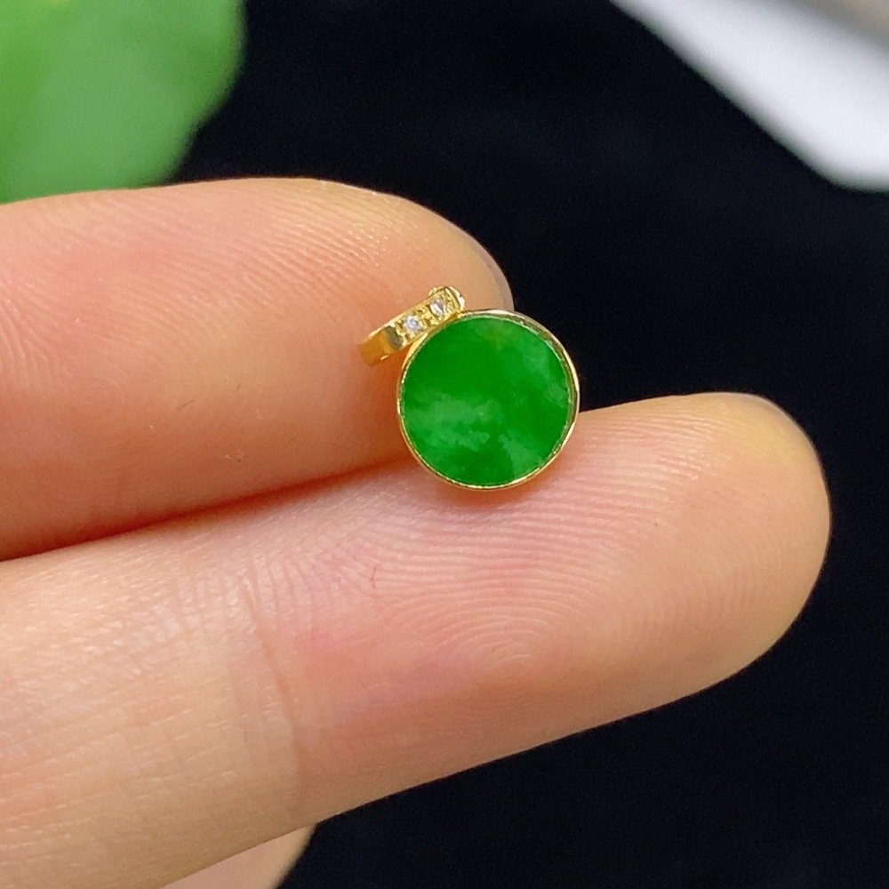 Jadeite Plain Pendant inlayed with 18k gold and diamonds, total weight about 0.32g